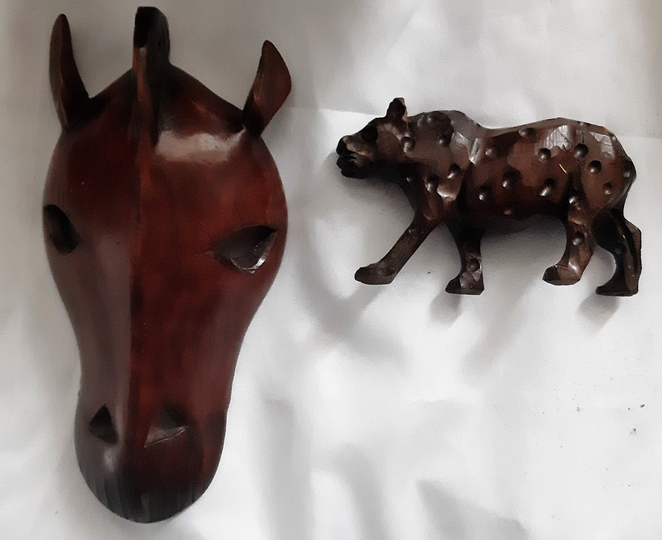 1.Man en vrouw - Twee prachtige Afrikaanse beelden. De beelden zijn uit hout gesneden en zijn fraai vormgegeven. Afmetingen: H 35 x B 18 x D 9 cm