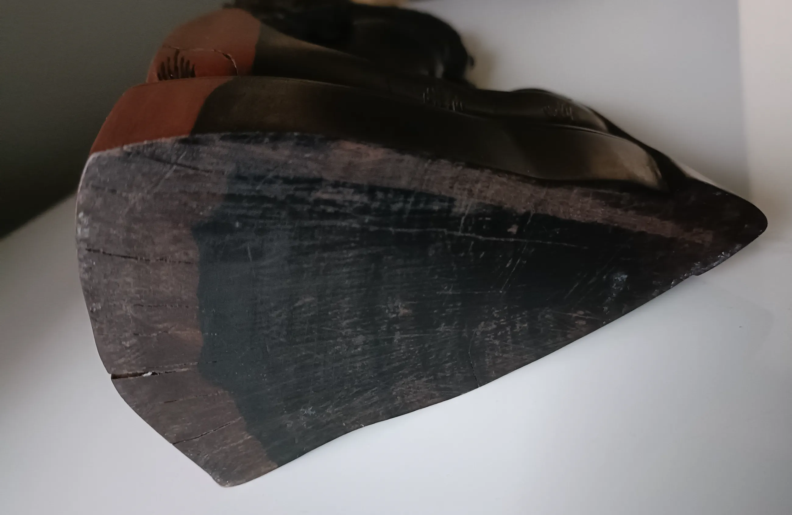 Het hoofd zelf en het ondergedeelte zijn niet gepatineerd, alleen in olie of was gezet.