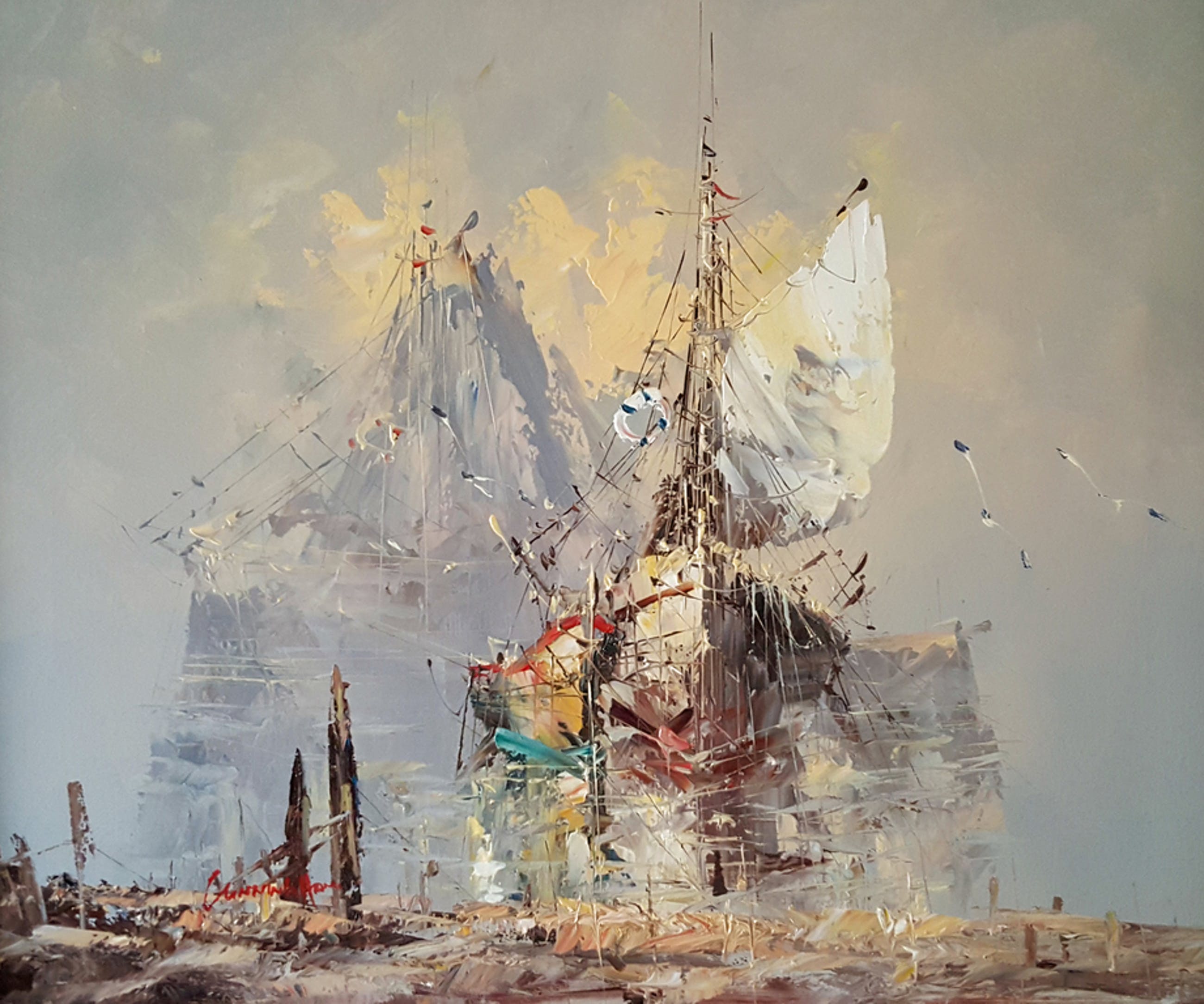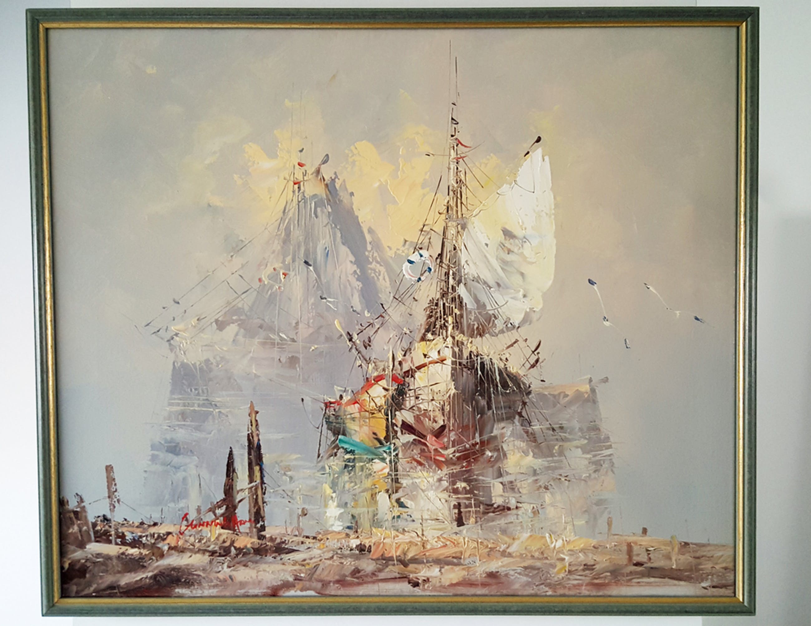 Cunningham (20e eeuw), Schip, olieverf op doek, gesigneerd kopen? Bied vanaf 1!