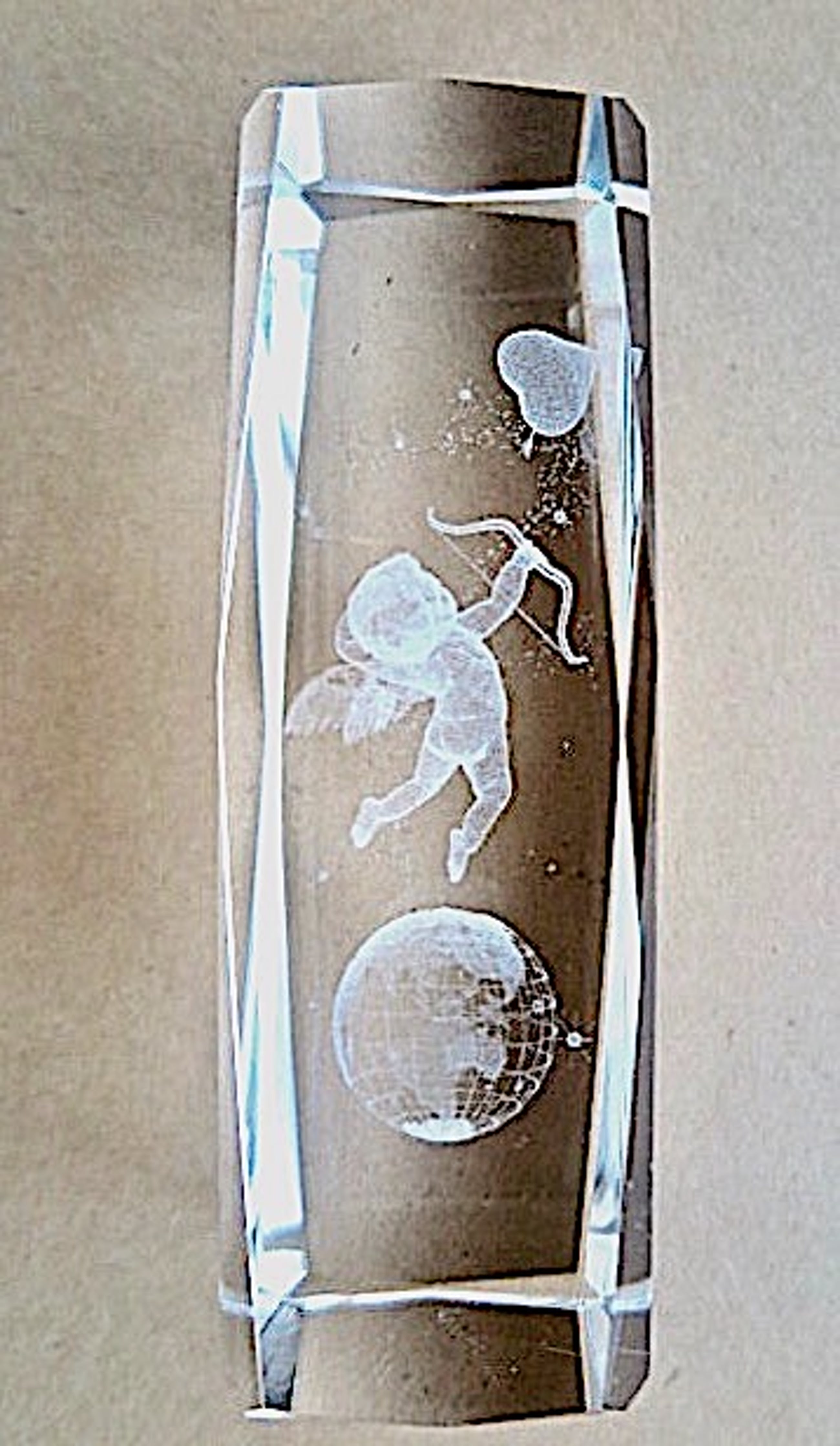 Onbekend - Cupido/Amor schiet pijl in het Hart -3D kristal lasergravure - Diamantgeslepen - Verkocht
