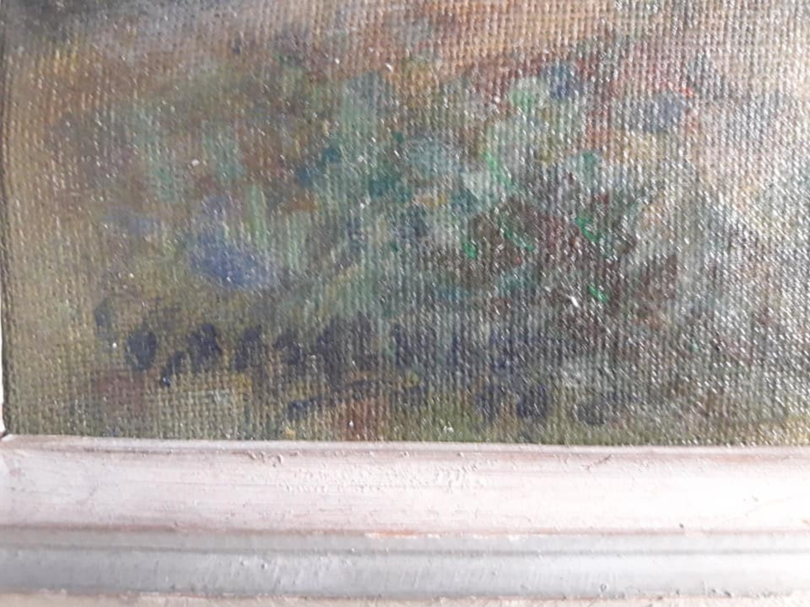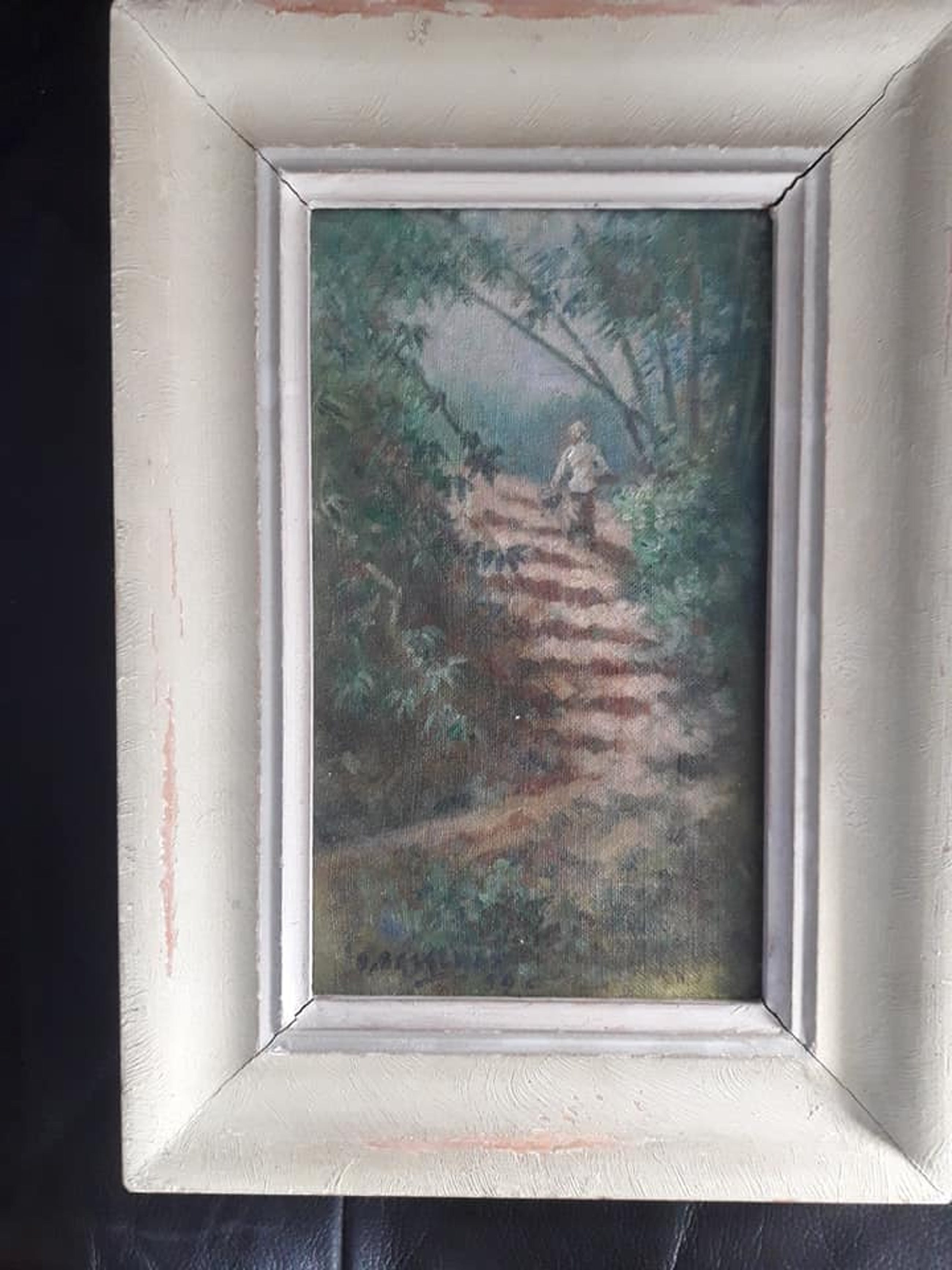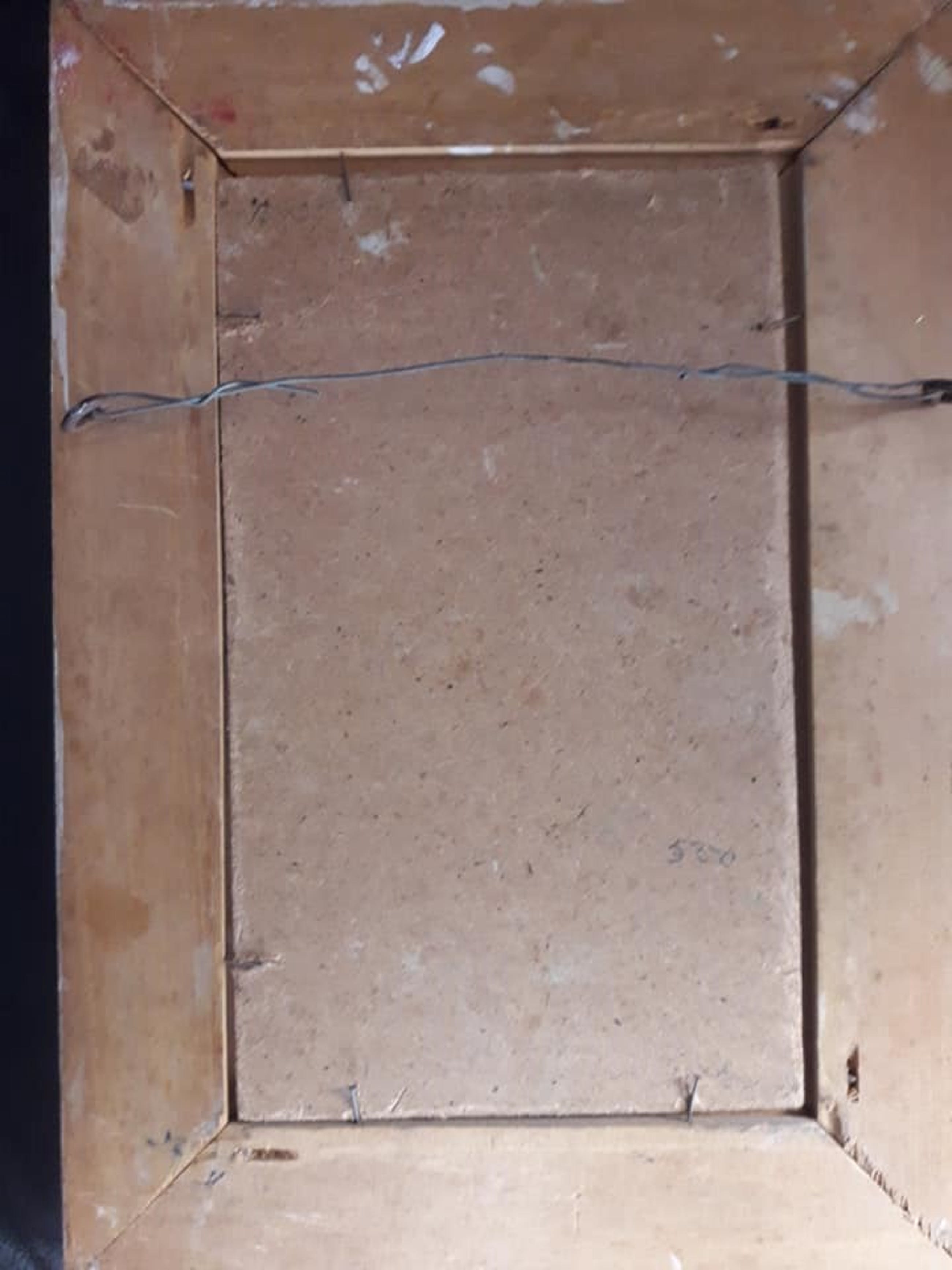 Leuk oud werkje dat oosters aandoet. Wellicht indonsie? Het is gesigneerd maar dat is door mij niet te ontcijferen. Doordat het gemaroufleerd is, is de ouderdom moeilijk in te schatten. Het zou ook zomaar nog voor-oorlogs kunnen zijn.