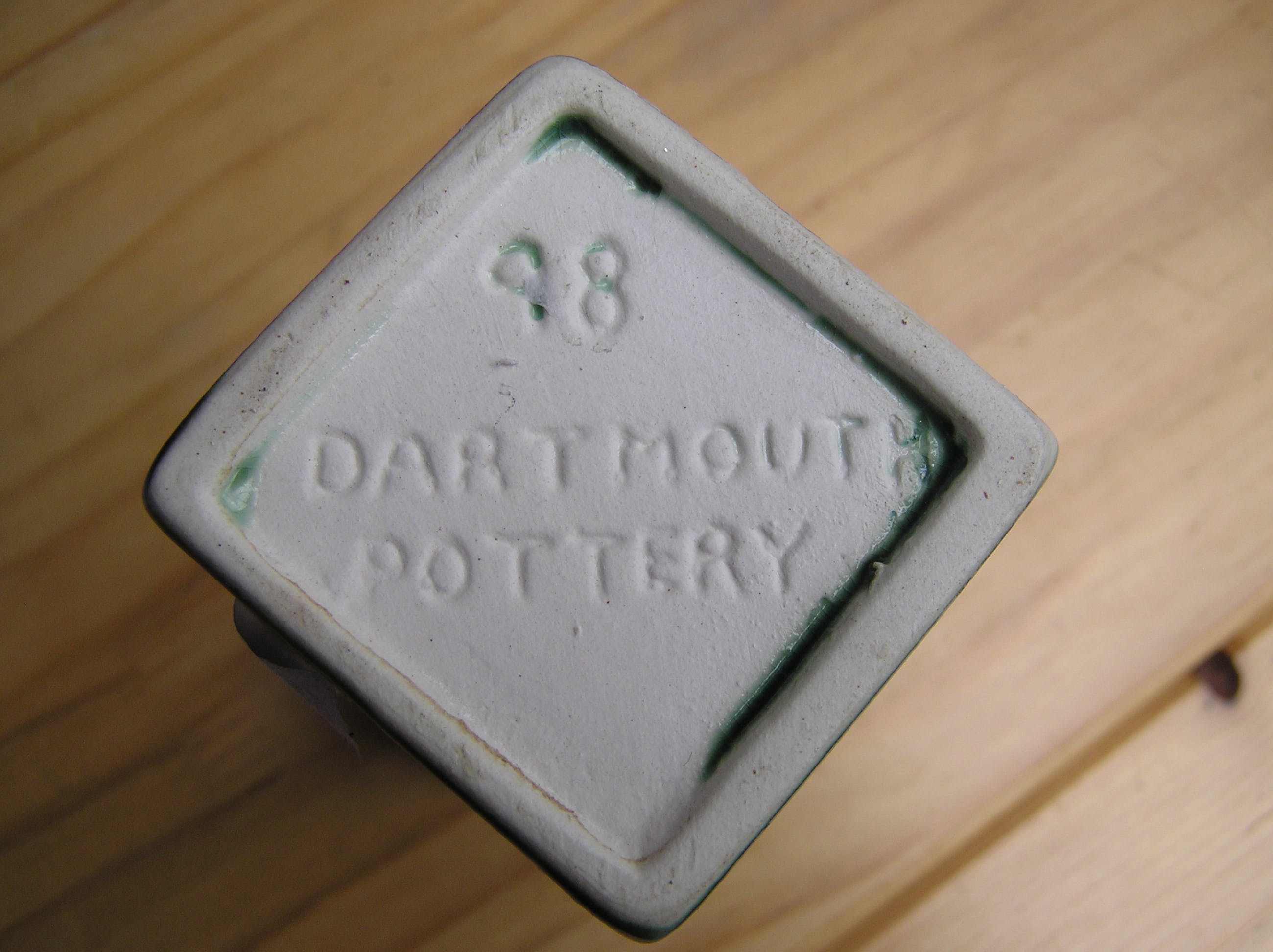Dartmouth Pottery groene metallic vierkant aardewerk vaasje. In prima onbeschadigde conditie. Aan de onderzijde voorzien van een ingedrukt merk.