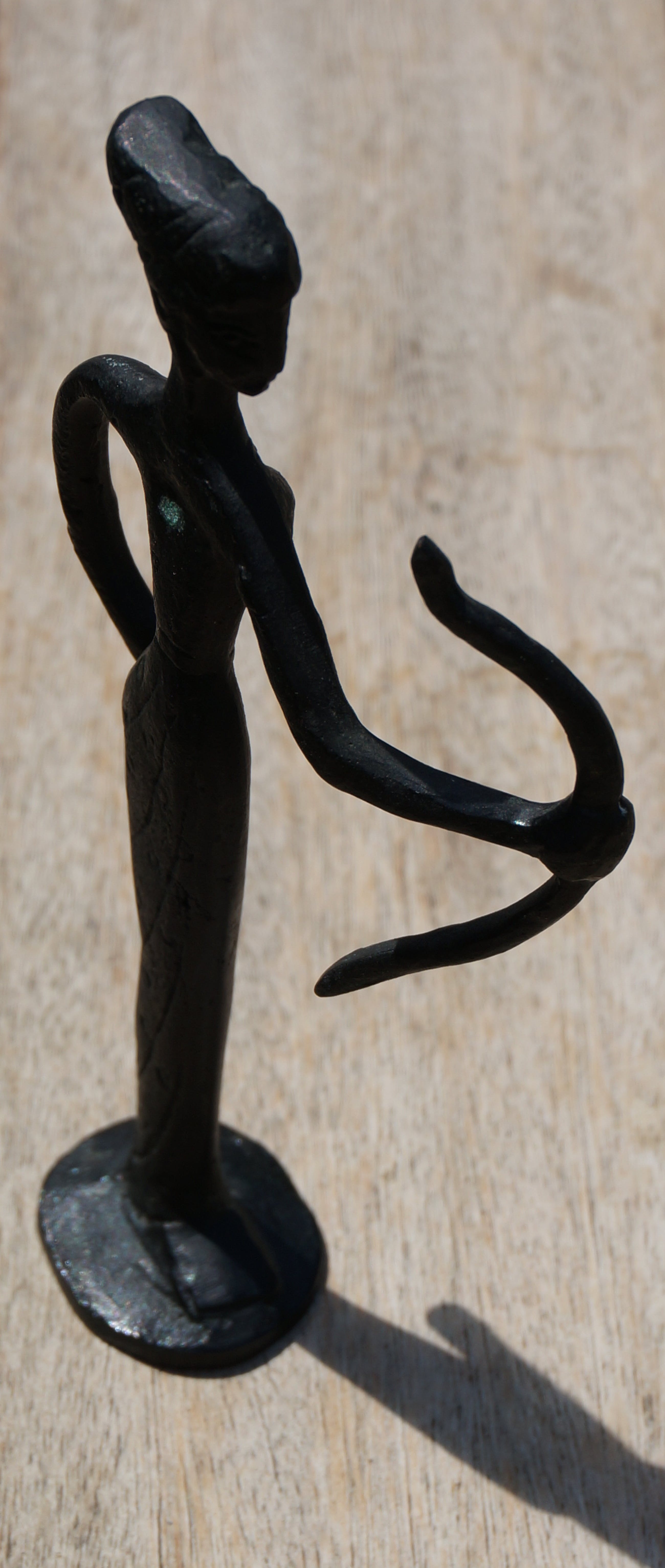 Het charmante beeldje (brons c.q. verbronsd metaal) is duidelijk geïnspireerd op de godin van de jacht uit de klassieke mythologie: Artemis/ Diana. Er is geen signatuur voorhanden De datering is daarom ook een gokje.