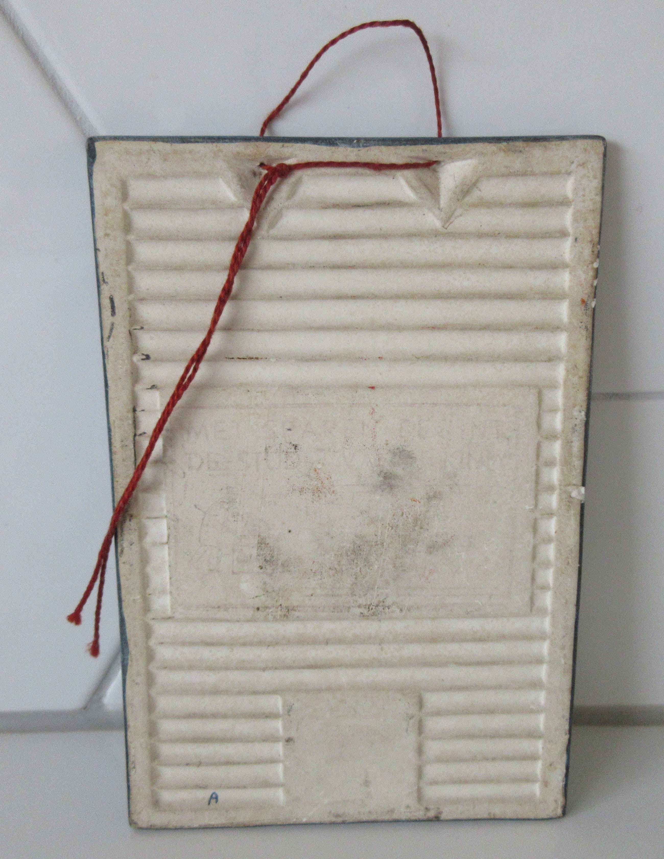 Delftsblauwe hand beschilderde aardewerken geboortetegel uit 1935. Er is ledikantje afgebeeld met een baby op de tegel en de naam; "Ine, 1935, Amsterdam". De tegel is niet gemerkt dus onduidelijk bij welke plateelbakkerij of aardewerkfabriek hij is gemaakt. Heel vaag staat er op de achterkant de (reclame) tekst;"Met sparen begin de studie van een kind". En de afbeelding van een mannetje. Op de achter heeft de tegel drie flinters op de rand.