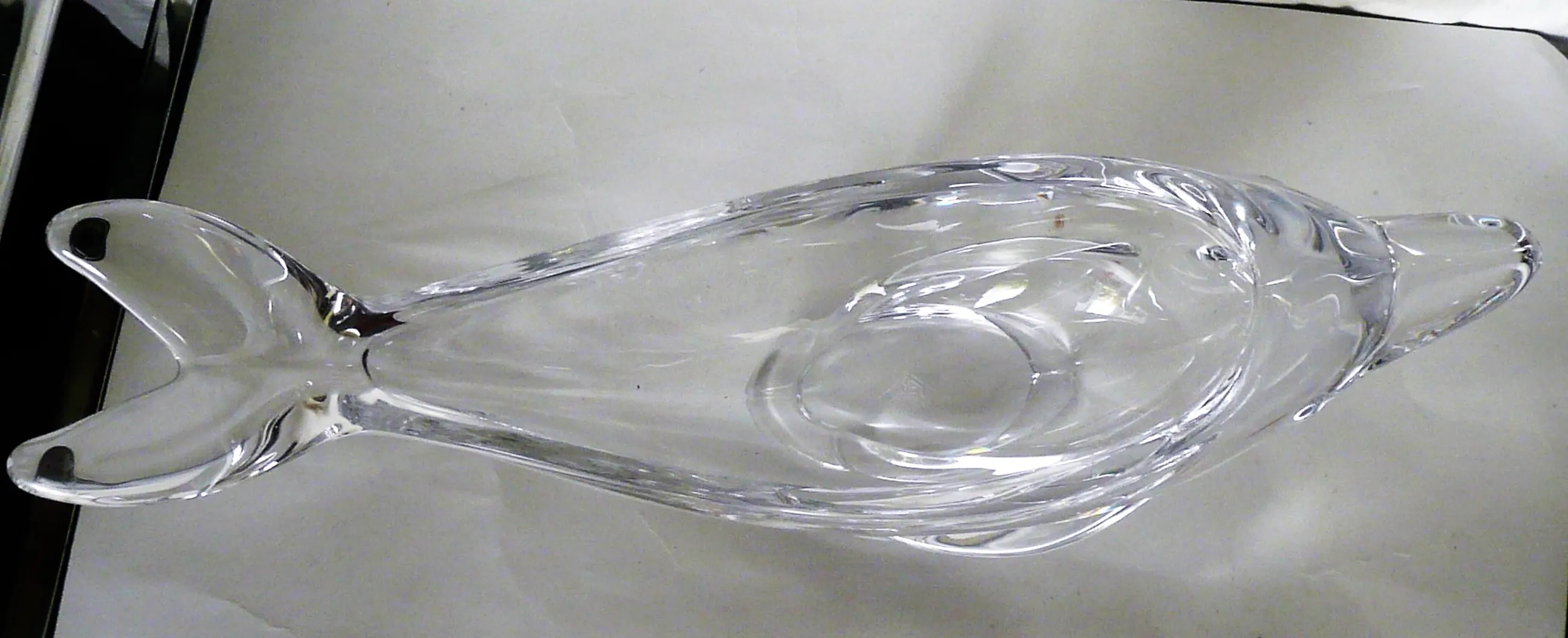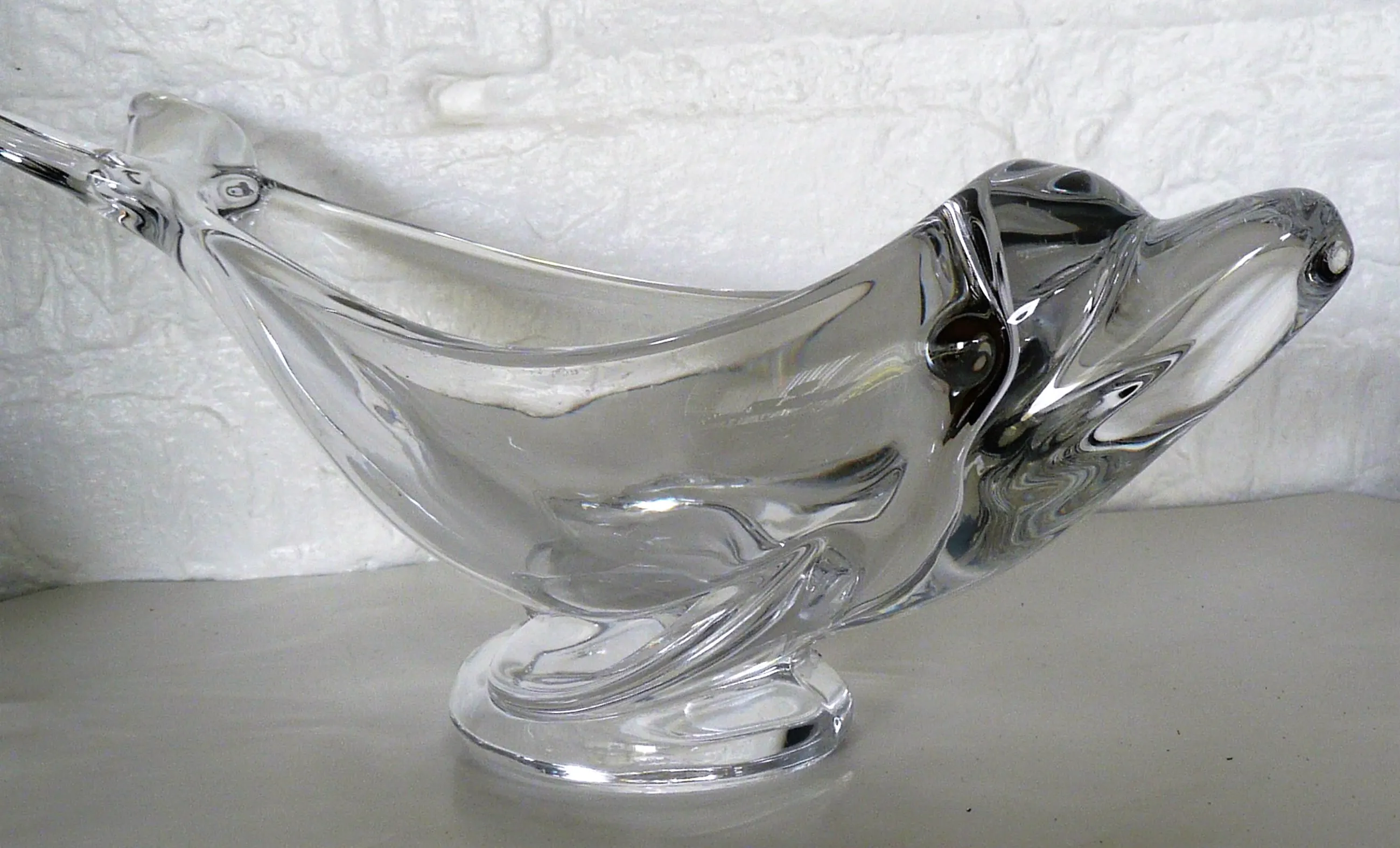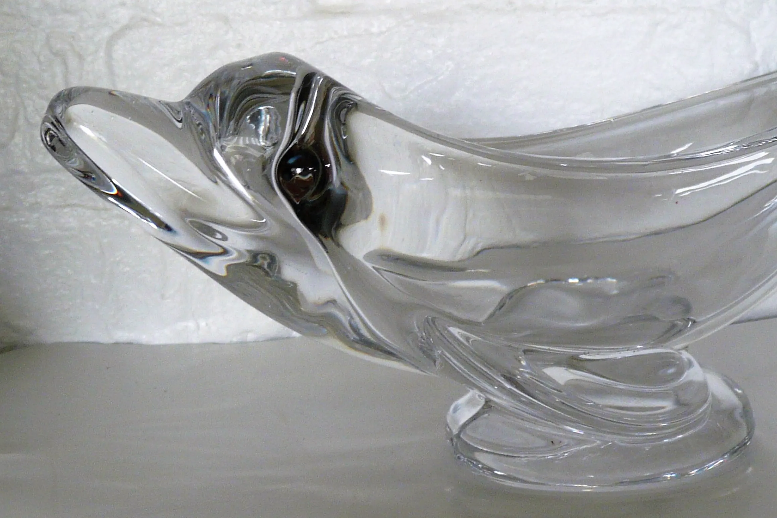 Een mooi stuk kristal van het bekende Art Vannes France in de vorm van een sierlijke dolfijn.