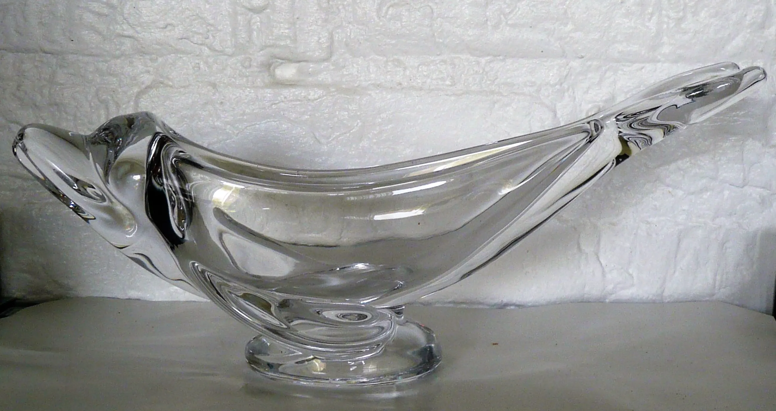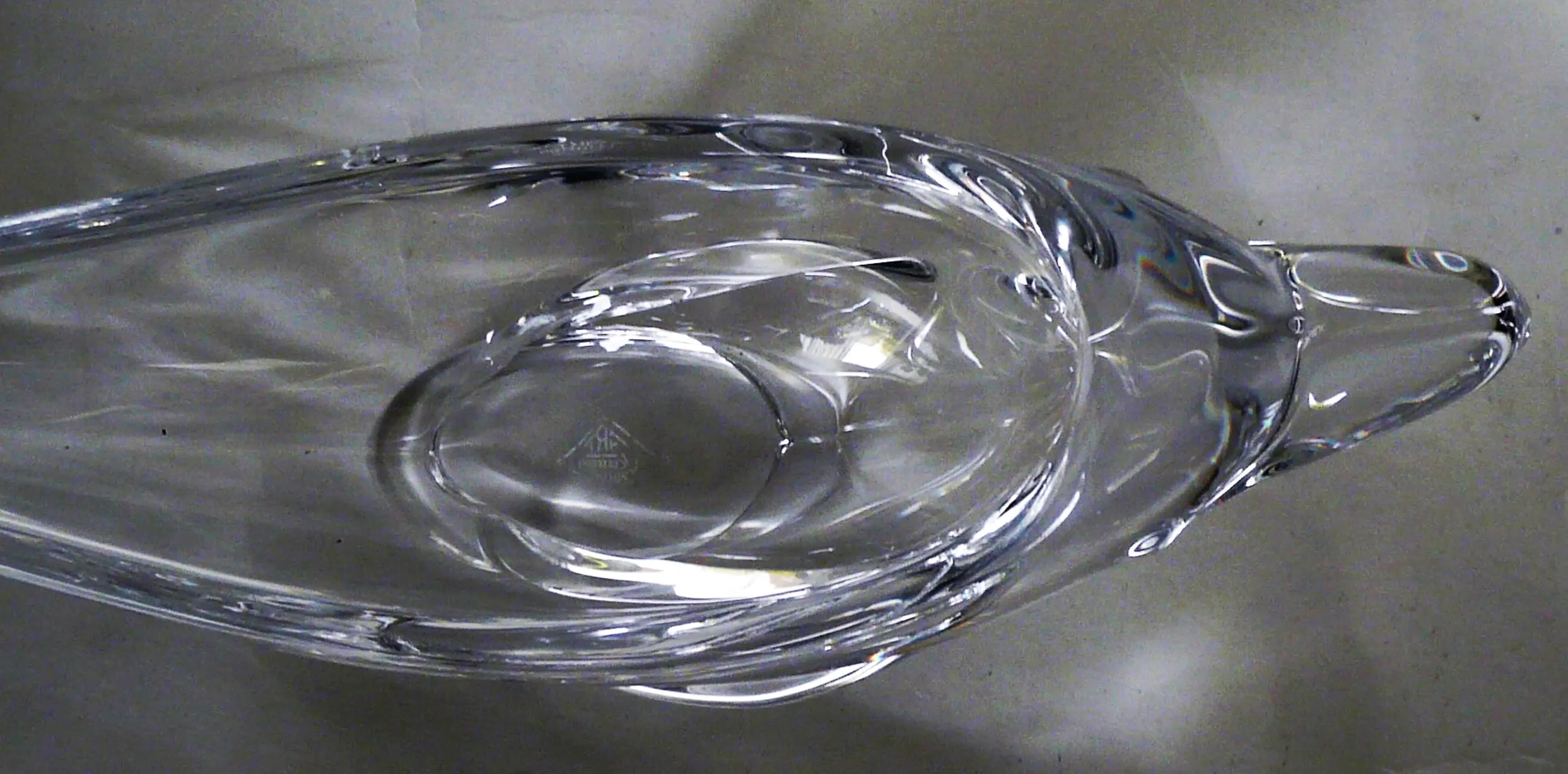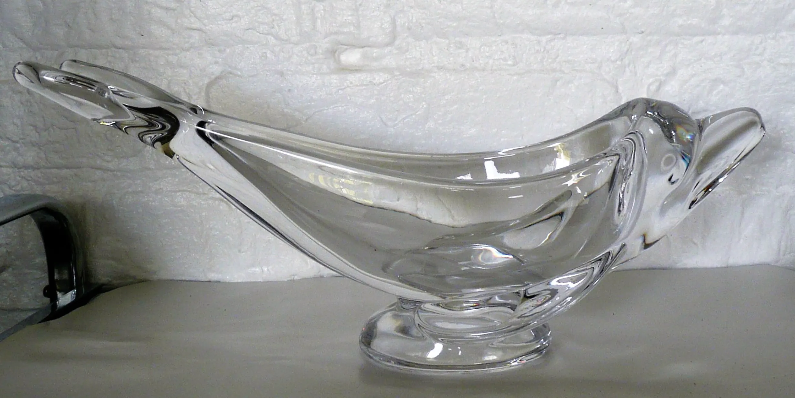 Een mooi stuk kristal van het bekende Art Vannes France in de vorm van een sierlijke dolfijn.