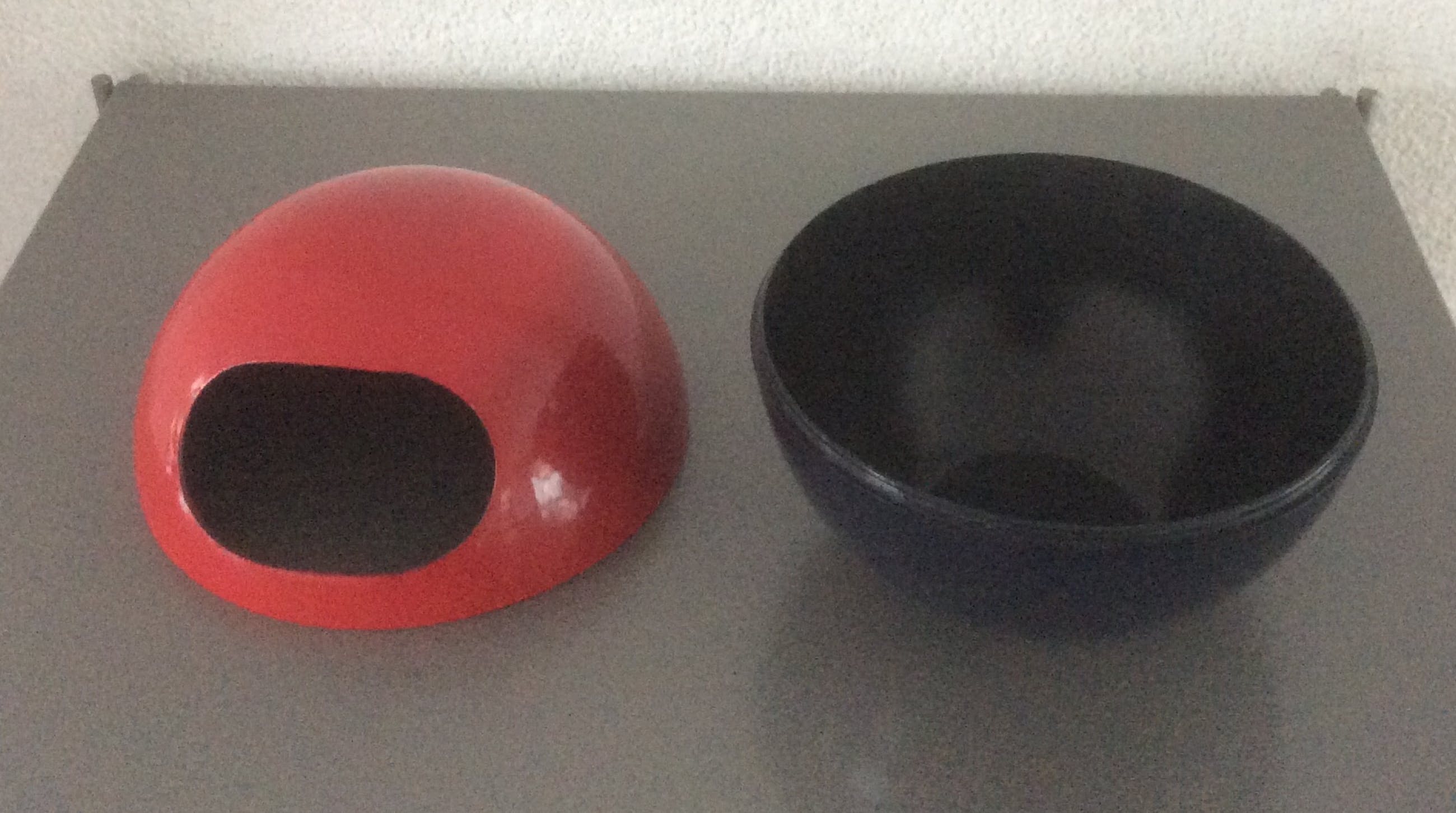 Een rood/blauw gekleurde presenteerbak.