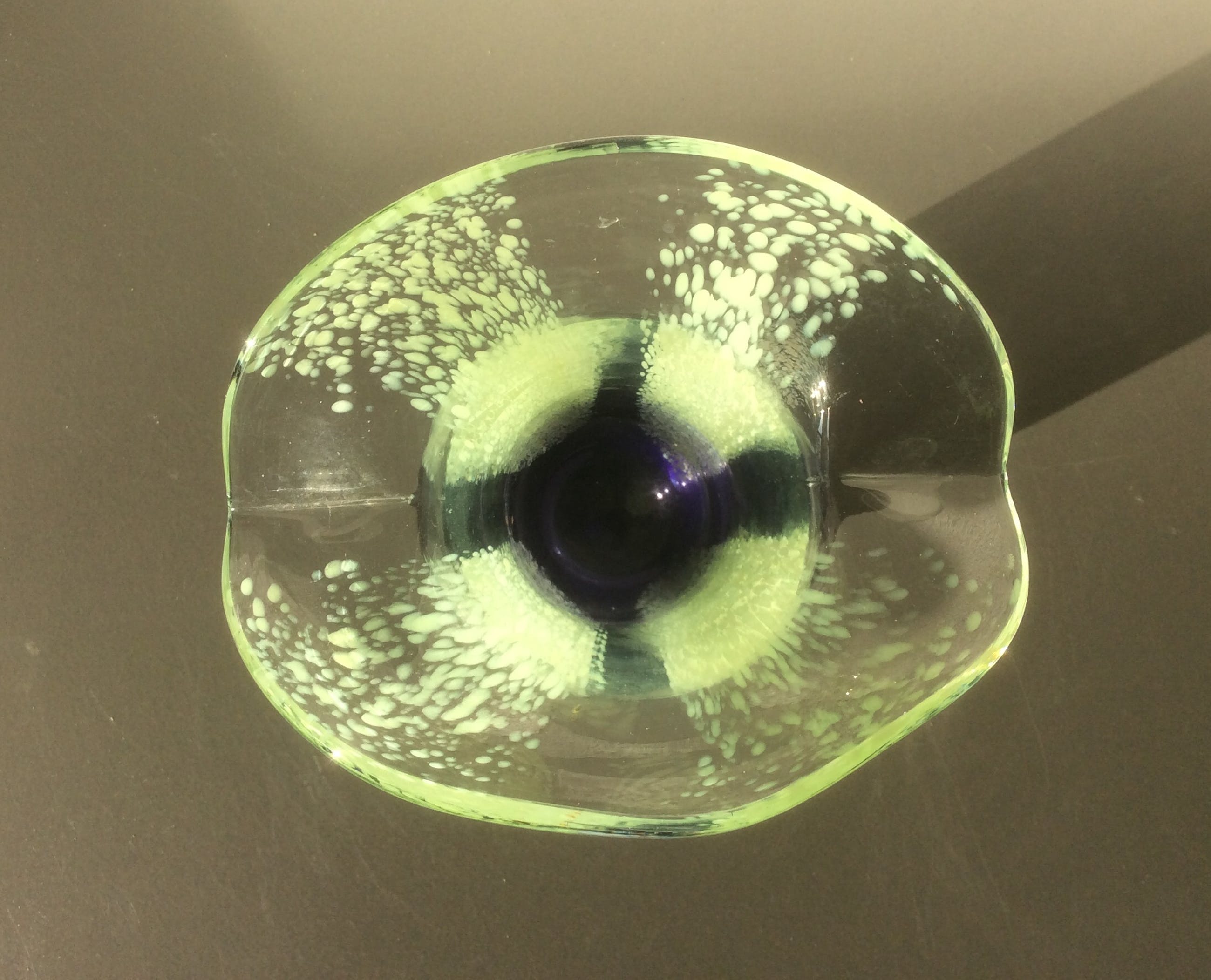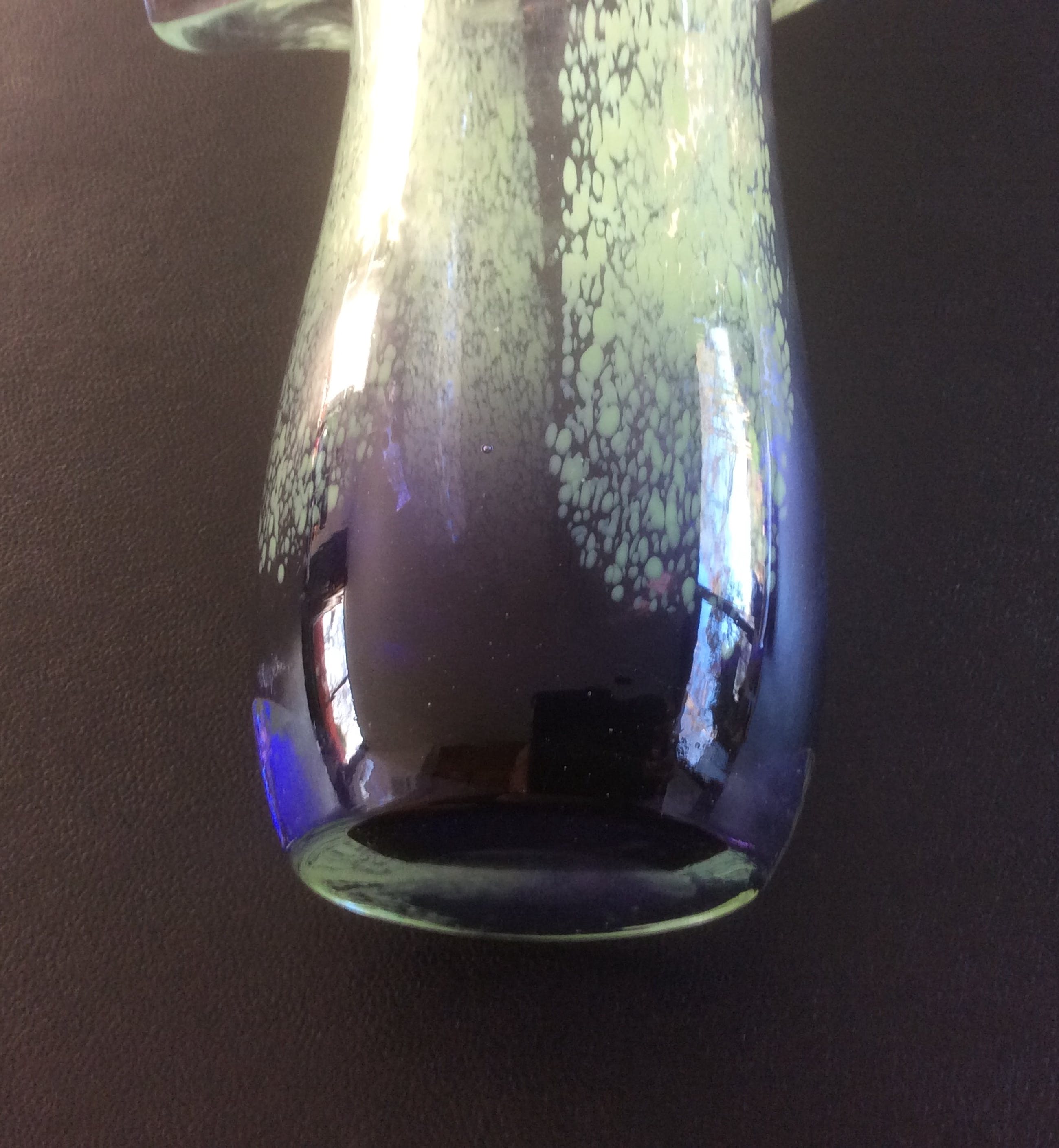 De kleurstelling is lichtgroen, paars en transparant glas.