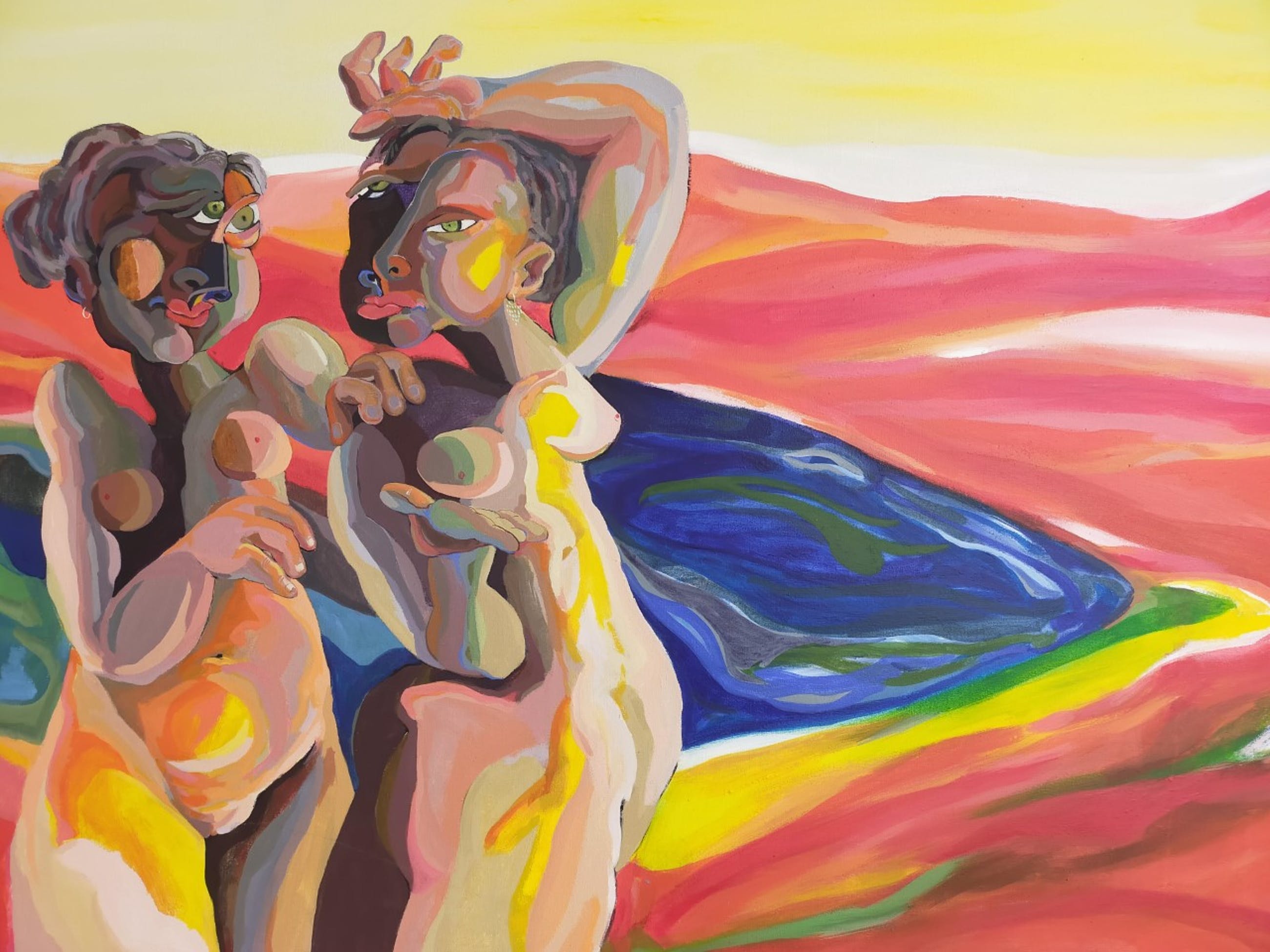 Groot werk van spaanse ( ? ) kunstenaar - spaanse om reden spaanse titel van het werk - aan achterzijde. Gesigneerd ' Rises' (?) Aantrekkelijk expressief werk, felle kleuren - Om reden van grootte kan dit werk niet verzonden worden - na goede afspraak kan dit mogelijk wel, kunnen zien.