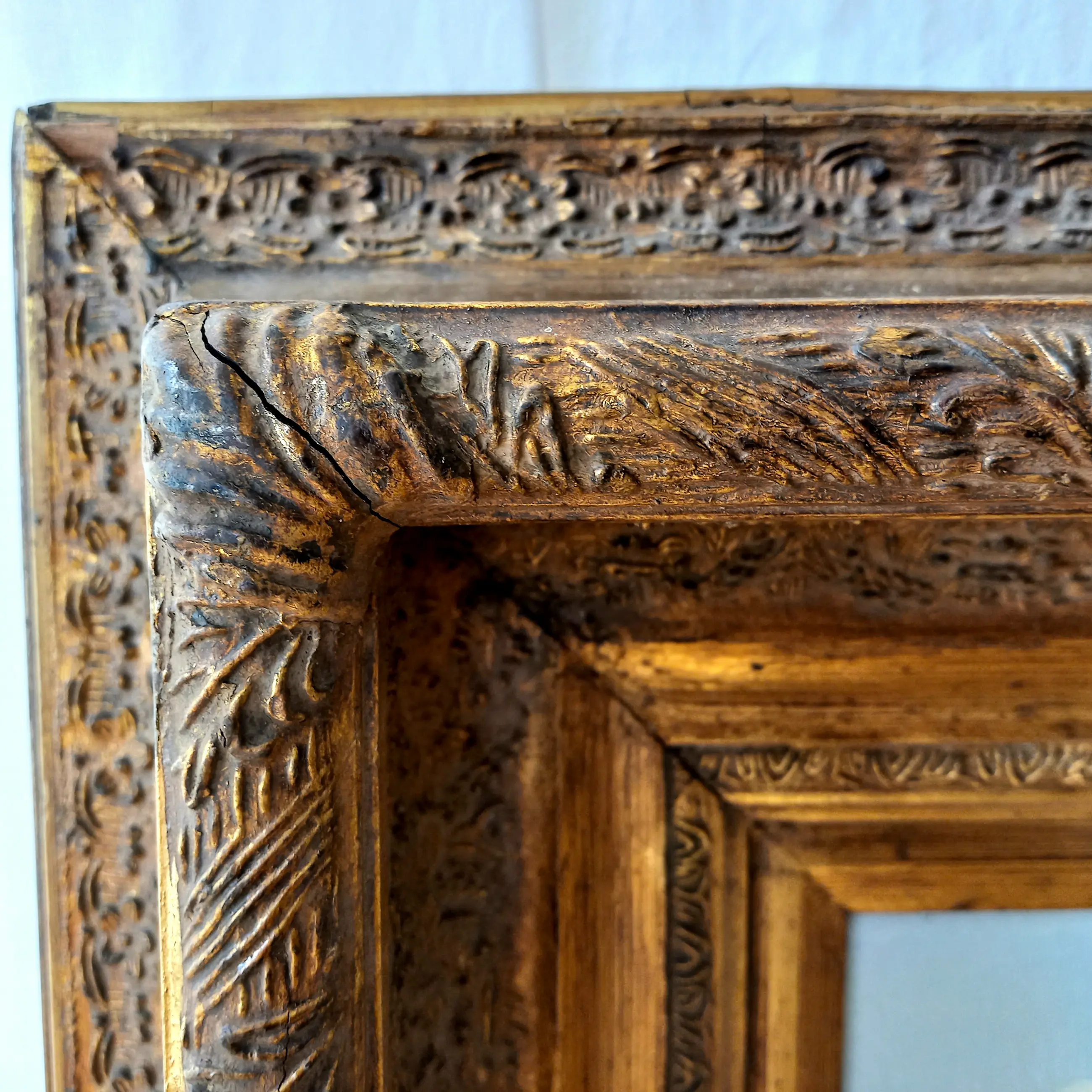 Het geheel is geplaatst in een rijk gedecoreerde, klassiek uitgevoerde houten lijst die perfect aansluit bij het maritieme karakter van het werk en zorgt voor een warme, authentieke uitstraling.