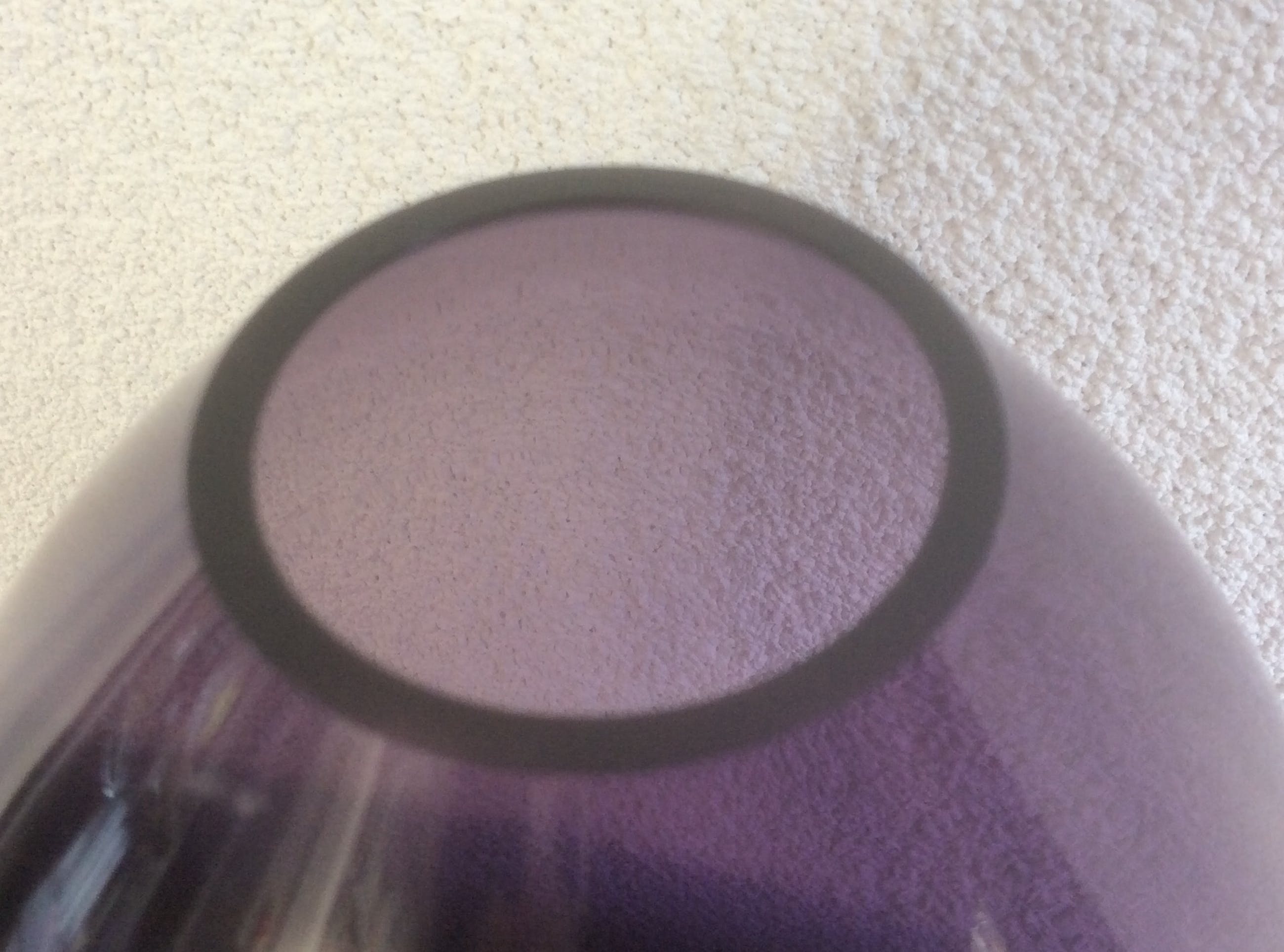 Drie paarse vazen helemaal gaaf en helder. De grote vaas is 23 cm hoog en de opening heeft een doorsnede van 4 cm. De twee kleine vaasjes zijn 11 cm hoog.