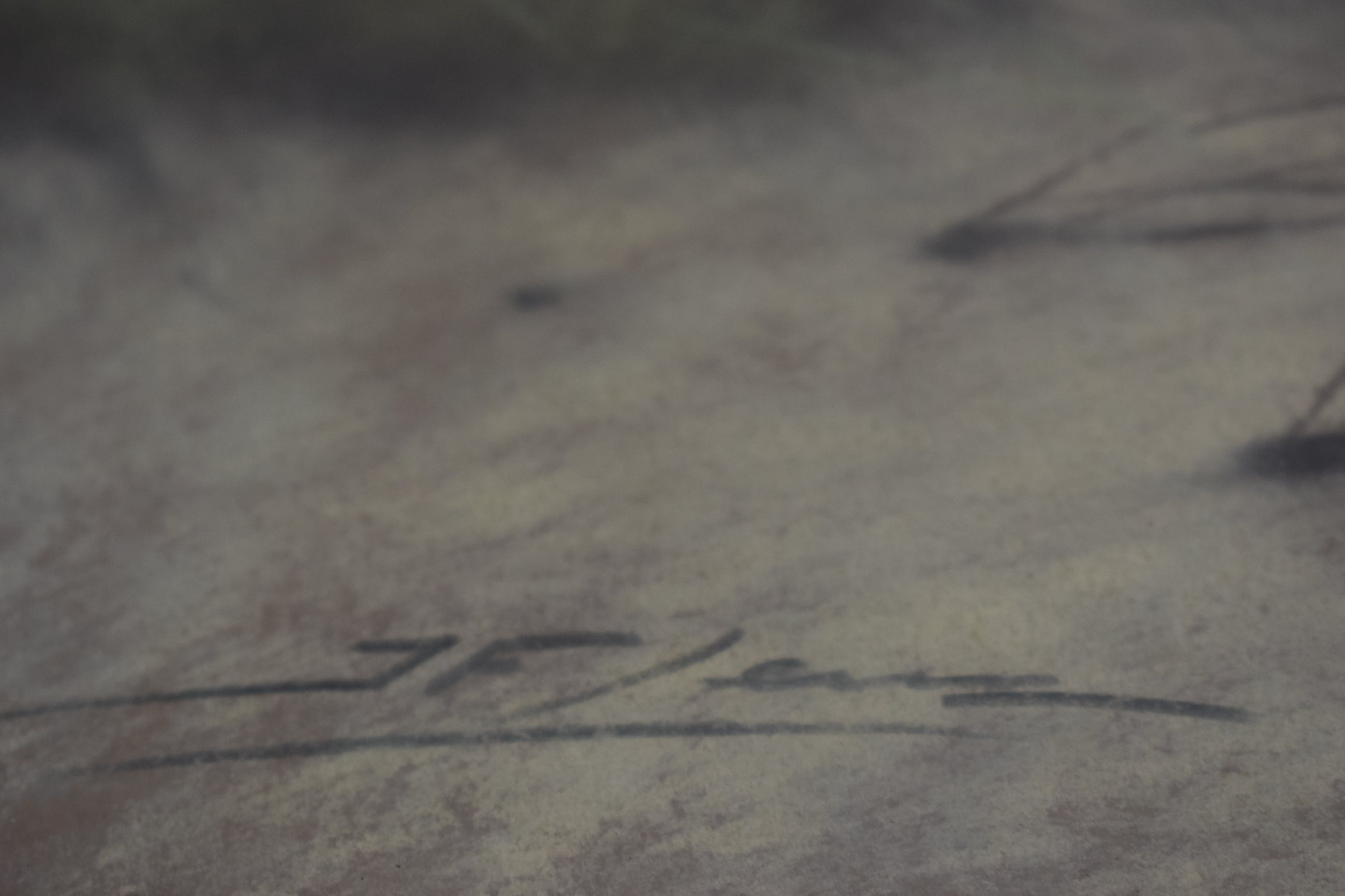 Het werk is met de hand gesigneerd linksonder, maar het is naast de eerste 2 letters J.F. niet te lezen.