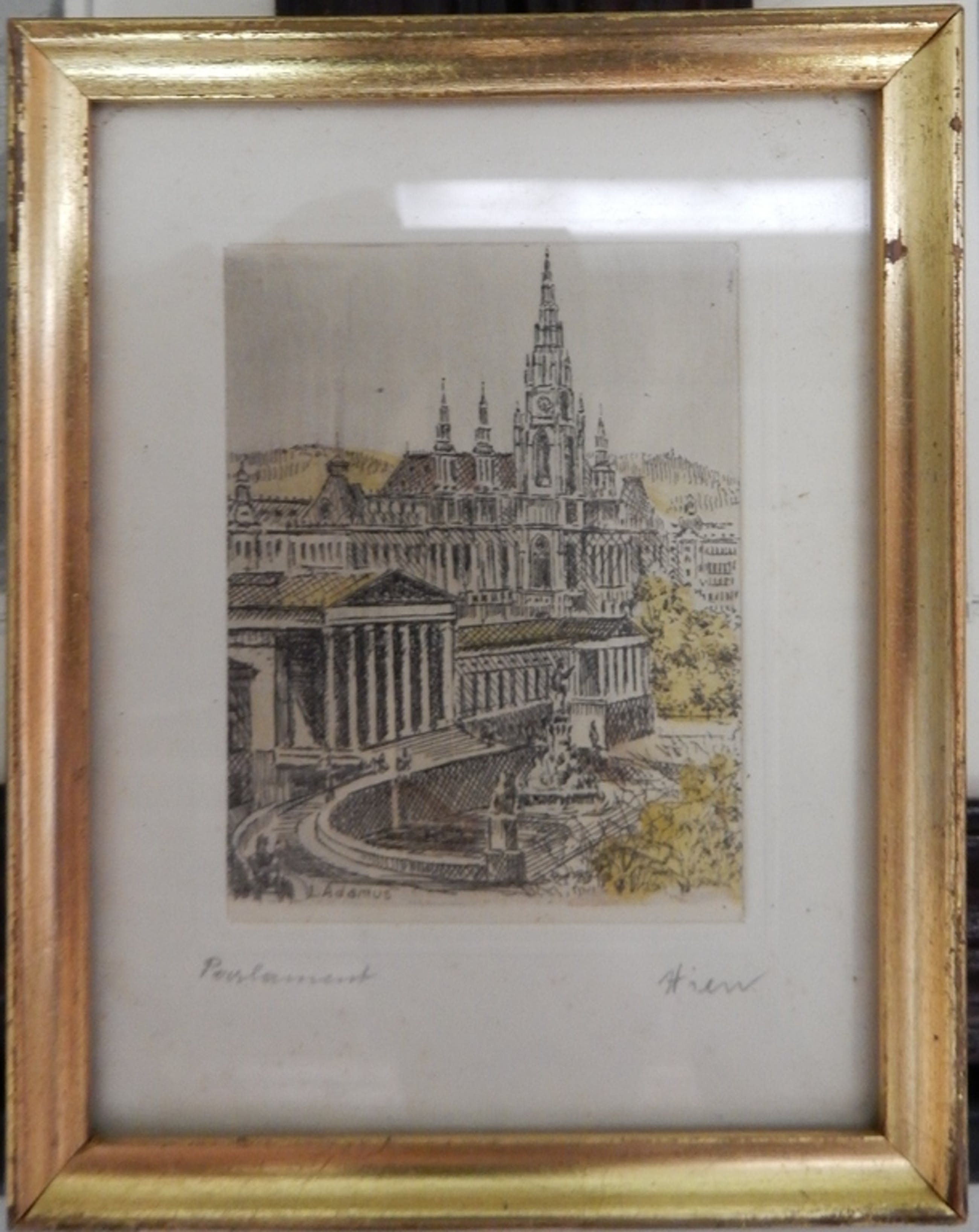 Mooie duitse kleurets, getiteld 'Wien', gesigneerd onleesbaar.