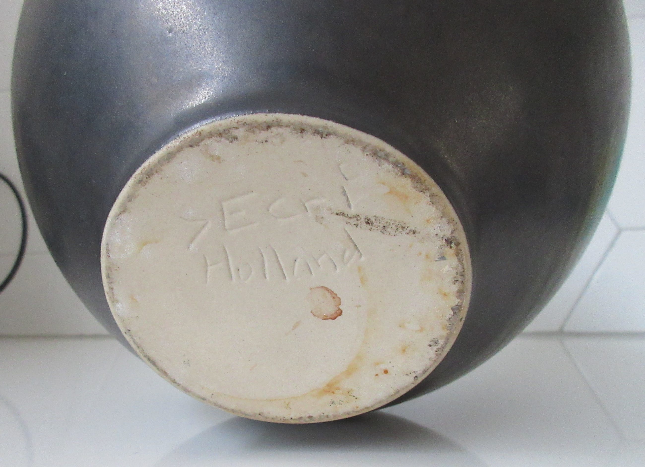 Ecri Katwijk A.Z. - Zeer grote antraciete bolvaas - zware kwaliteit! In prima onbeschadigde conditie en met d ehand gemerkt Ecri Holland aan de onderzijde. De vaas weegt meer dan 3 kg!