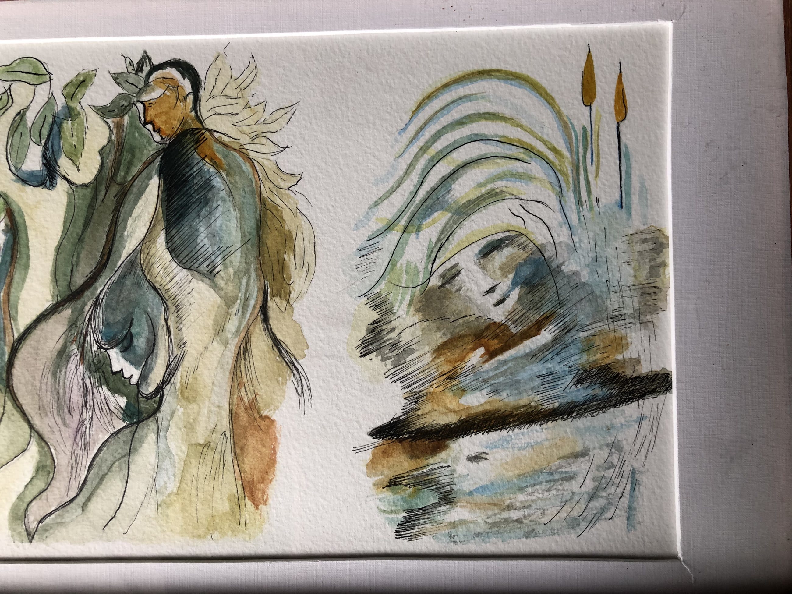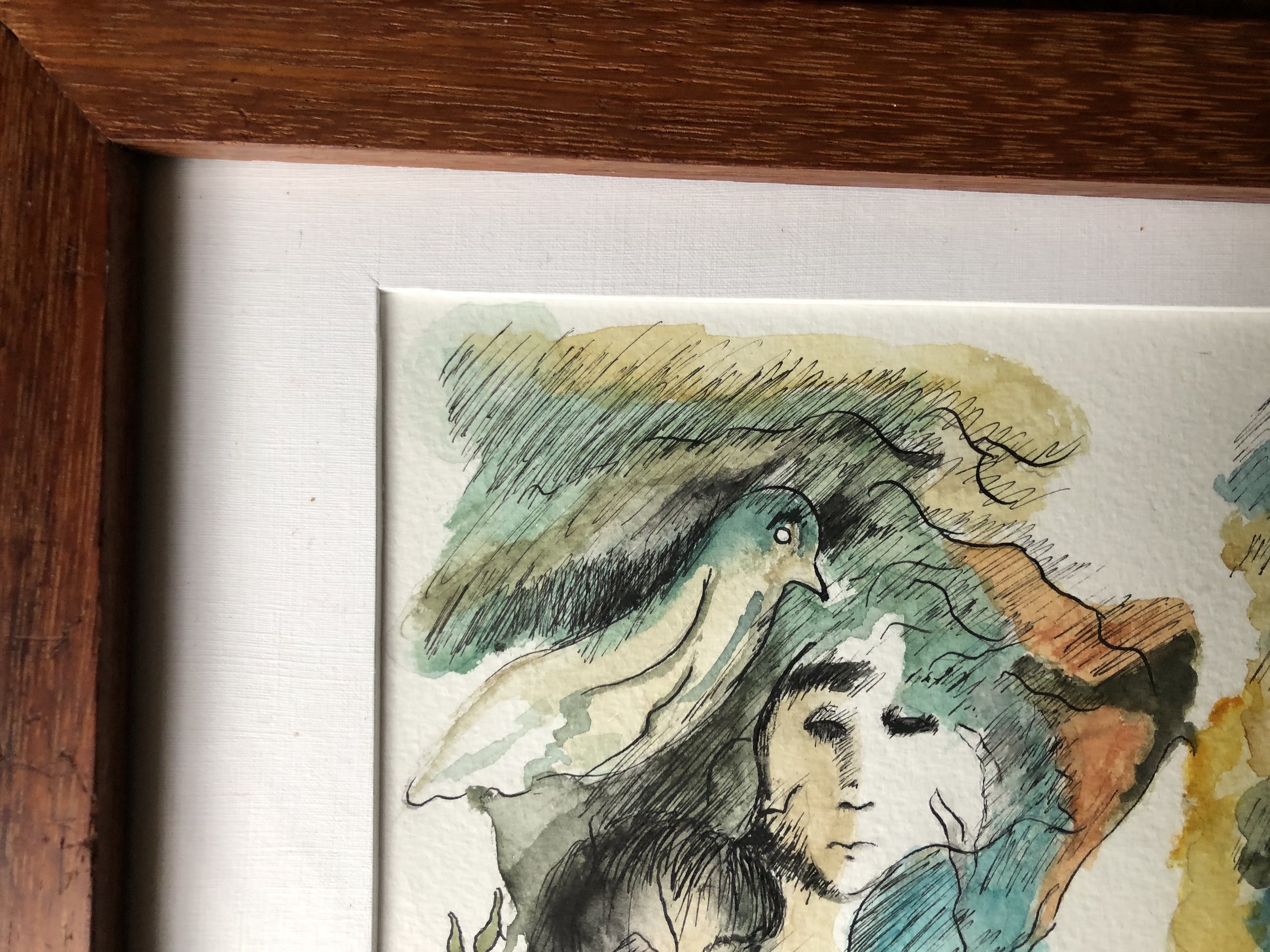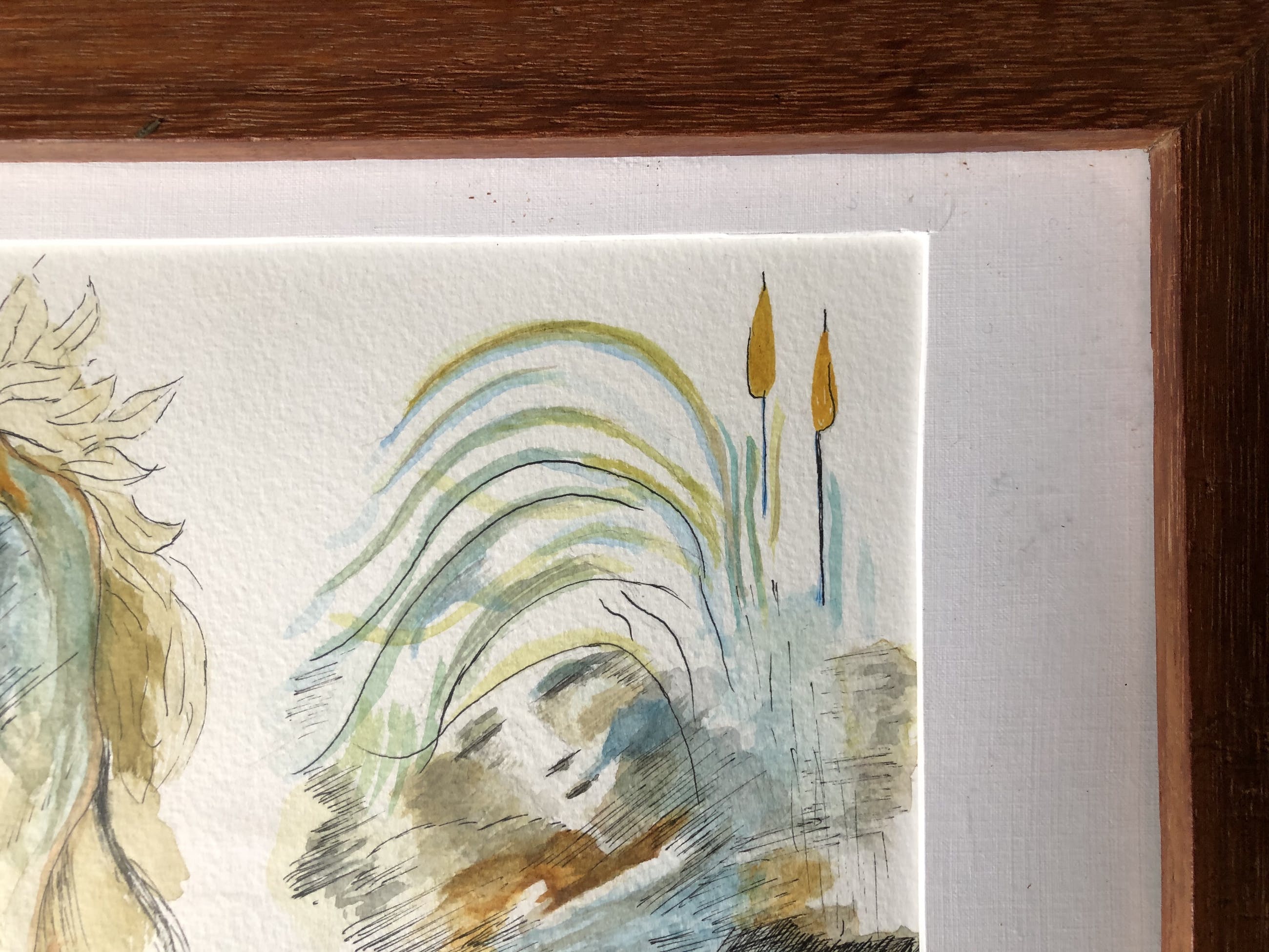 Ongesigneerd werk. In paspartout in houten lijst.