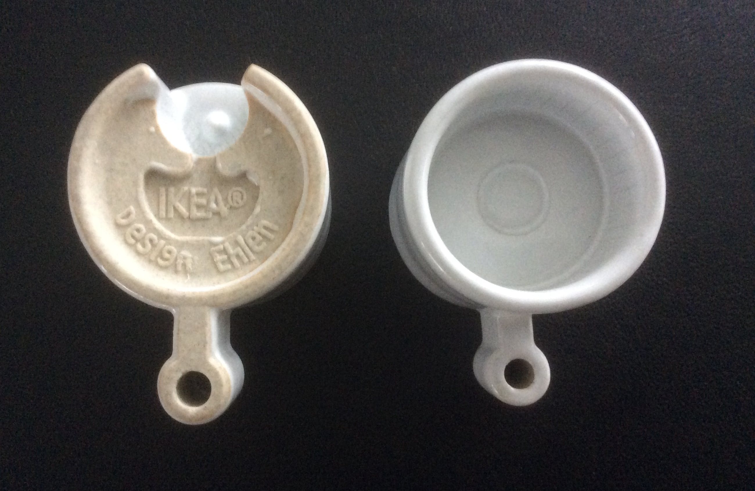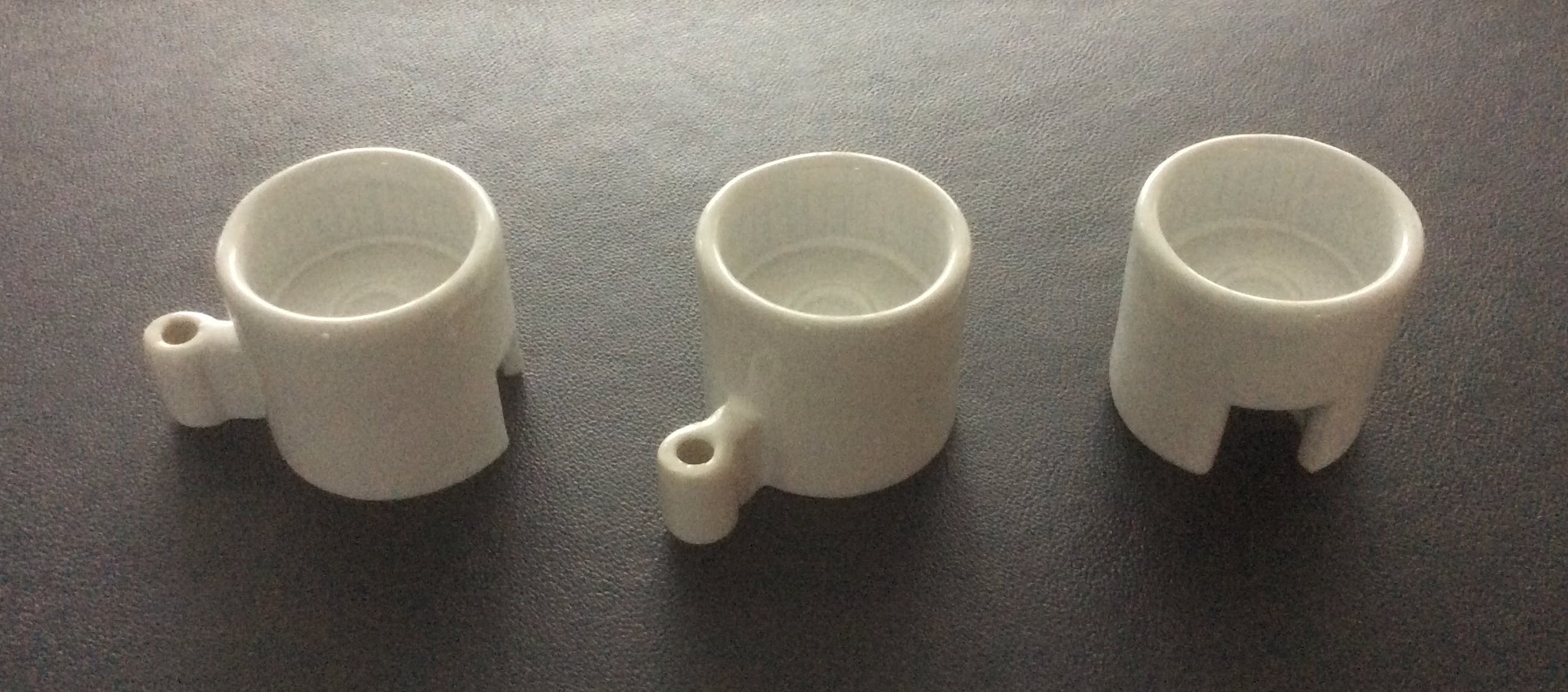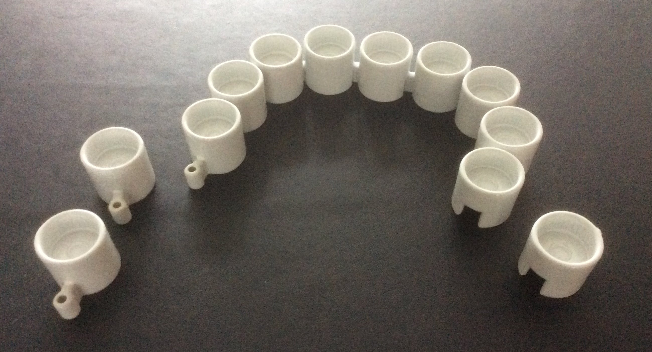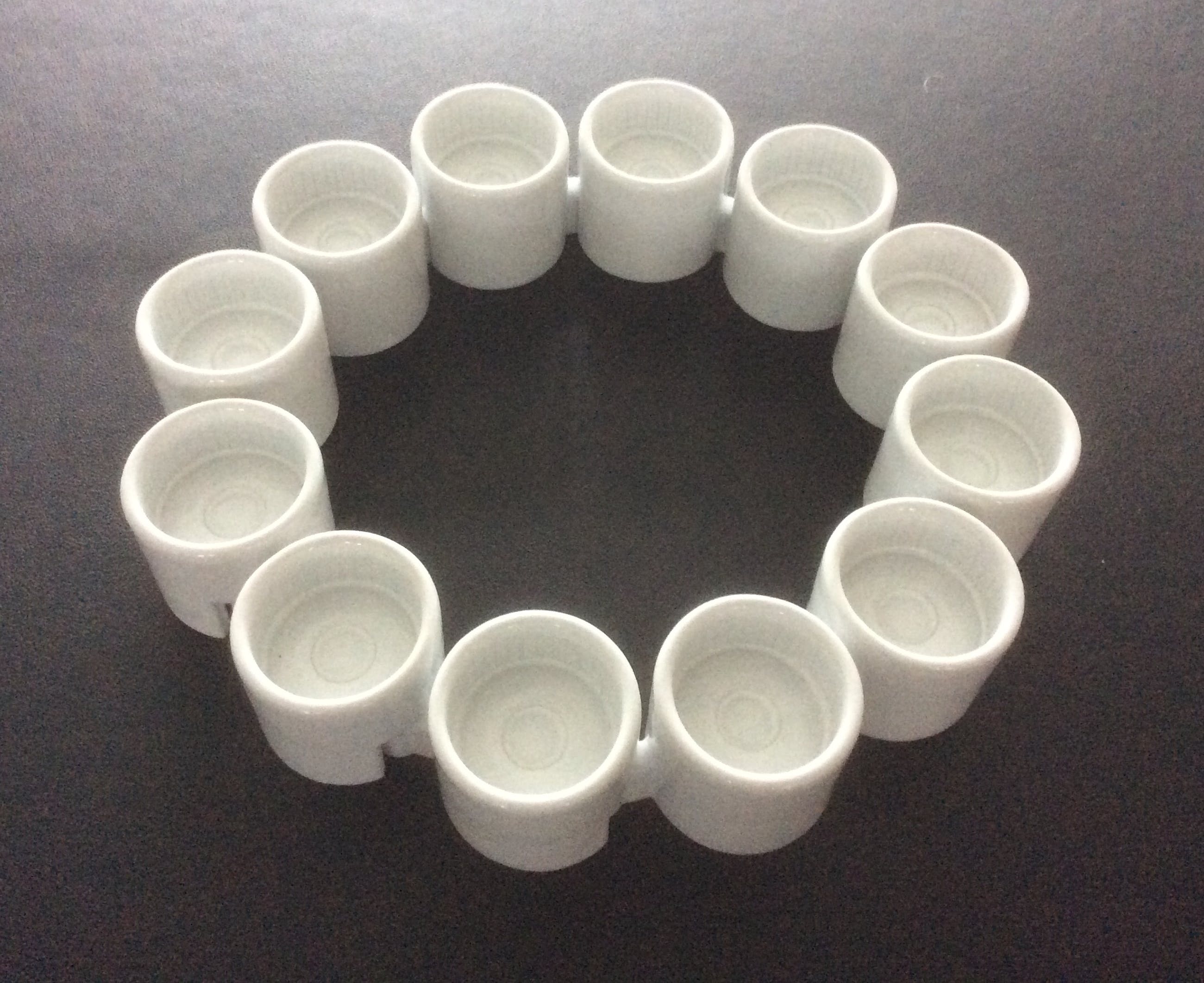 Twaalf Ikea design waxinelichthouders van porselein, schakelbaar in allerlei vormen. De hoogte van de waxinelichthouder is 4,5 cm. Het ontwerp is van Ehlen Johansson.