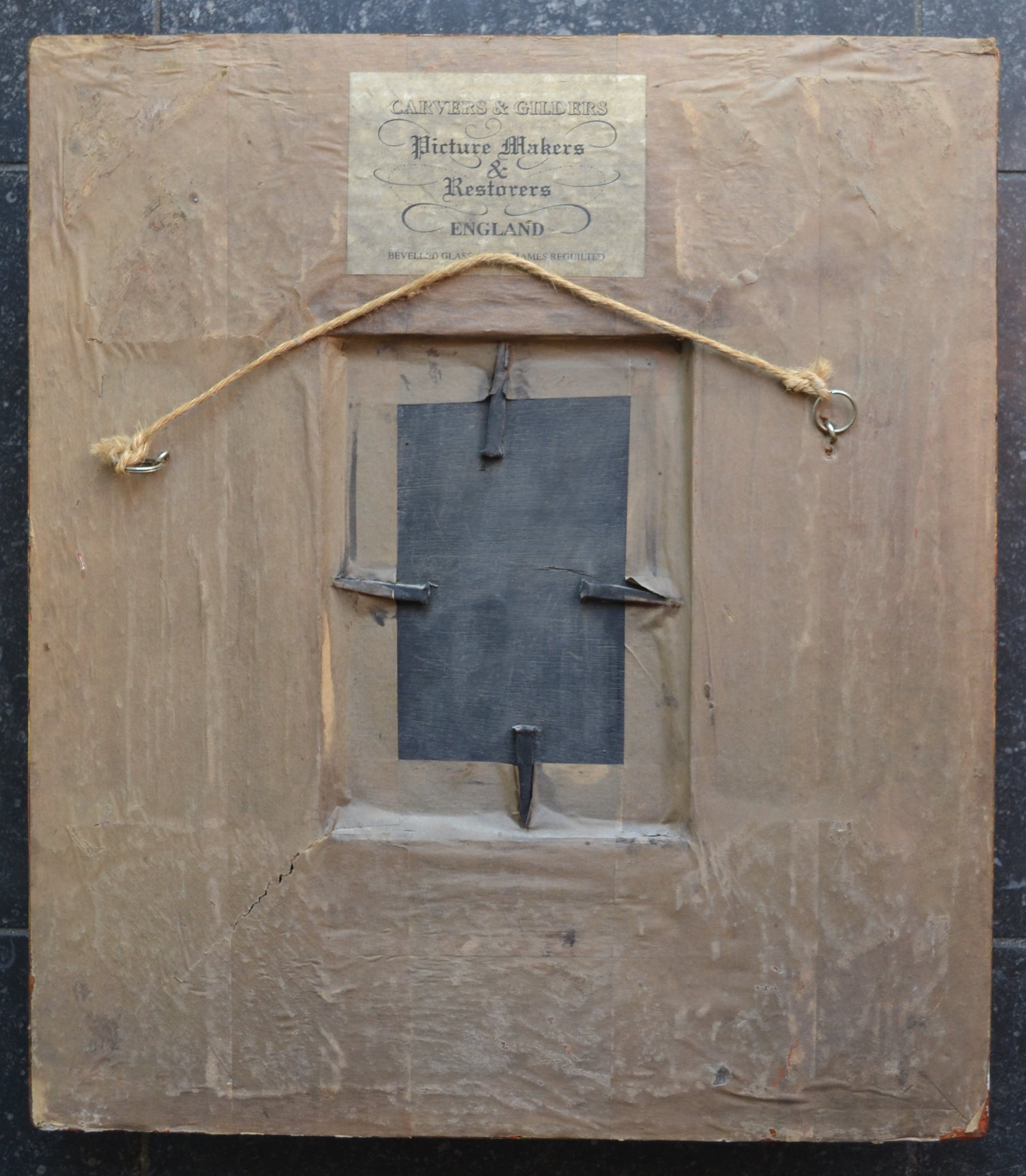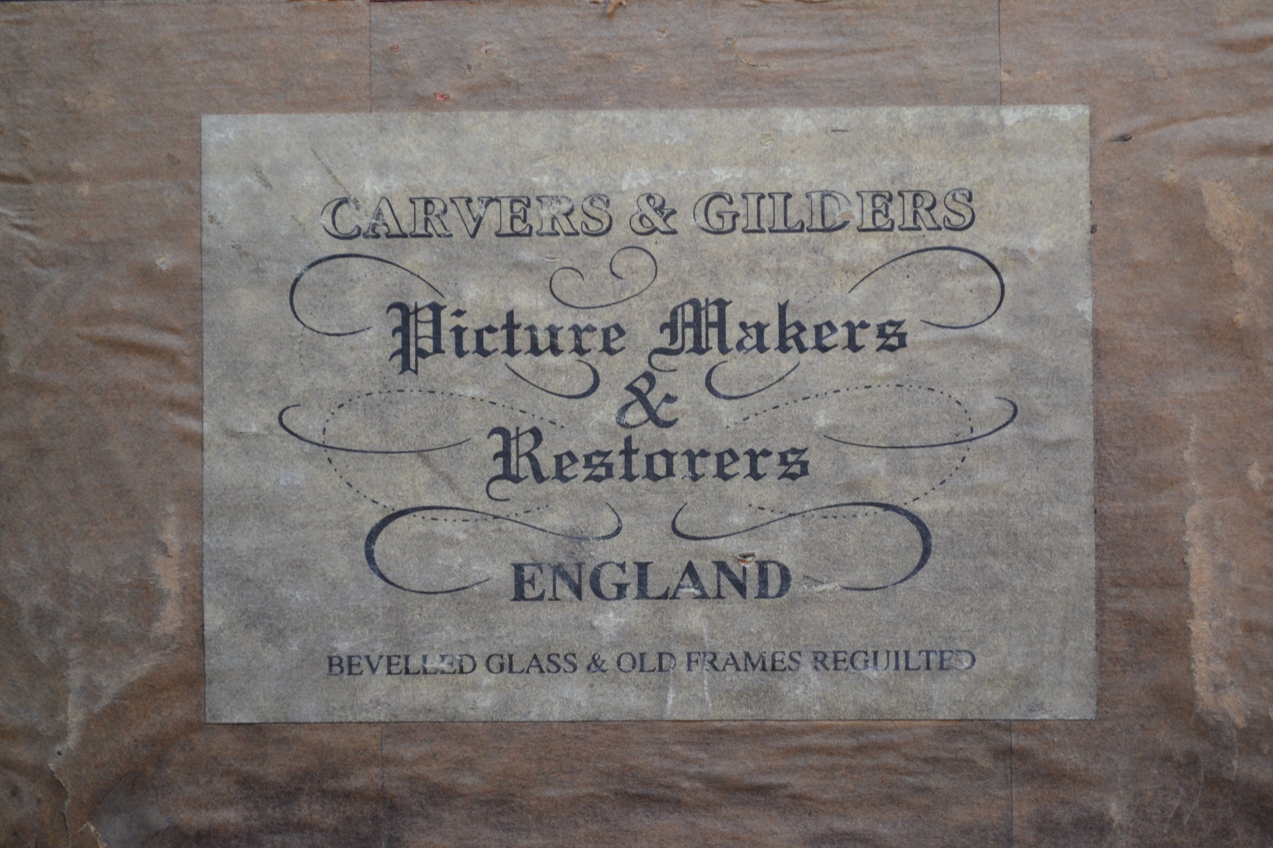 Prachtig olieverf schilderij met fraaie zware lijst van Carvers & Gilders picture makers and restorers England.