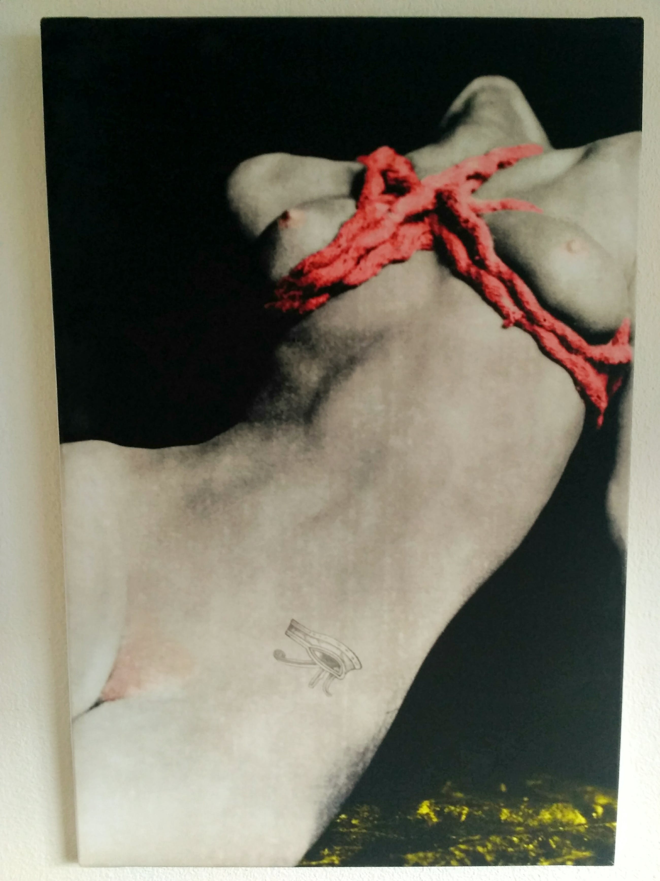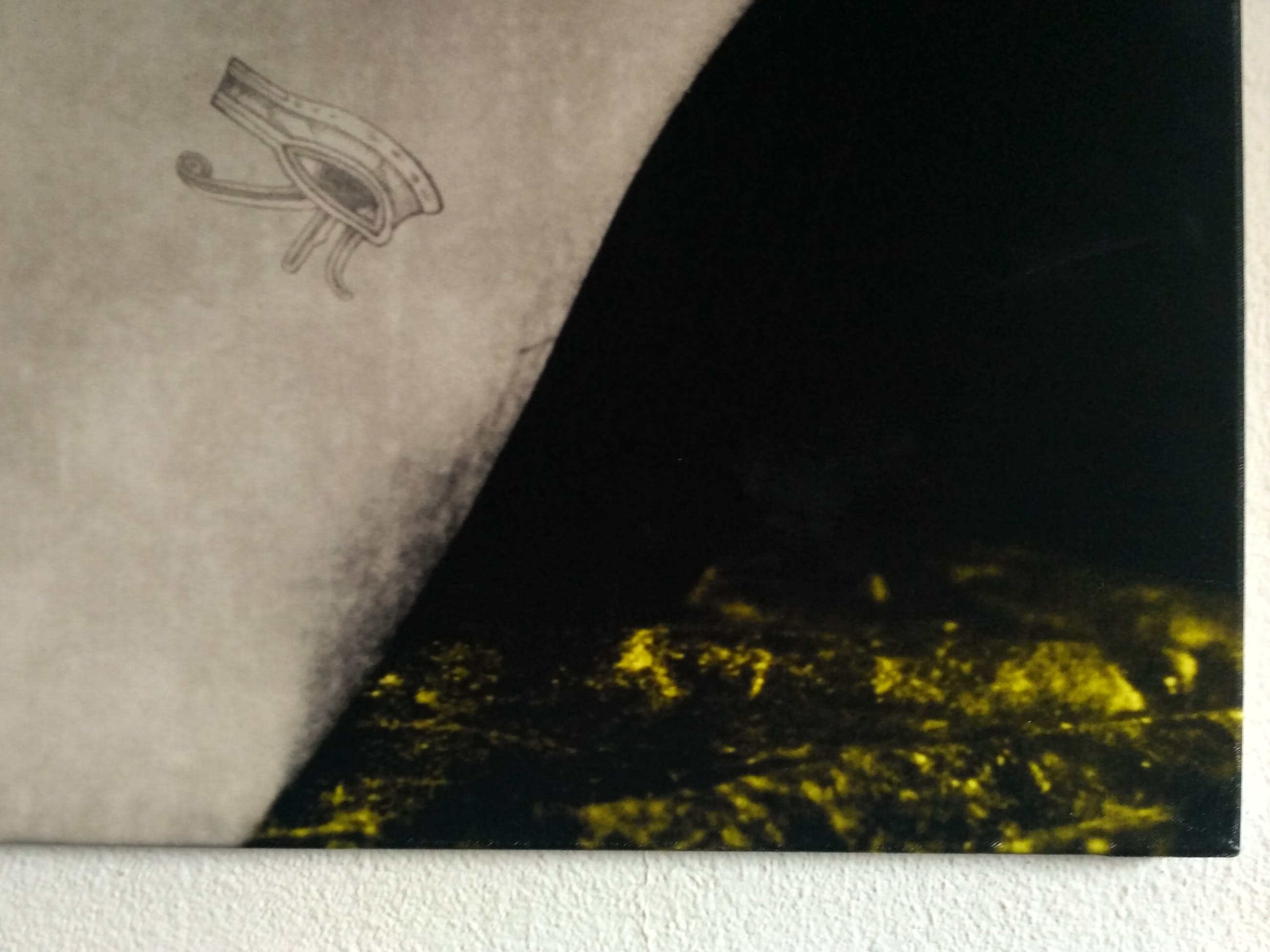 Techniek: airbrush.Hier en daar wat lichte verwering van het zwart linksboven aan de rand door aanraking.