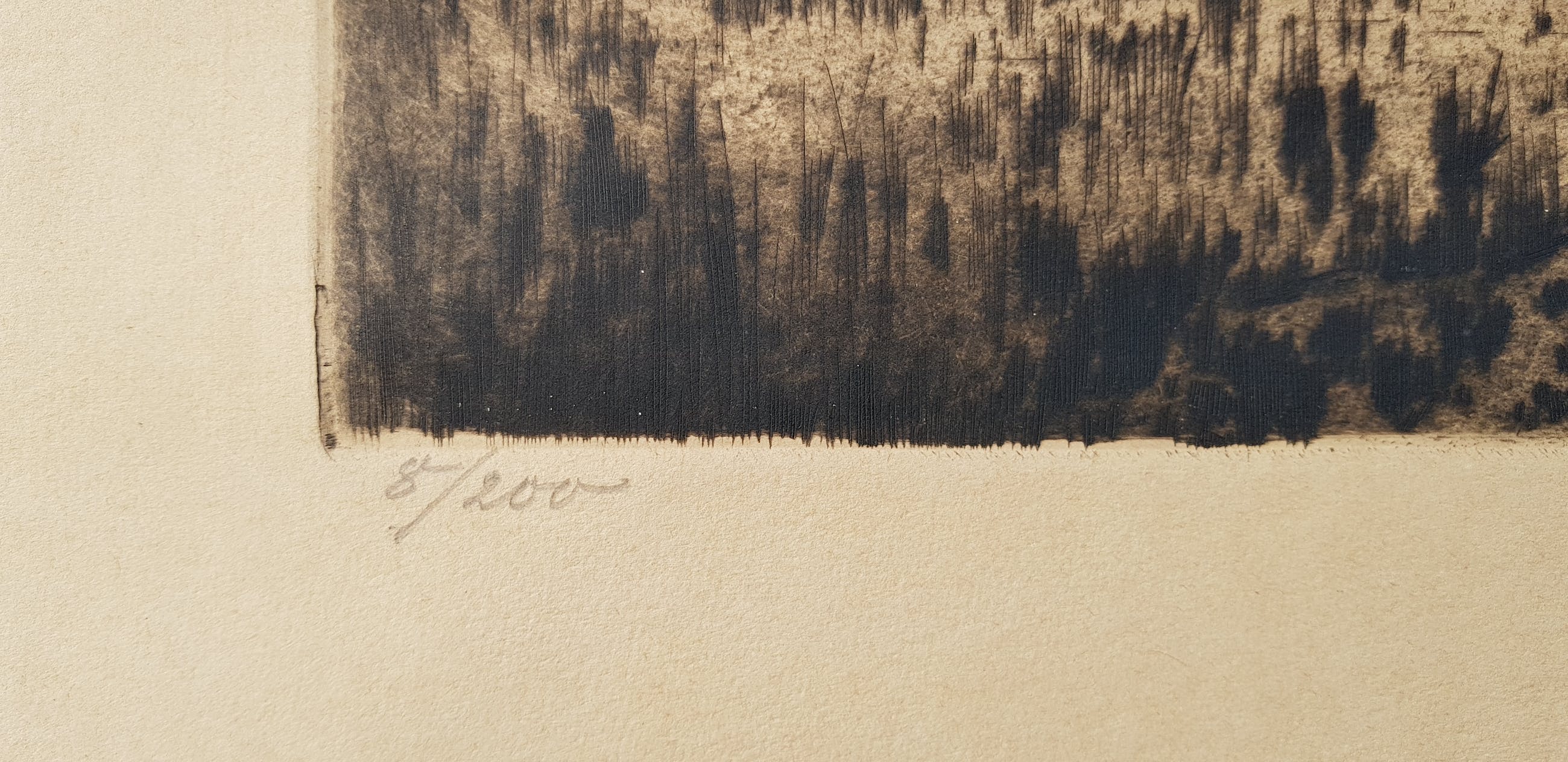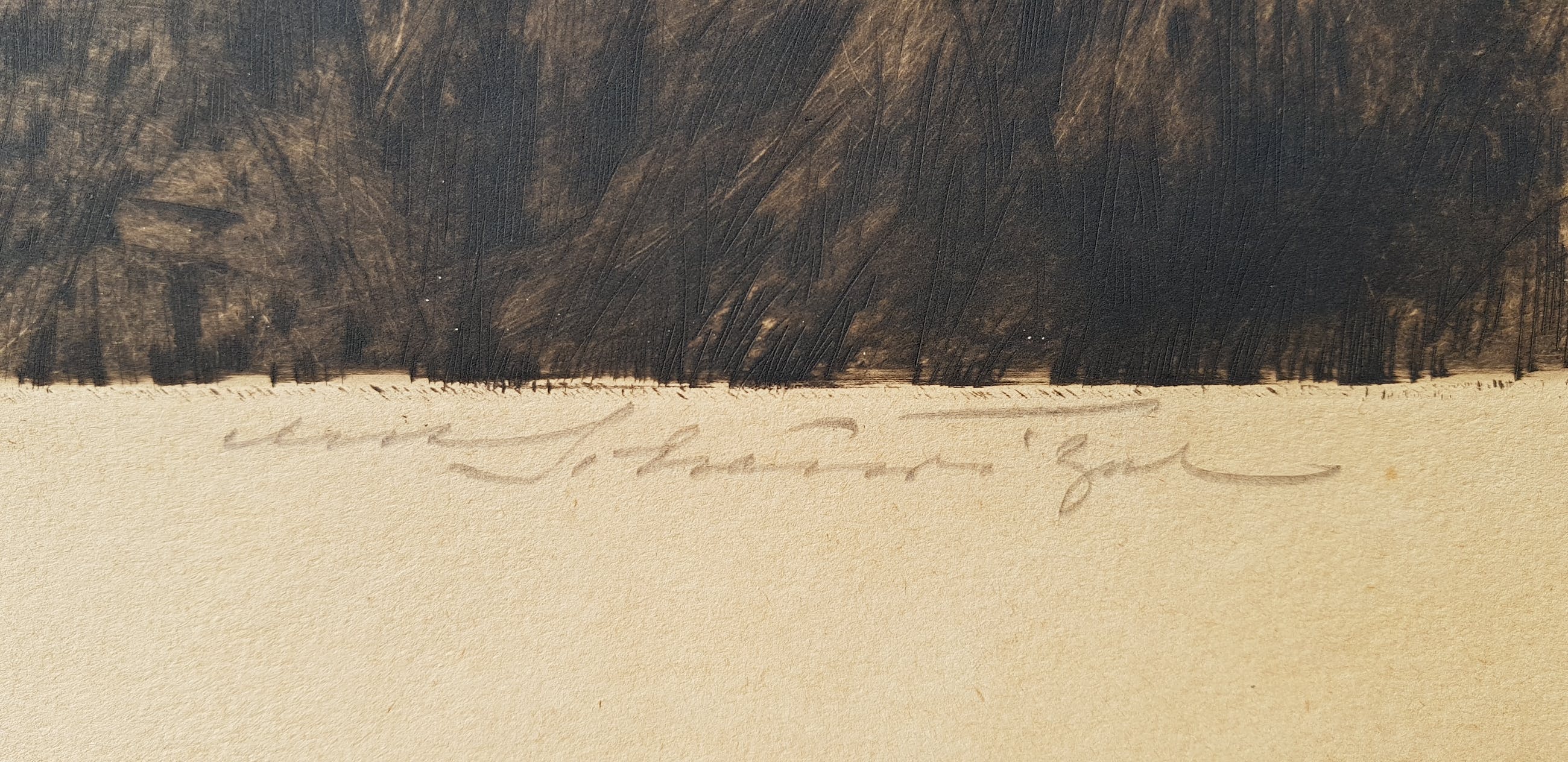 Grote ets voorzien van een signatuur waar ik niets van kan maken Zonder titelLinksonder oplage 8/200Rechtsonder gesigneerd in potloodPapiermaat 63 x 83 cmBeeldmaat 50,50 x 70 cm