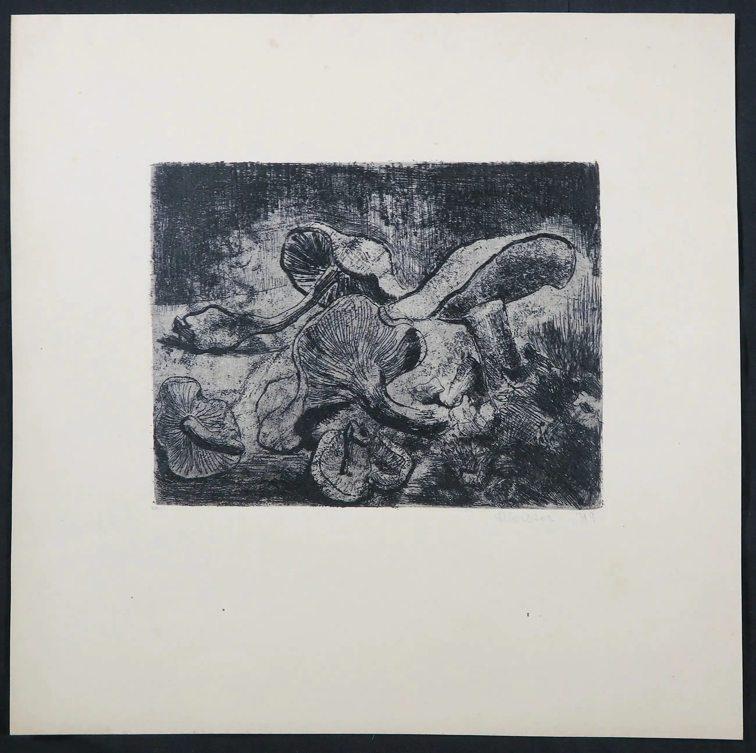 Onbekend - Ets, Paddenstoelen - Verkocht