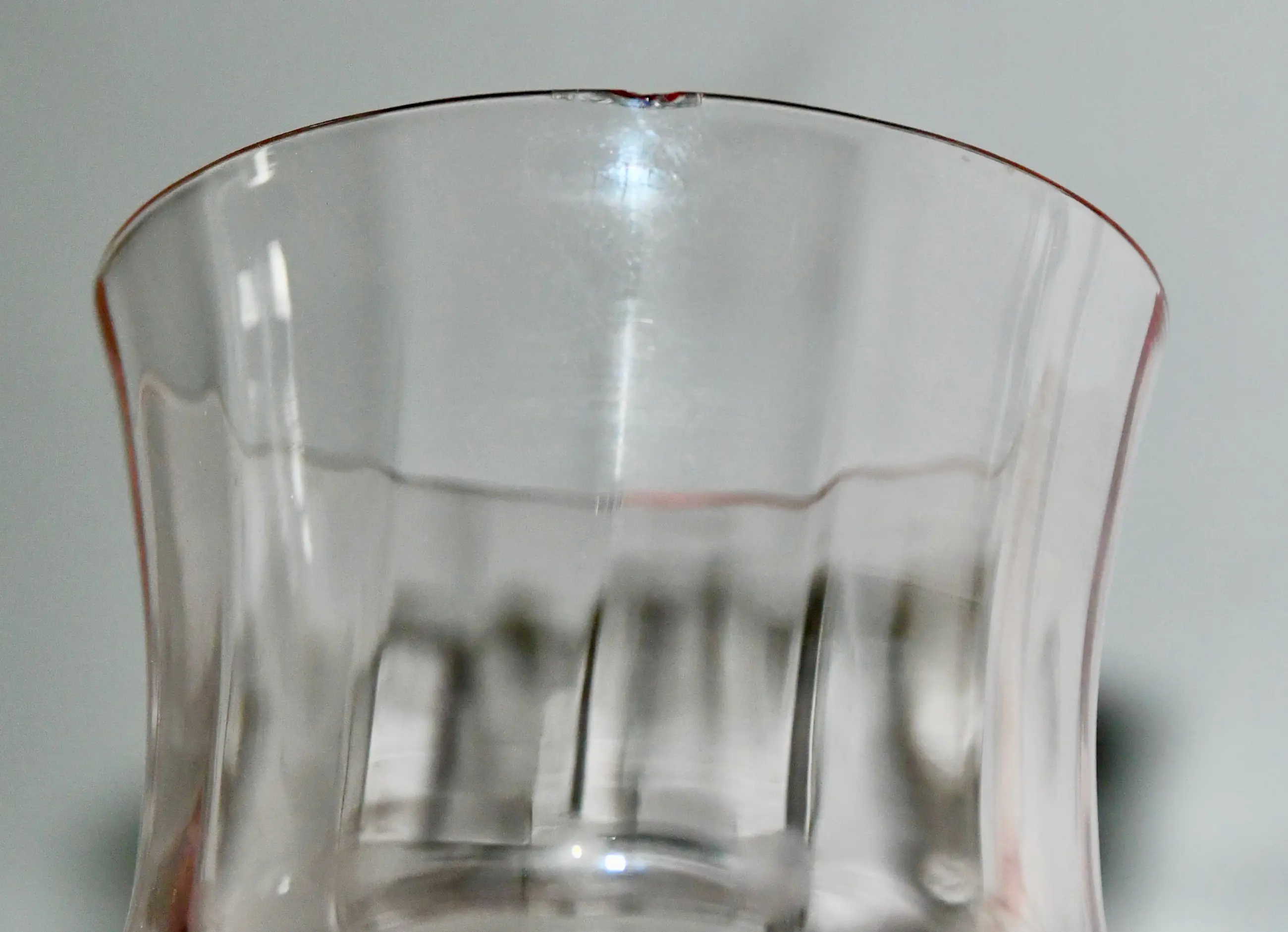De glazen verkeren in uitzonderlijke staat zonder chipjes, scheurtjes of slijtplekken ondanks hun leeftijd, op één glas na dat een chipje heeft op de bovenrand (zie foto's)