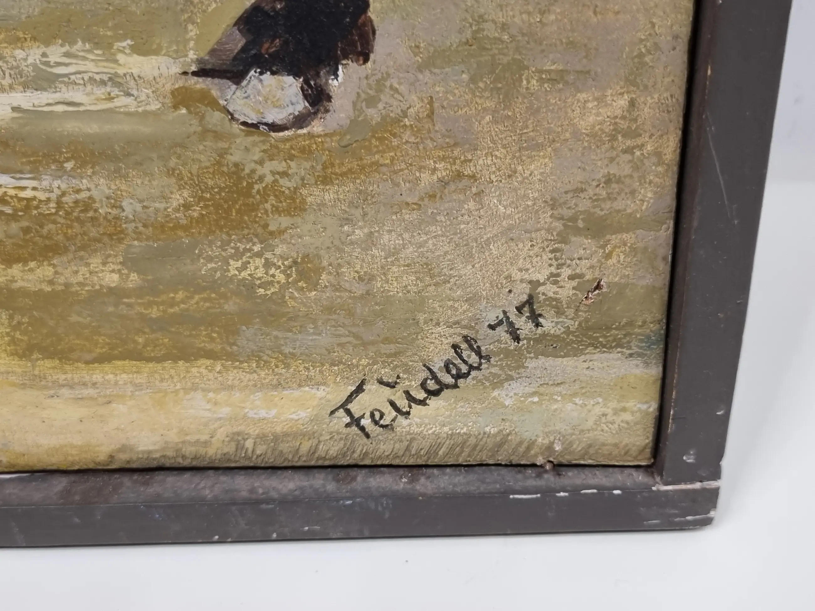 Gesigneerd r.o. Feùdell '77 Olieverf op paneel
