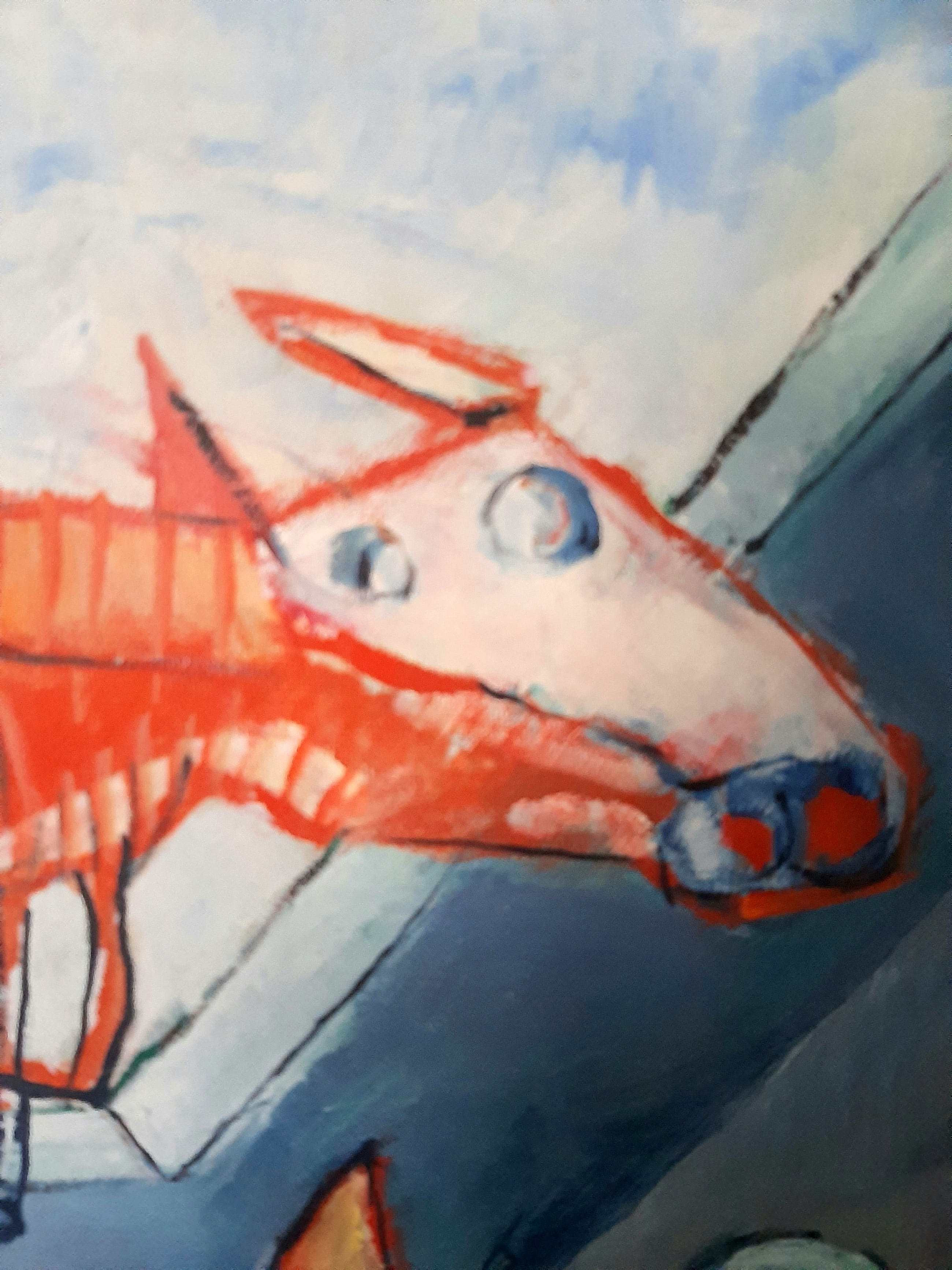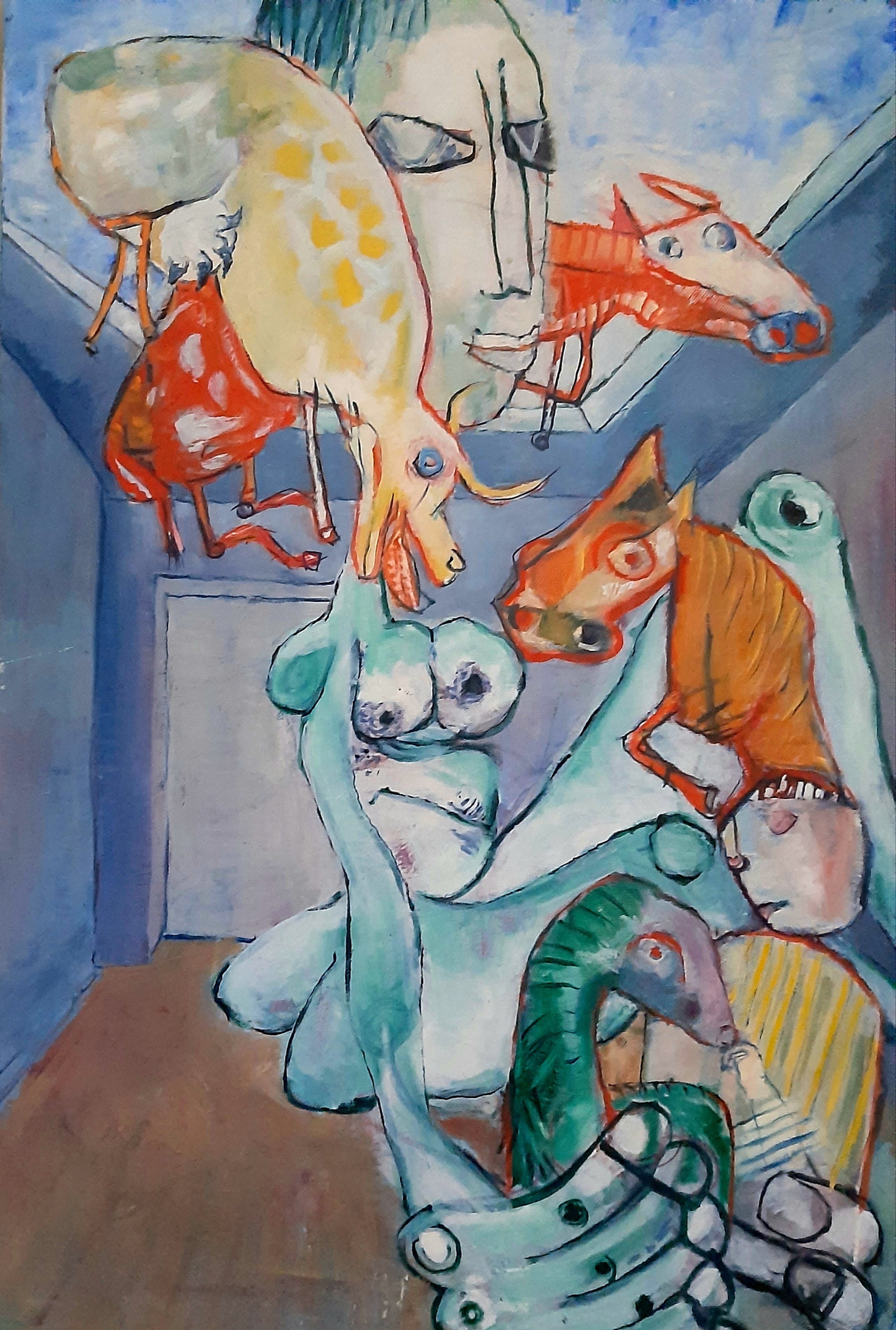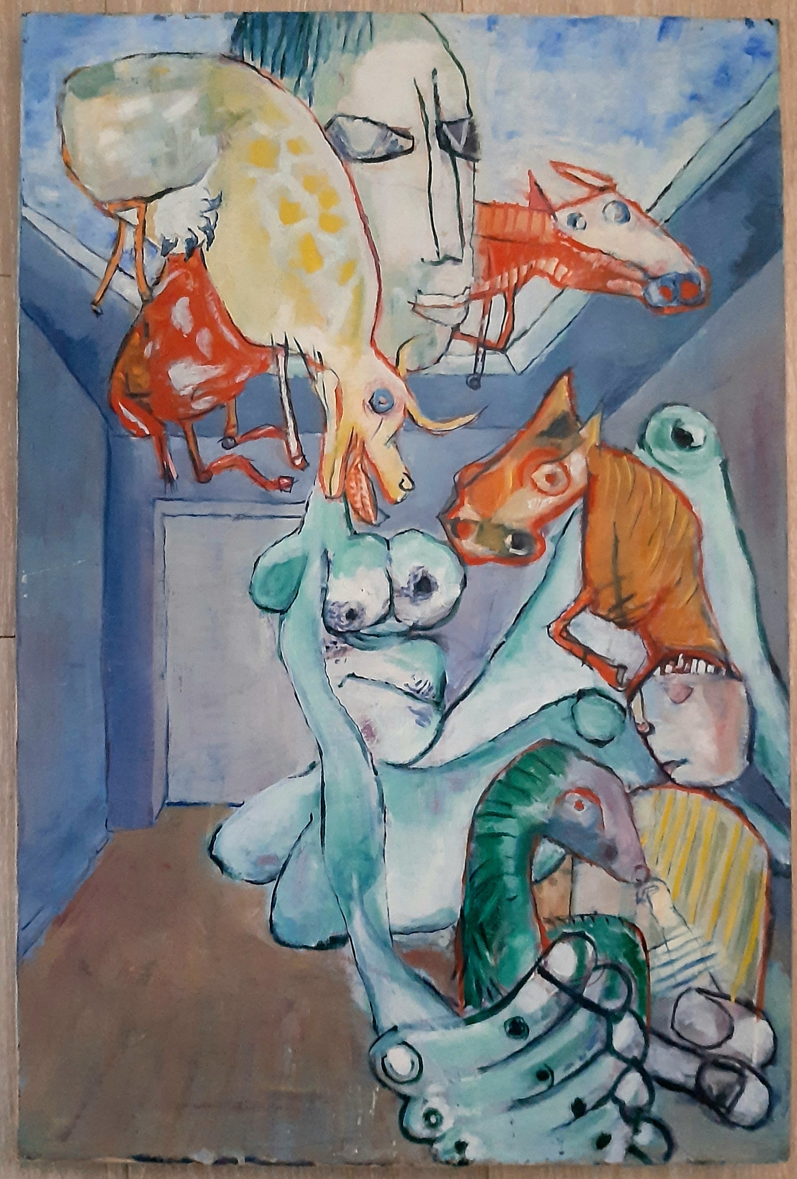 Abstract schilderij,gekocht in Deutsland antiek winkel,jaren 1990.