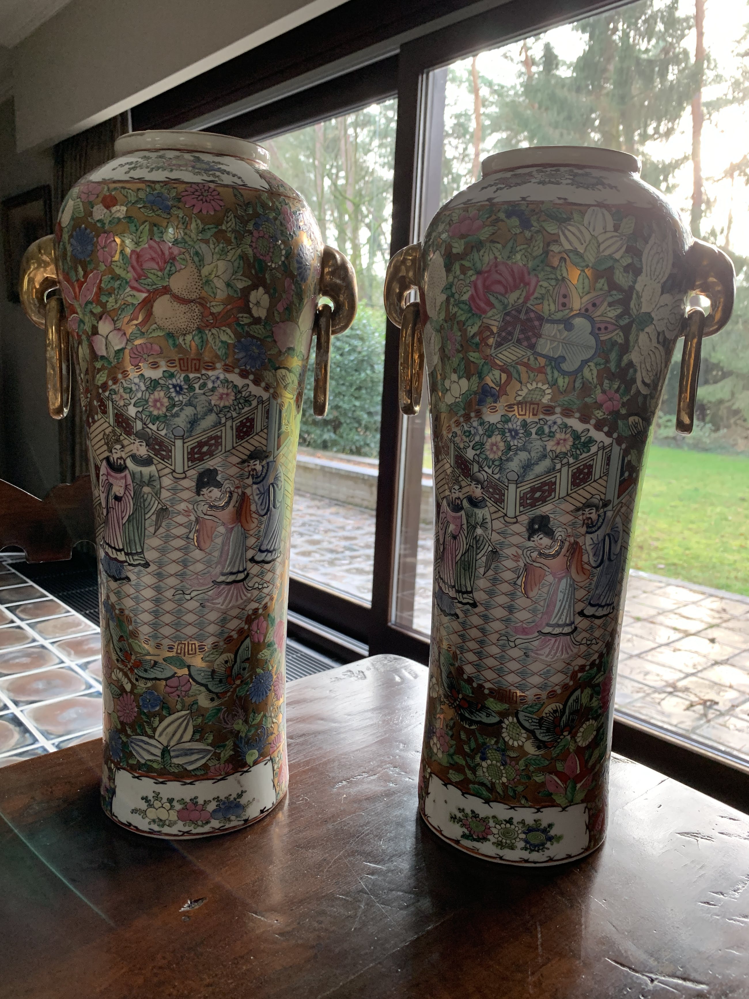 Famille Rose Kantonese handgeschilderde set vazen Geisha 19e eeuws Chinees porselein