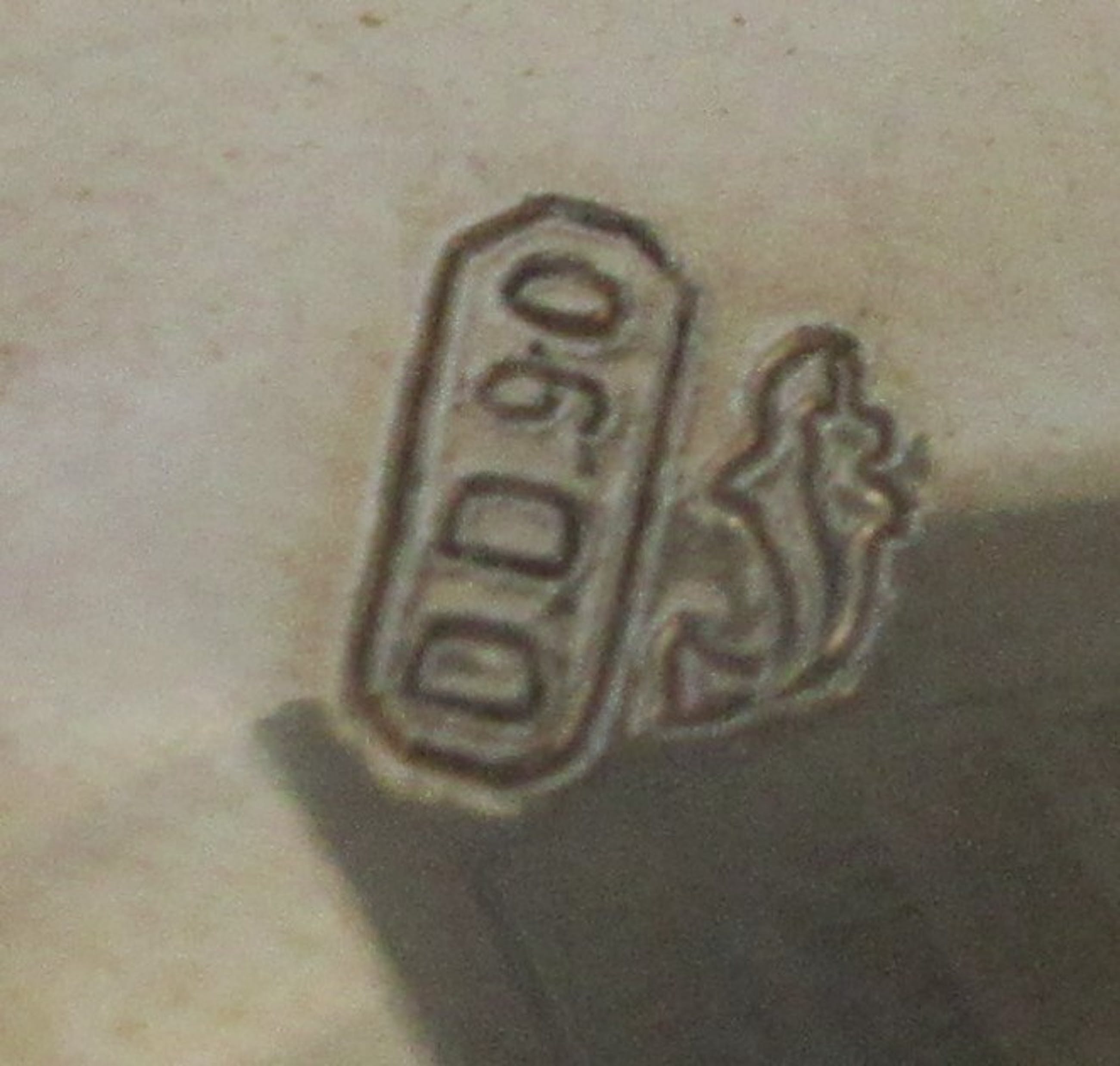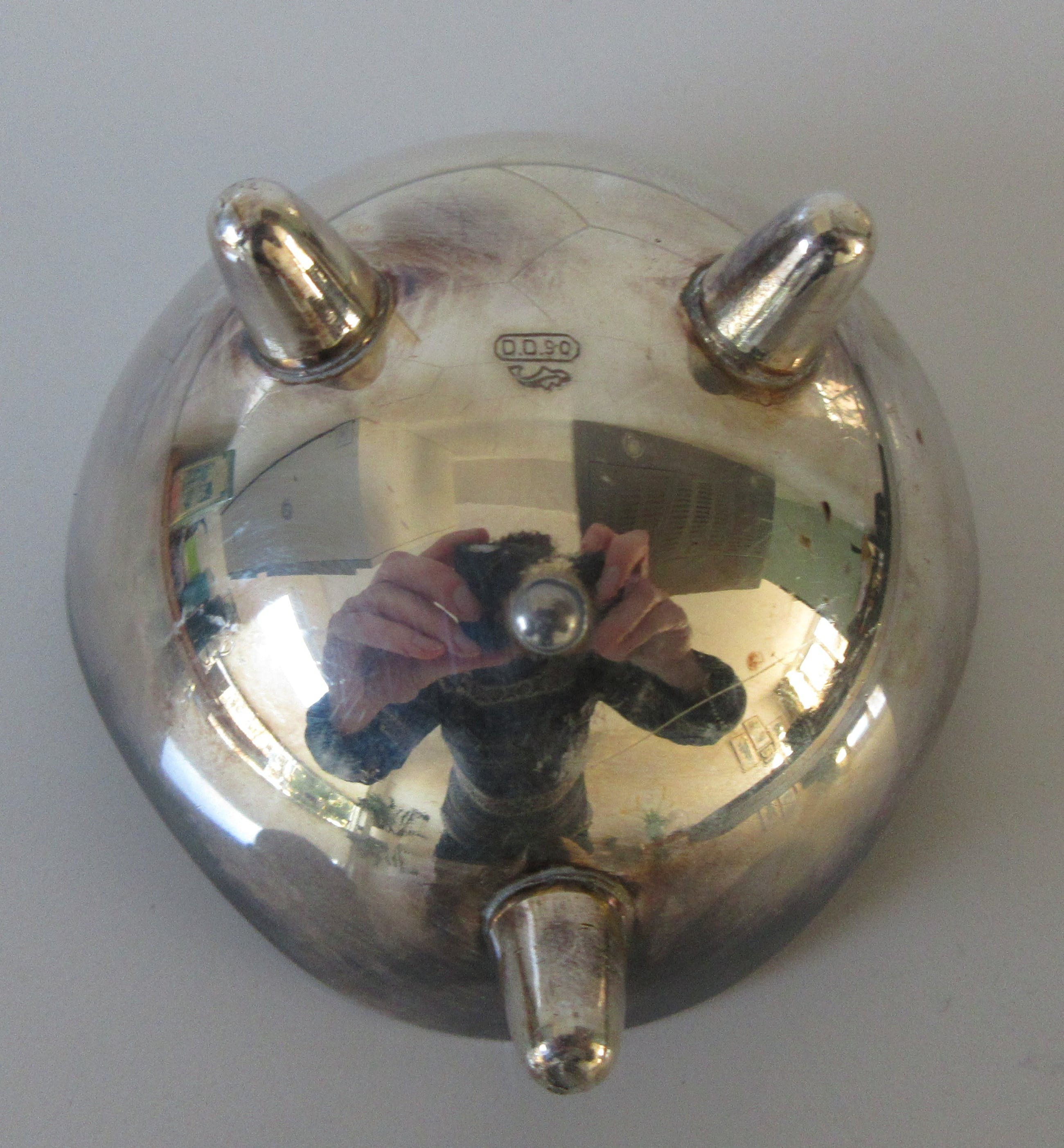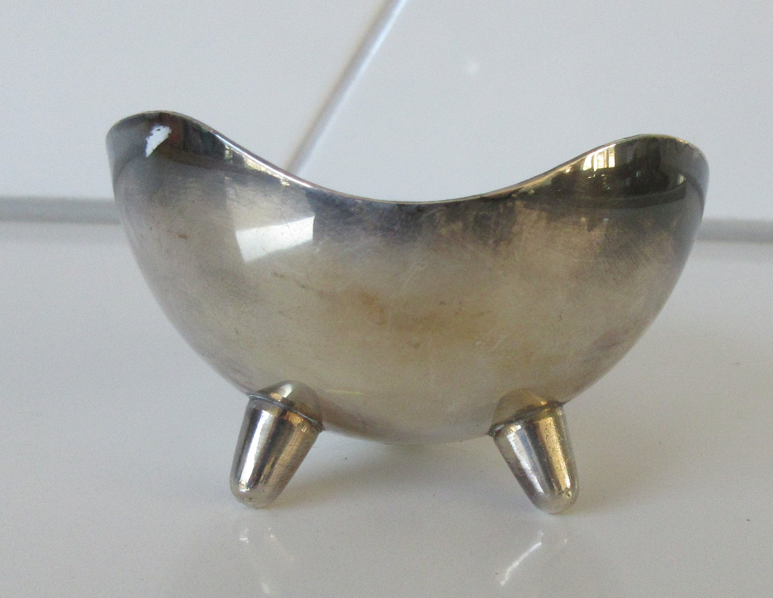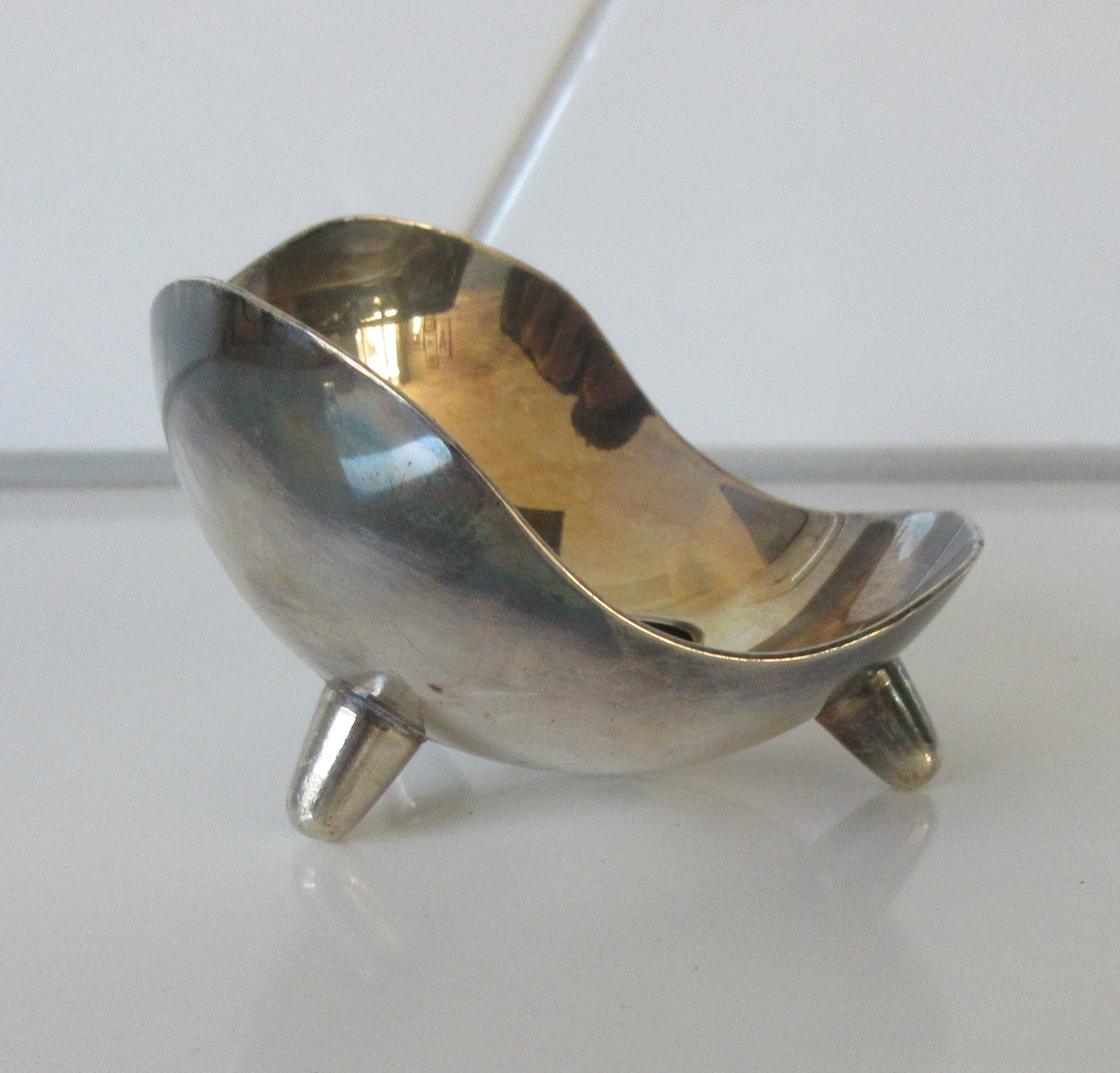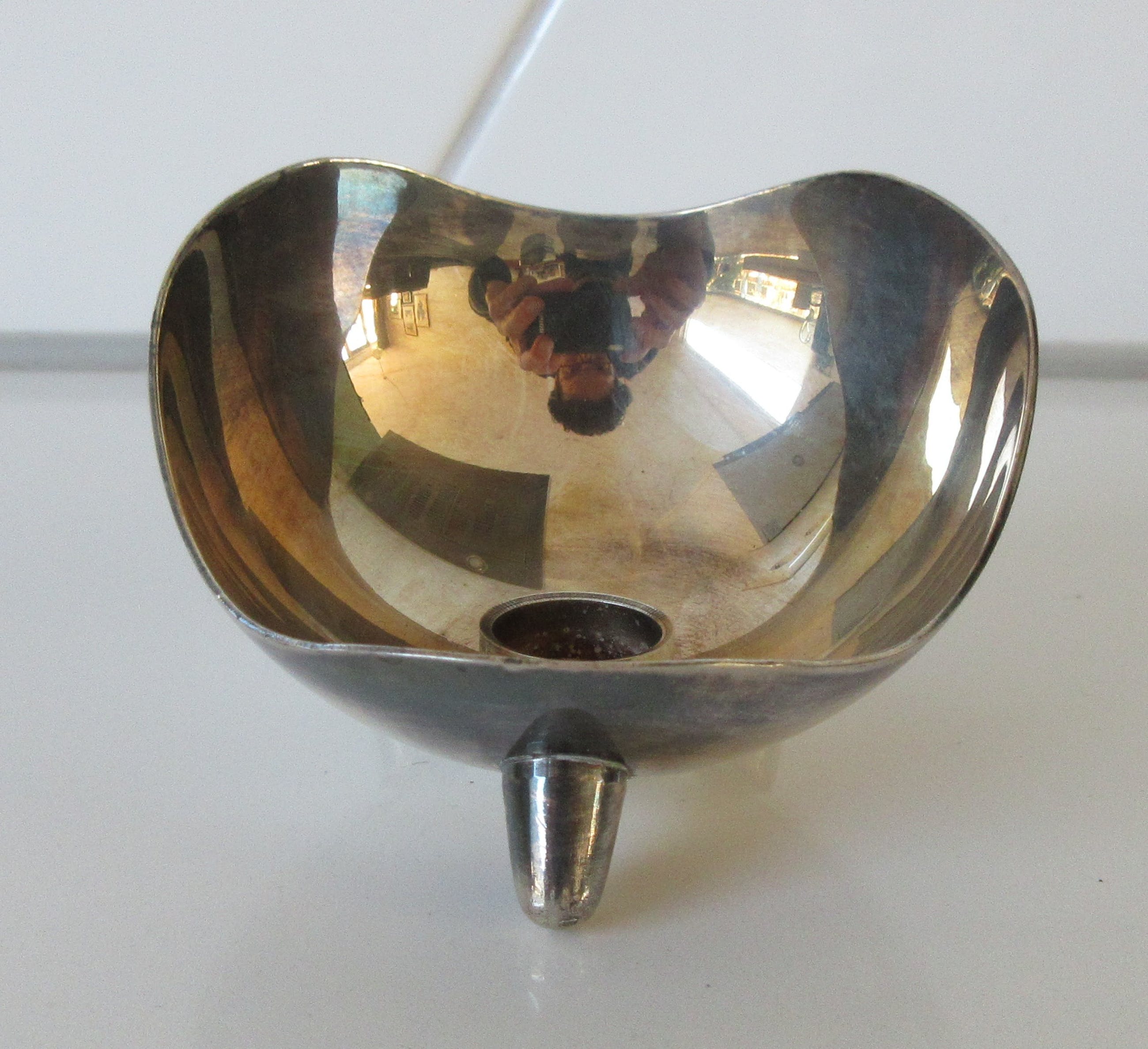 Fifties verzilverde kaarsenhouder op voetjes, uitvoering Nederland. Gemerkt met Dolfijnmerk en DD90.