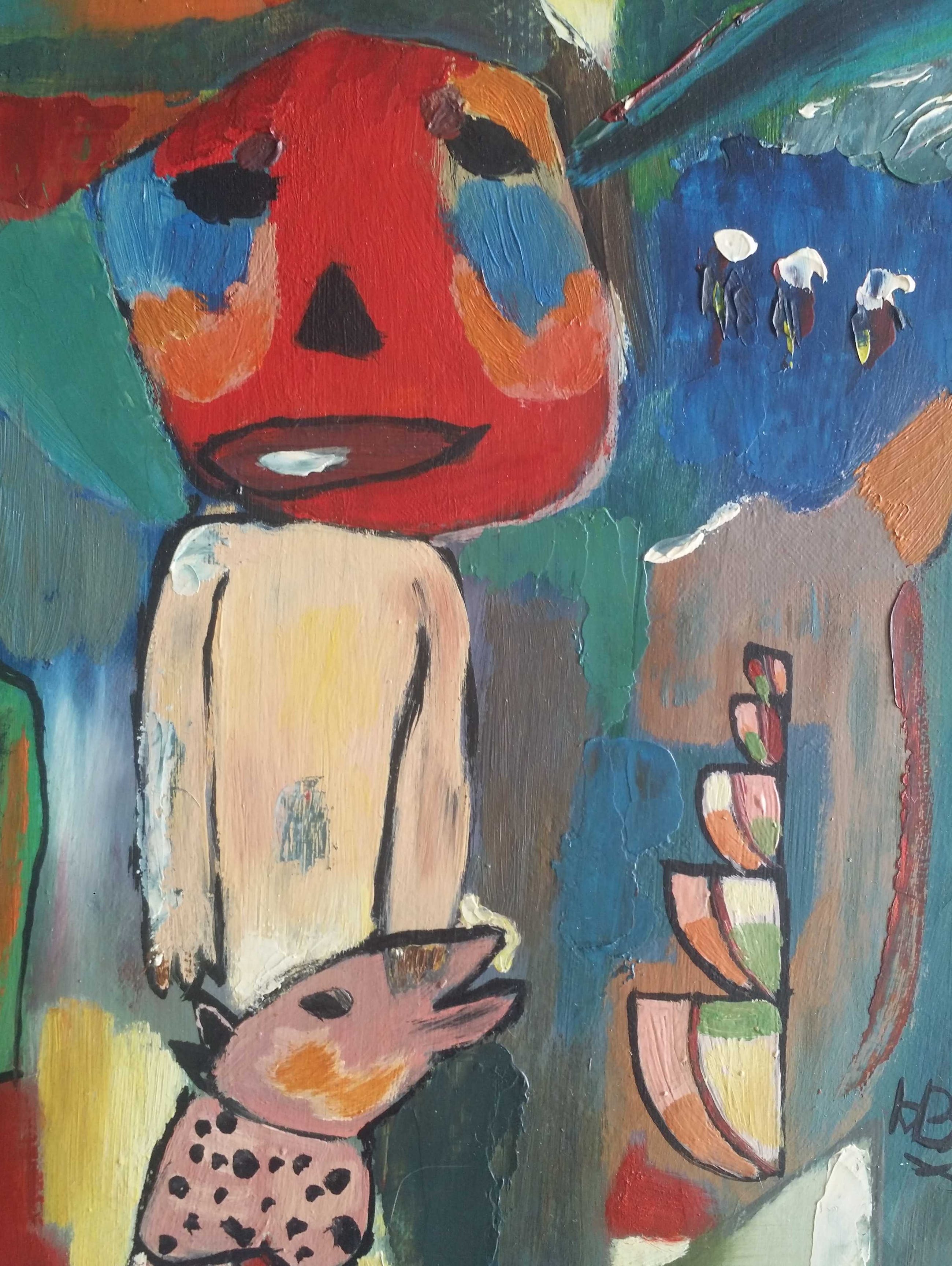 Onbekend - Figuur en hond in Cobra stijl. - Verkocht