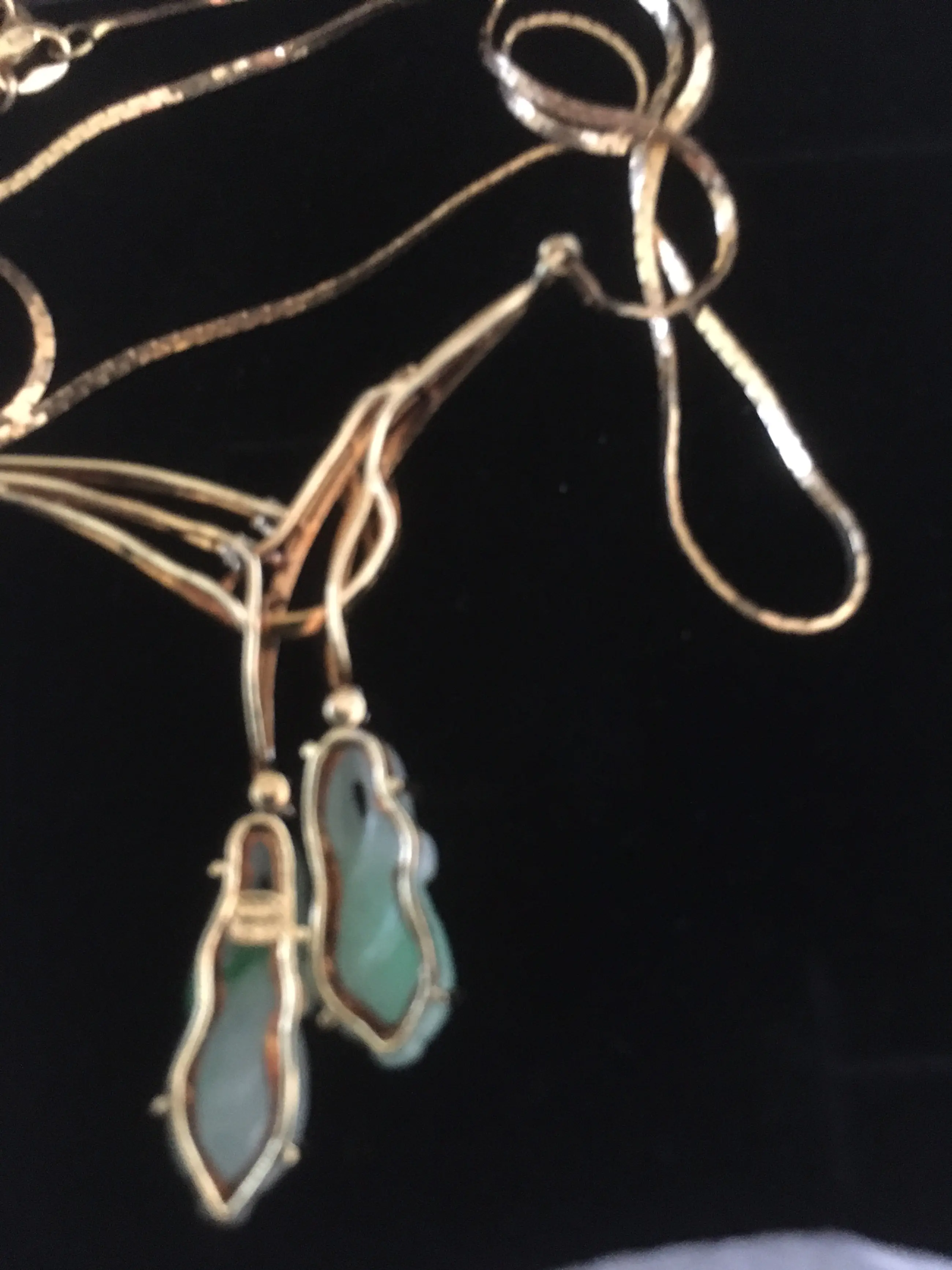 Fijn en sierlijk opengewerkt 14 Krt gouden halssieraad met diamant en jade gekocht op veiling met nummers 467564 / 35 EN