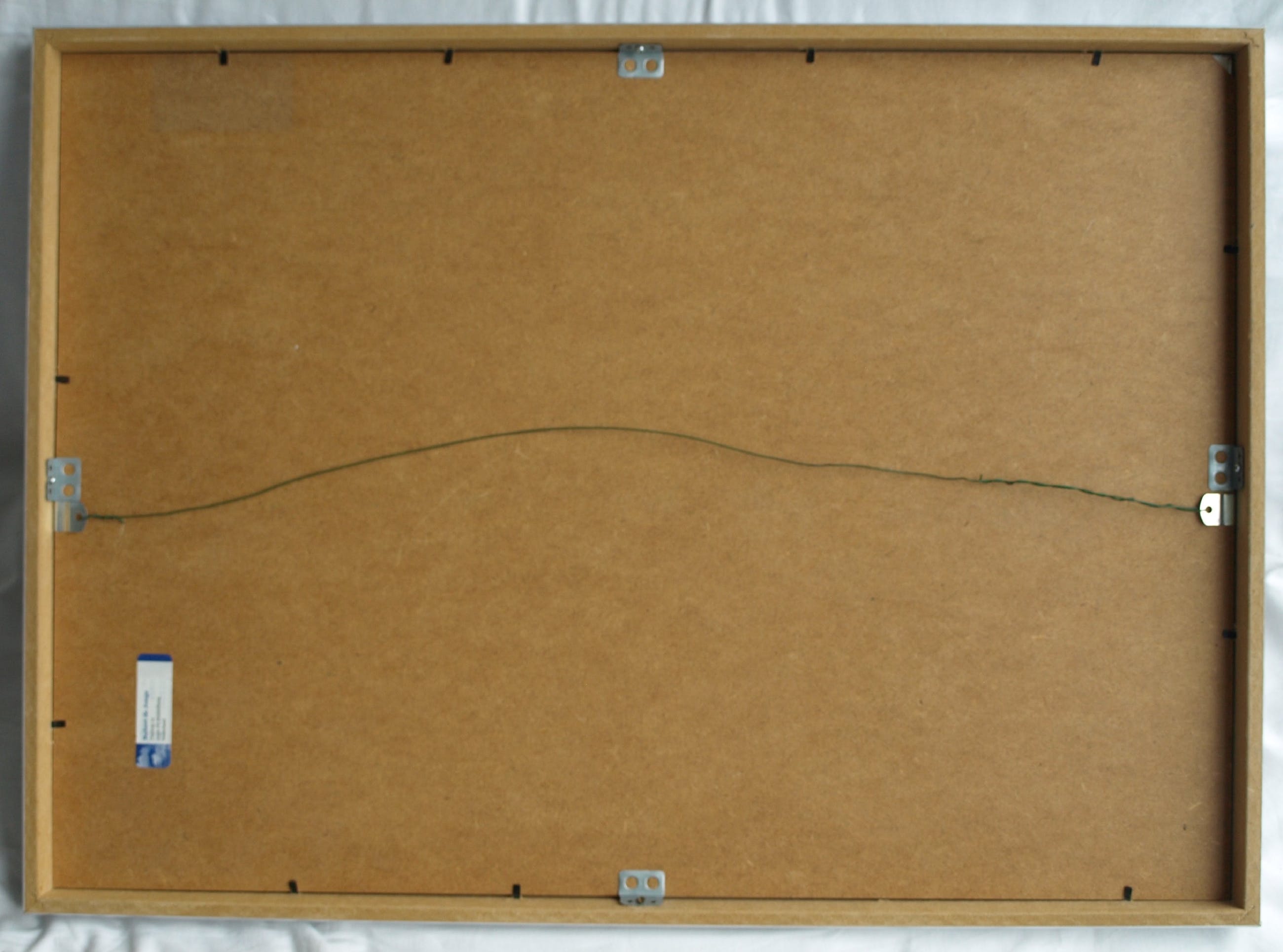 -Afmetingen: Lijst, 52,5 x 72,5 x 3,5 cm. Blad, 43,5 x 60,5 cm. Beeld, 39 x 49