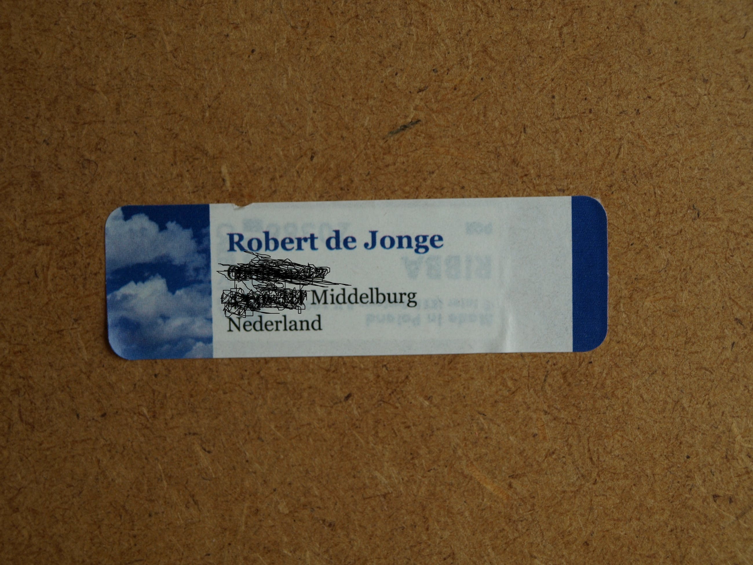 -Met adres-sticker (van de fotograaf?) op de achterkant