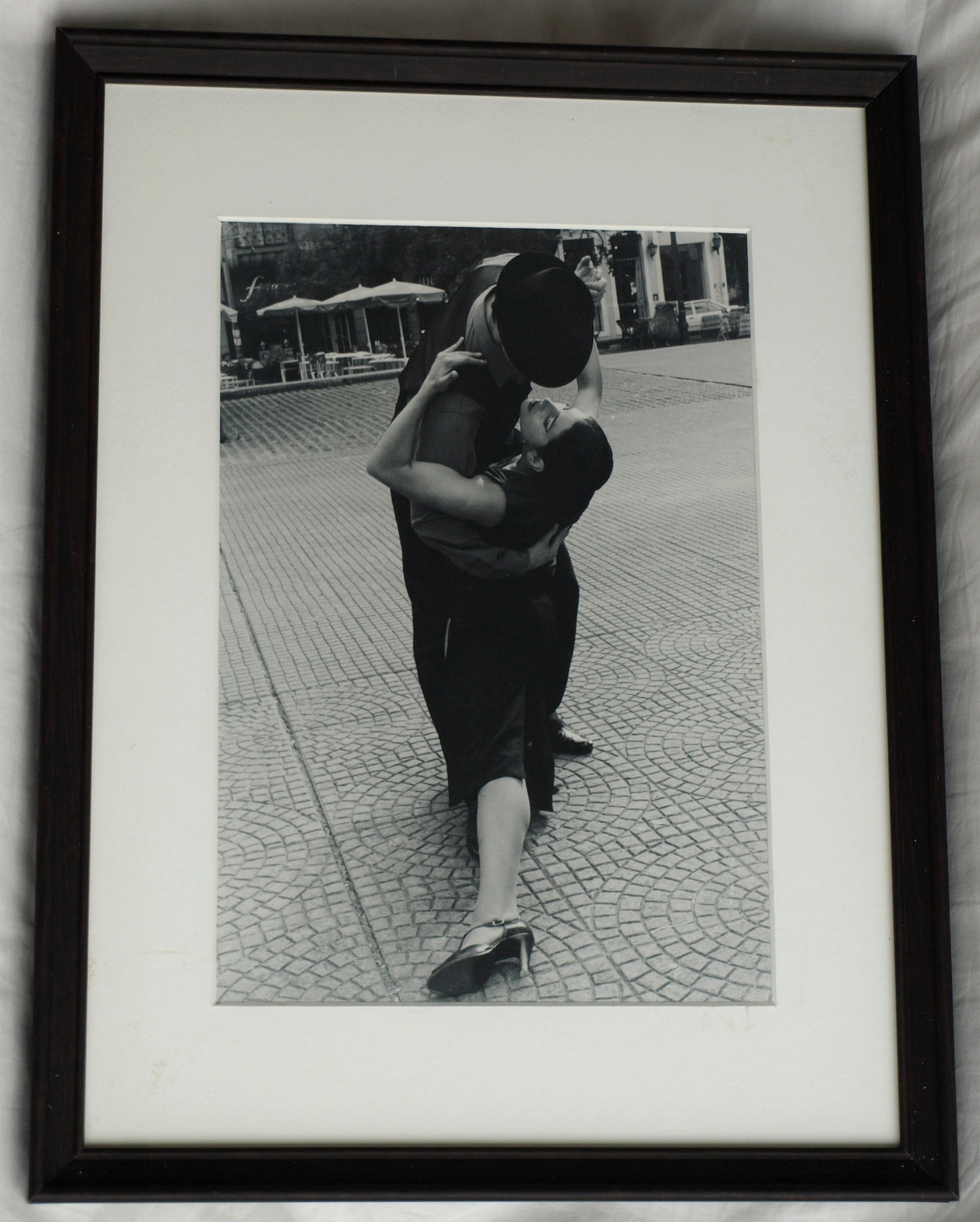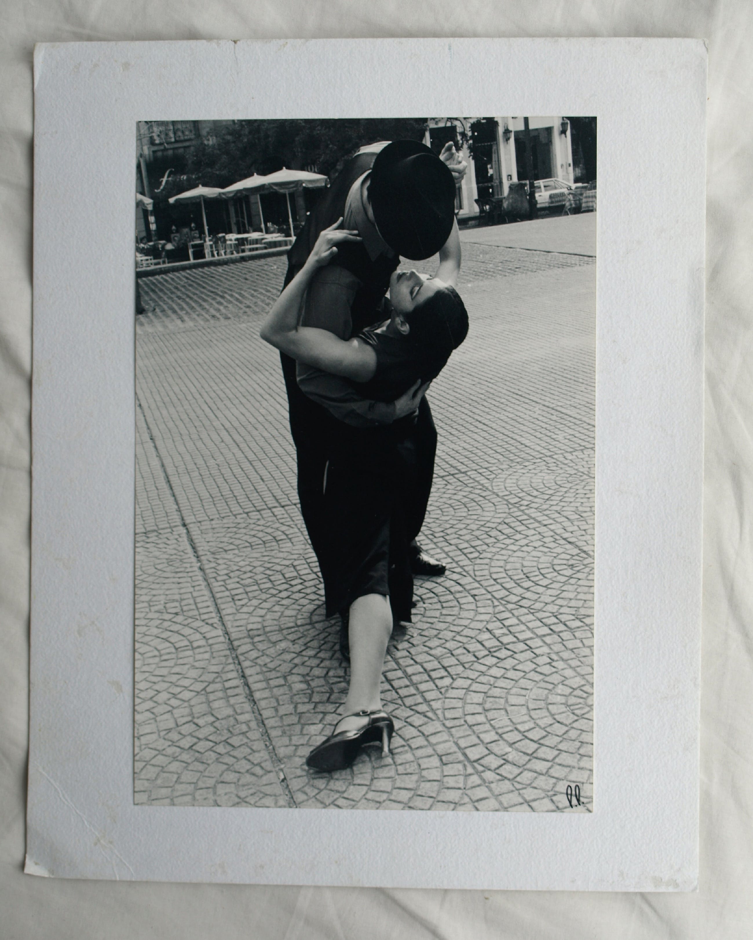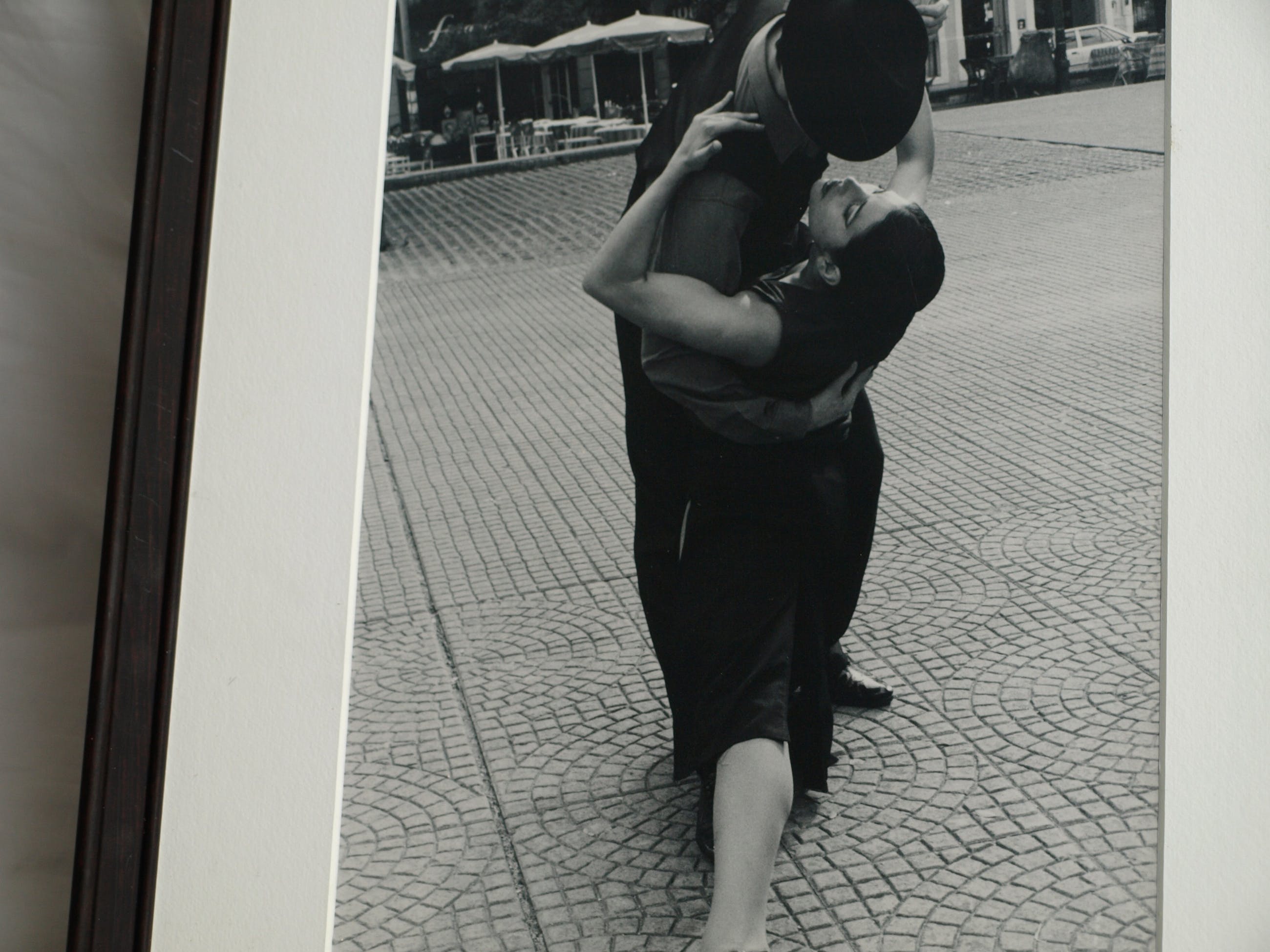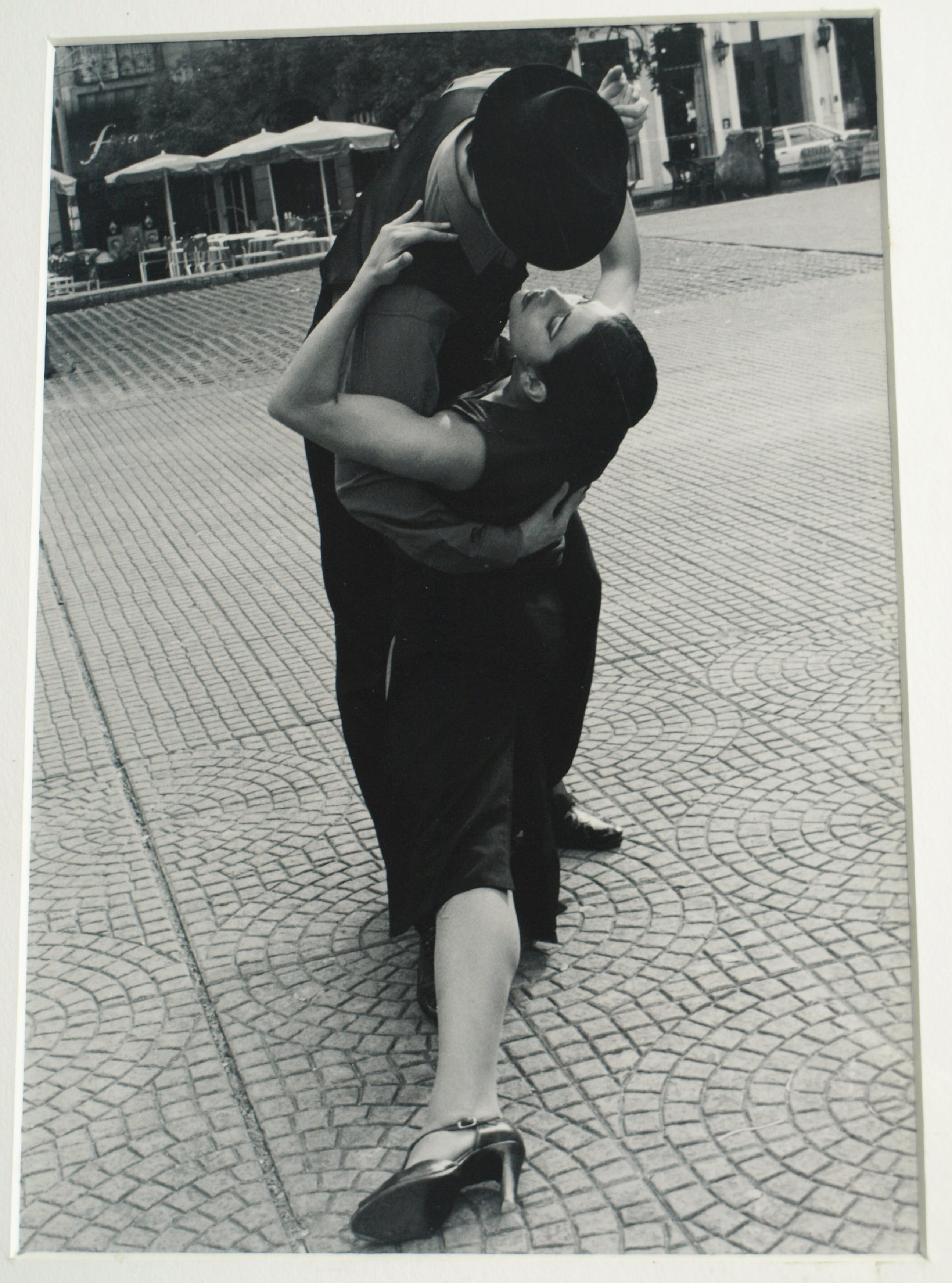 Een foto van een ons onbekende fotograaf, met een afbeelding van 2 Tango-dansende mensen op een plein in Buenos Aires (Argentinië). Op de achterkant staat geschreven “Tango, Buenos Aires”.