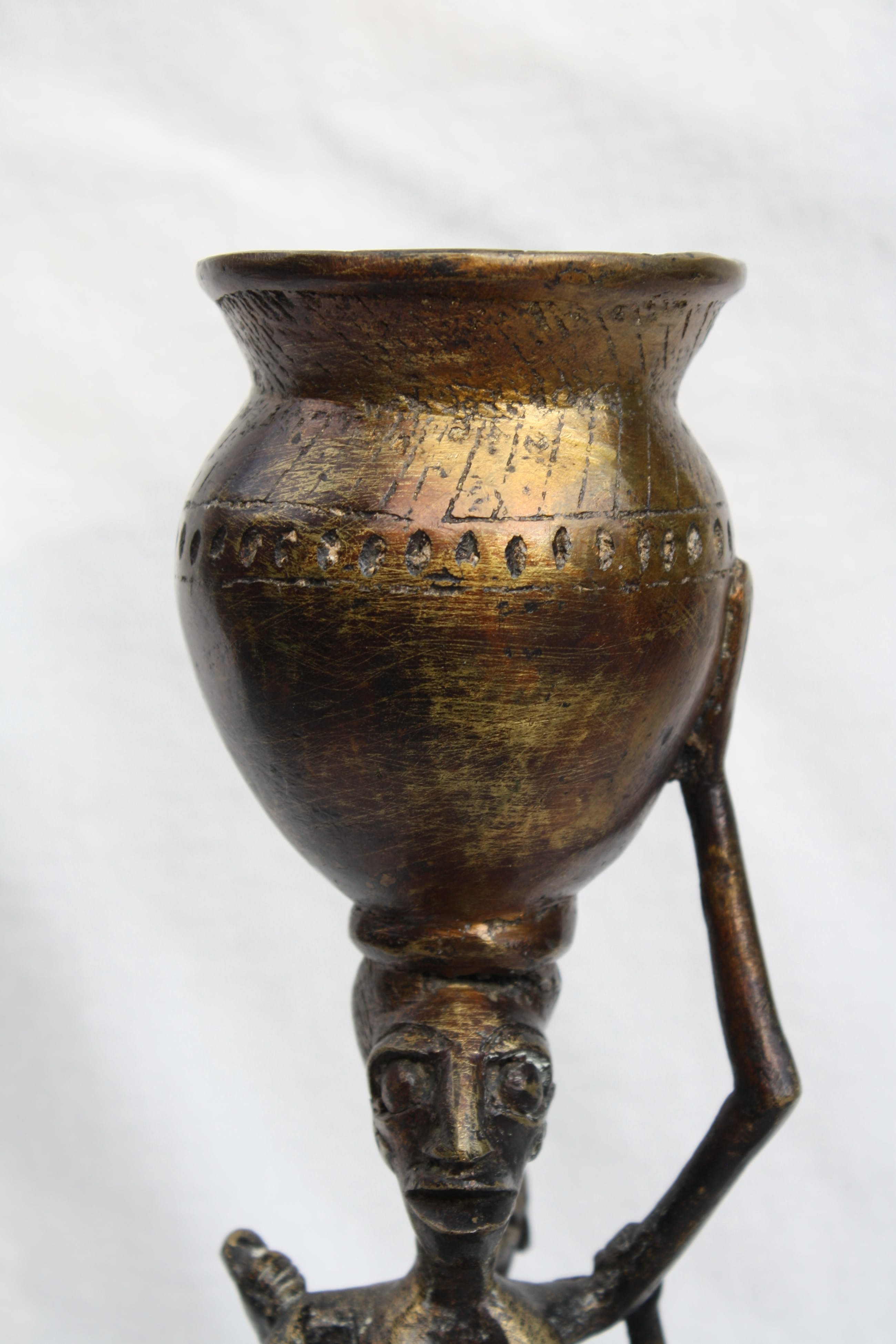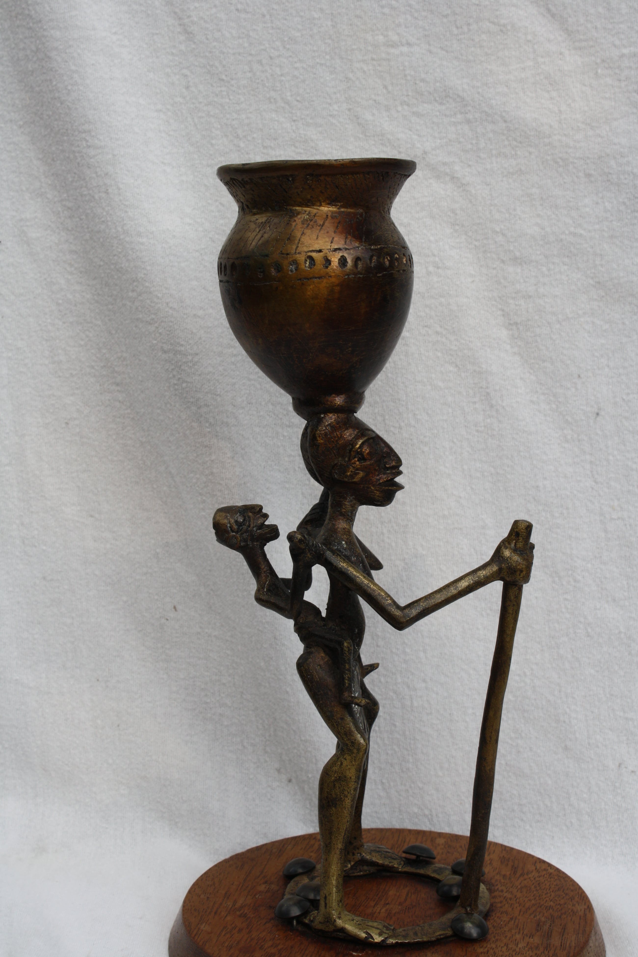 Fraaie Bronzen Sculptuur van een Afrikaanse Vrouw met Kind. Naam van de stam is mij niet bekend. Mooie Patina, kijk goed naar de fotos waar U alle Detials kunt waarnemen. Komt uit mijn verzameling. Afmeting Hoog 3100mm en Breed 1000mm. Het gewicht is 1300 Gram. Wordt Aangetekend opgestuurd met post.nl met trake en trace. Uiteraard Zeer goed verpakt.