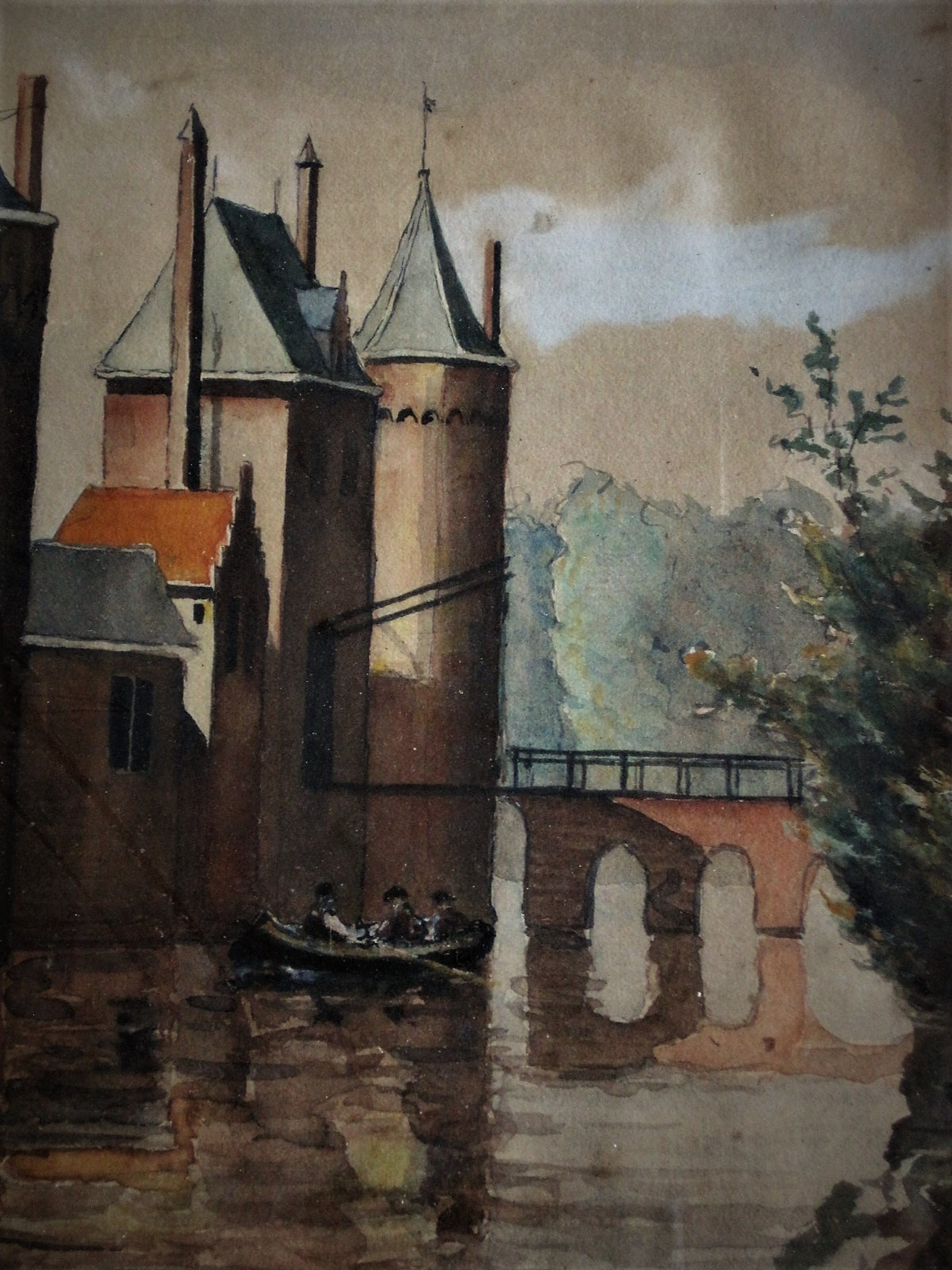 Uit een goede Amsterdamse inboedel komt dit, omstreeks 1850 geschilderde sterk realistische Aquarel "het Slot van Schagen". Linksonder voorzien van een handtekening.