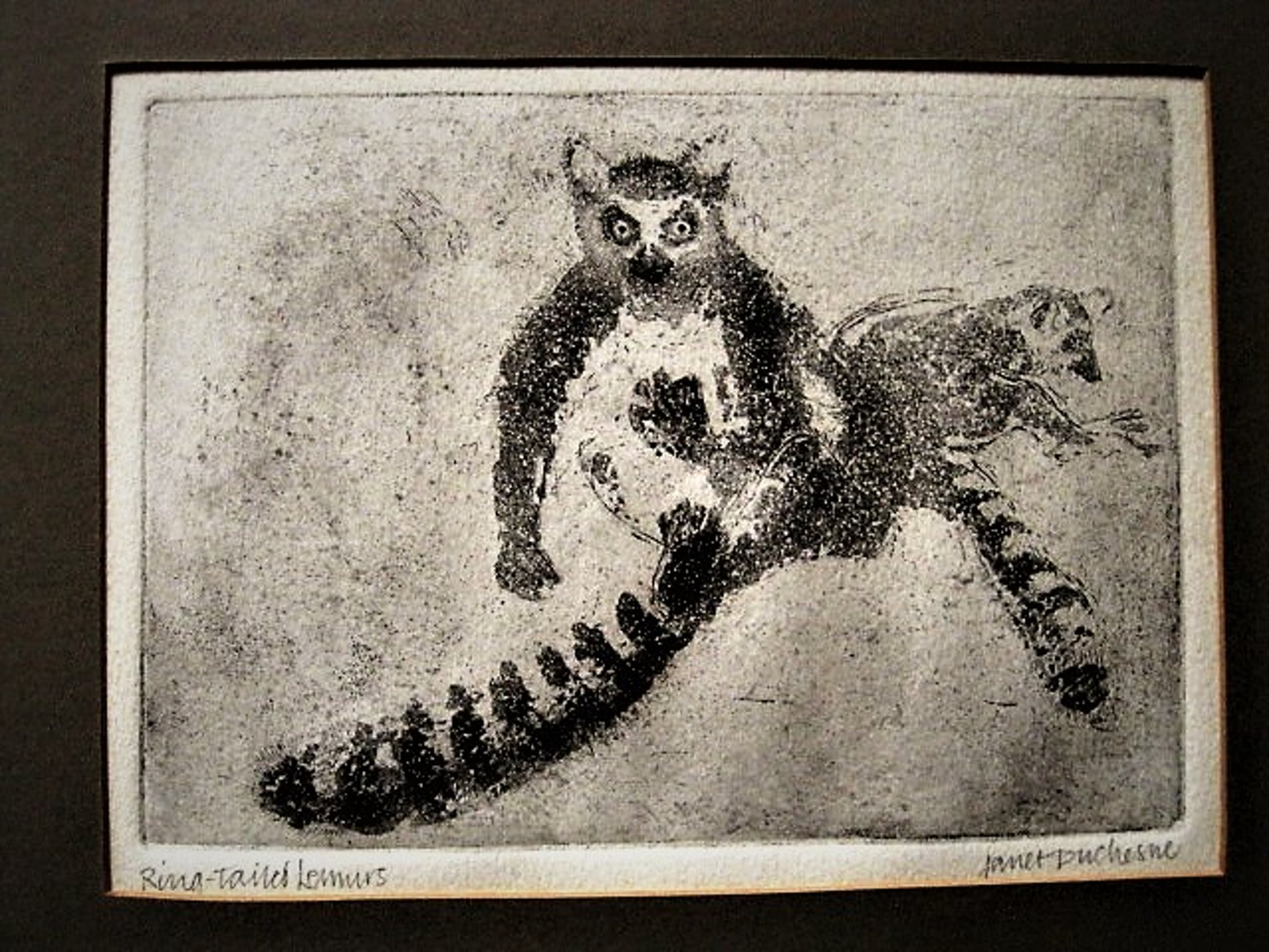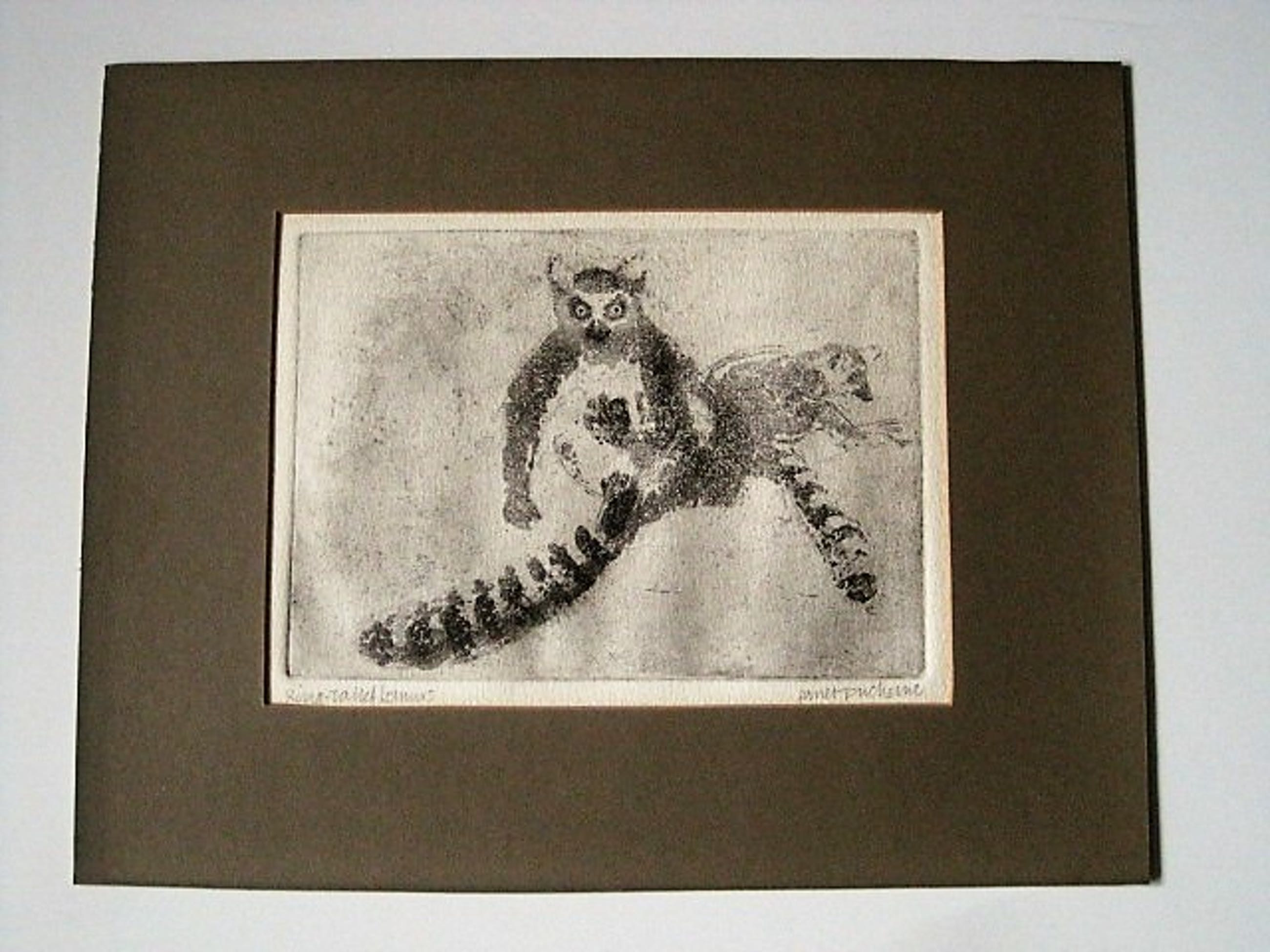 Onbekend - Fraaie droge naald Ets - ringstaart Maki - zeer kleine oplage (6) - gesigneerd - Verkocht
