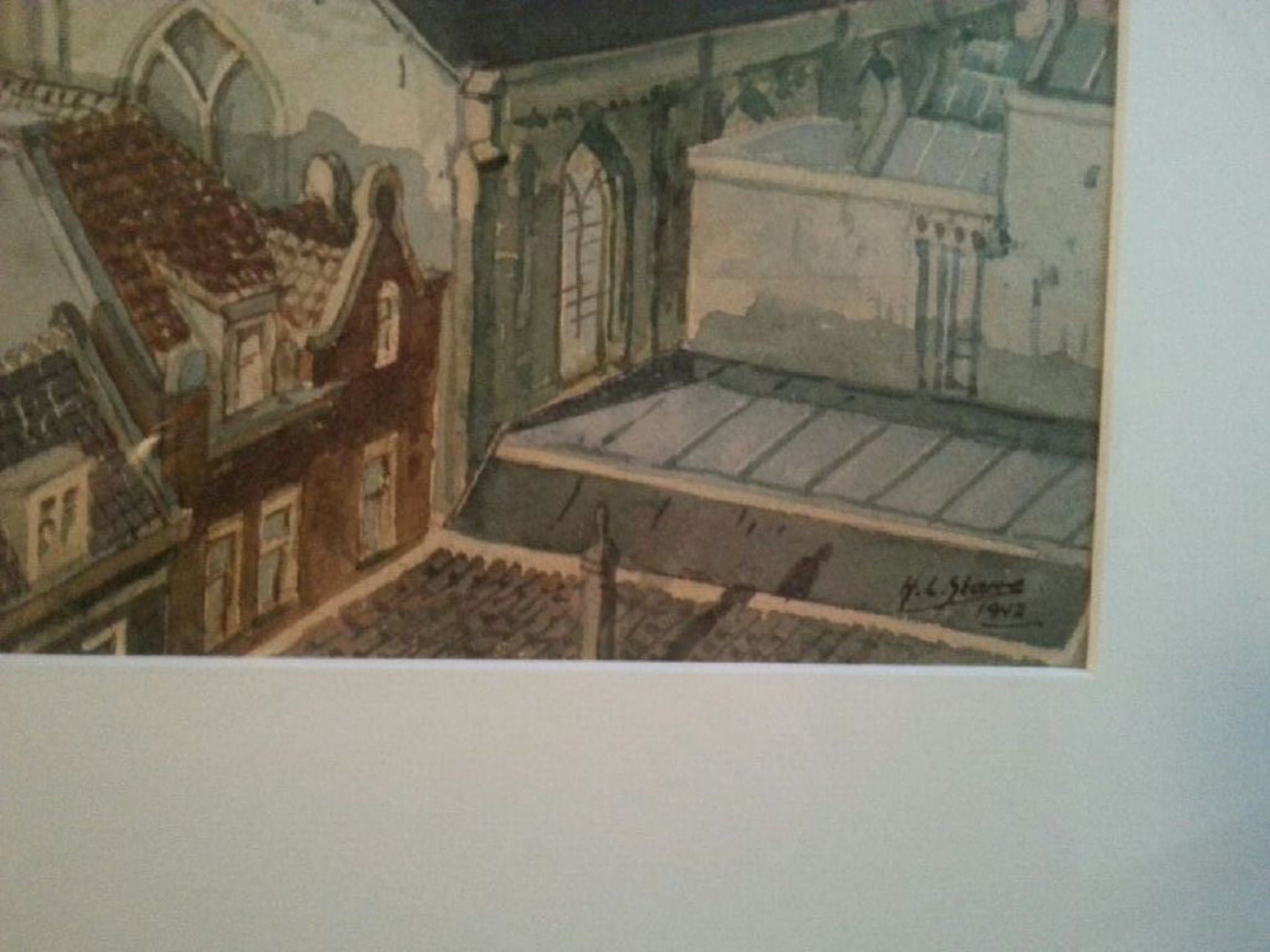 Fraaie handgesigneerde en ingekleurde ets op papier van de voor mij onbekende kunstenaar H L Starre, die deze in 1940, voor bombardenment heeft gemaakt. Het werk is gelijst en achter glas en in zeer goede staat.