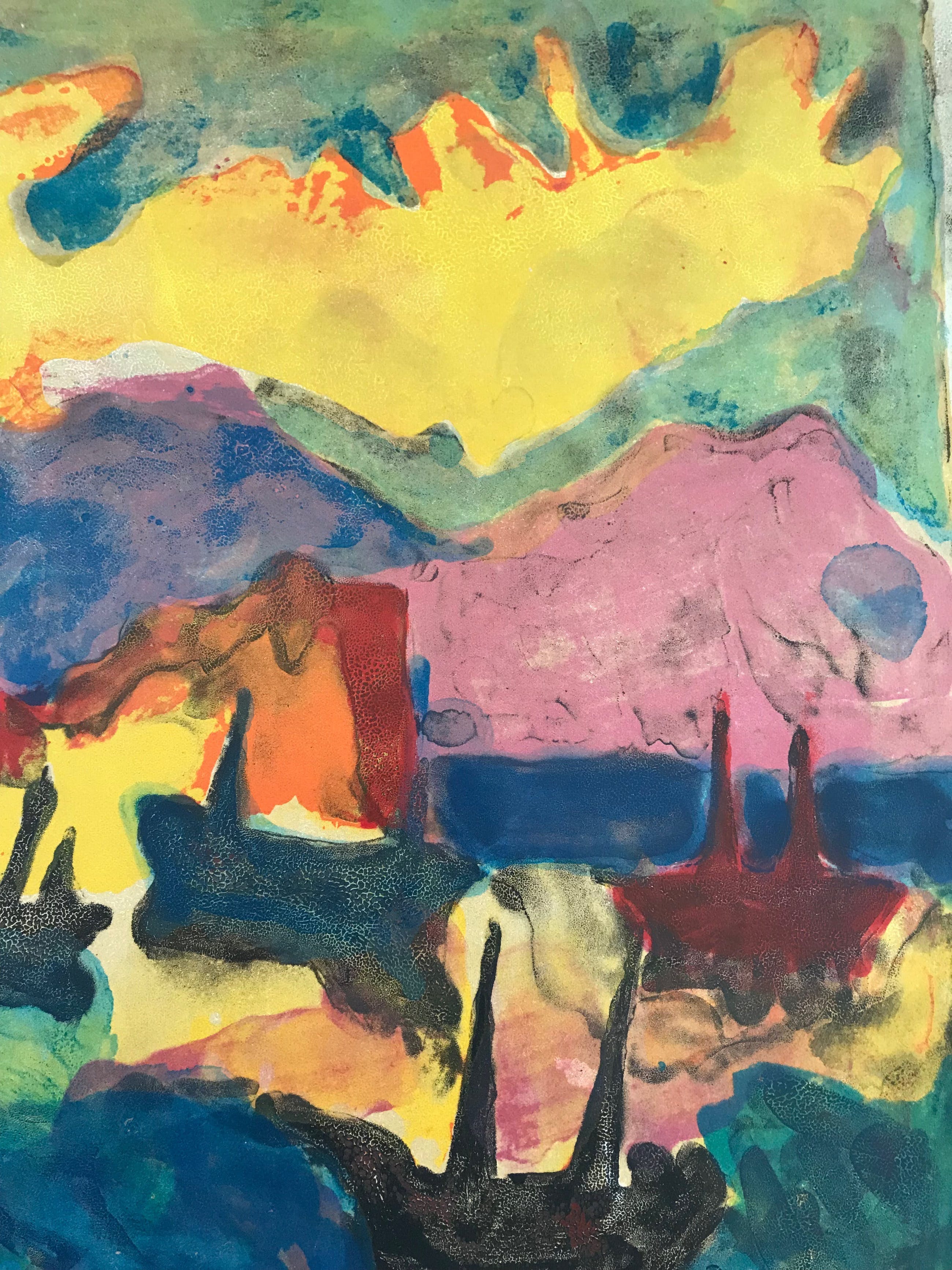 Mooie zeefdruk van een voor mij onbekend (onleesbaar) kunstenaar.