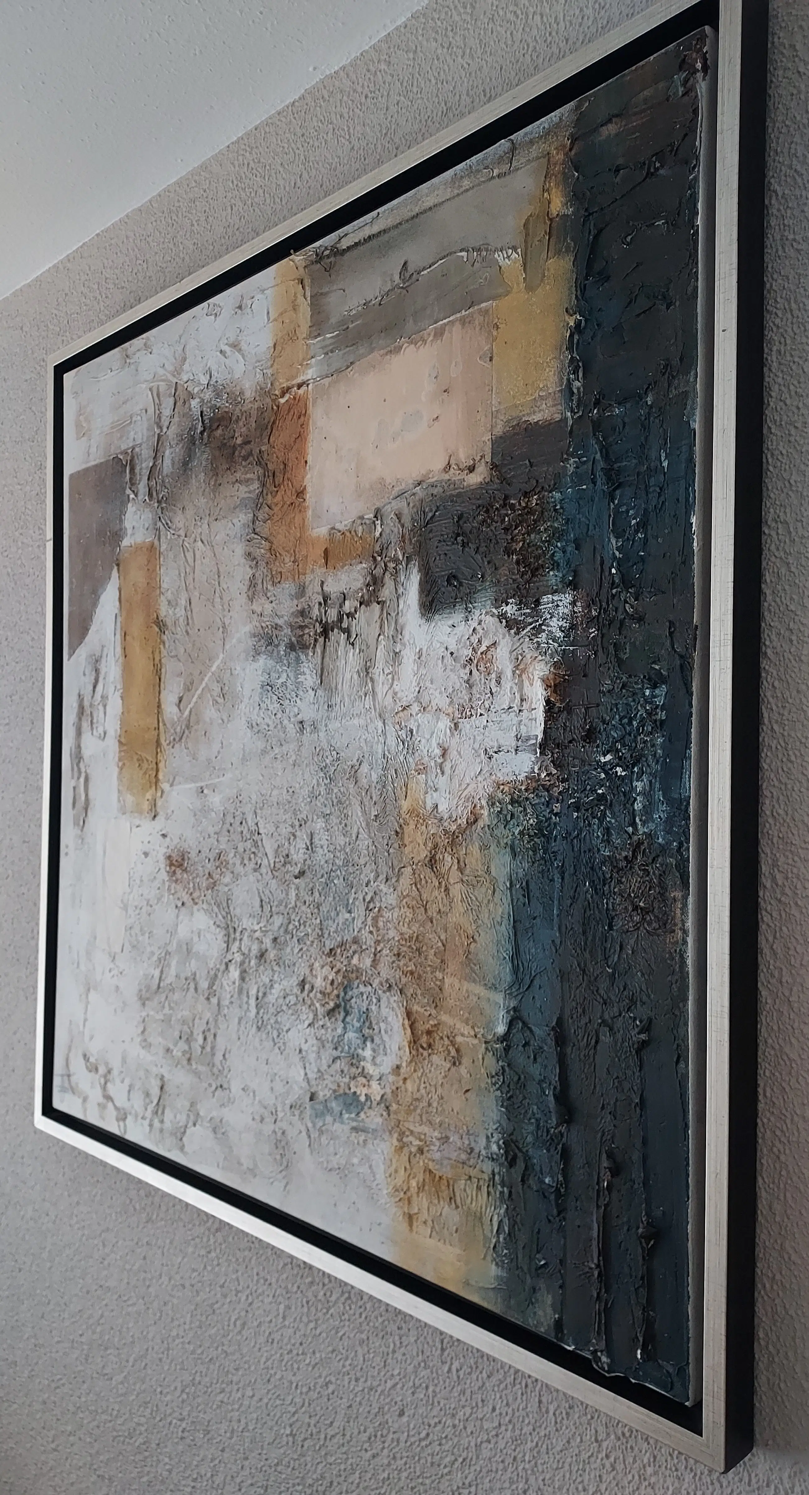 Origineel schilderij; mixed media op doek FTO zonder titel doekmaat 100 cm * 100 cm (In maart 2016 gekocht bij Galerie Scala te Culemborg, digitale factuur aanwezig).