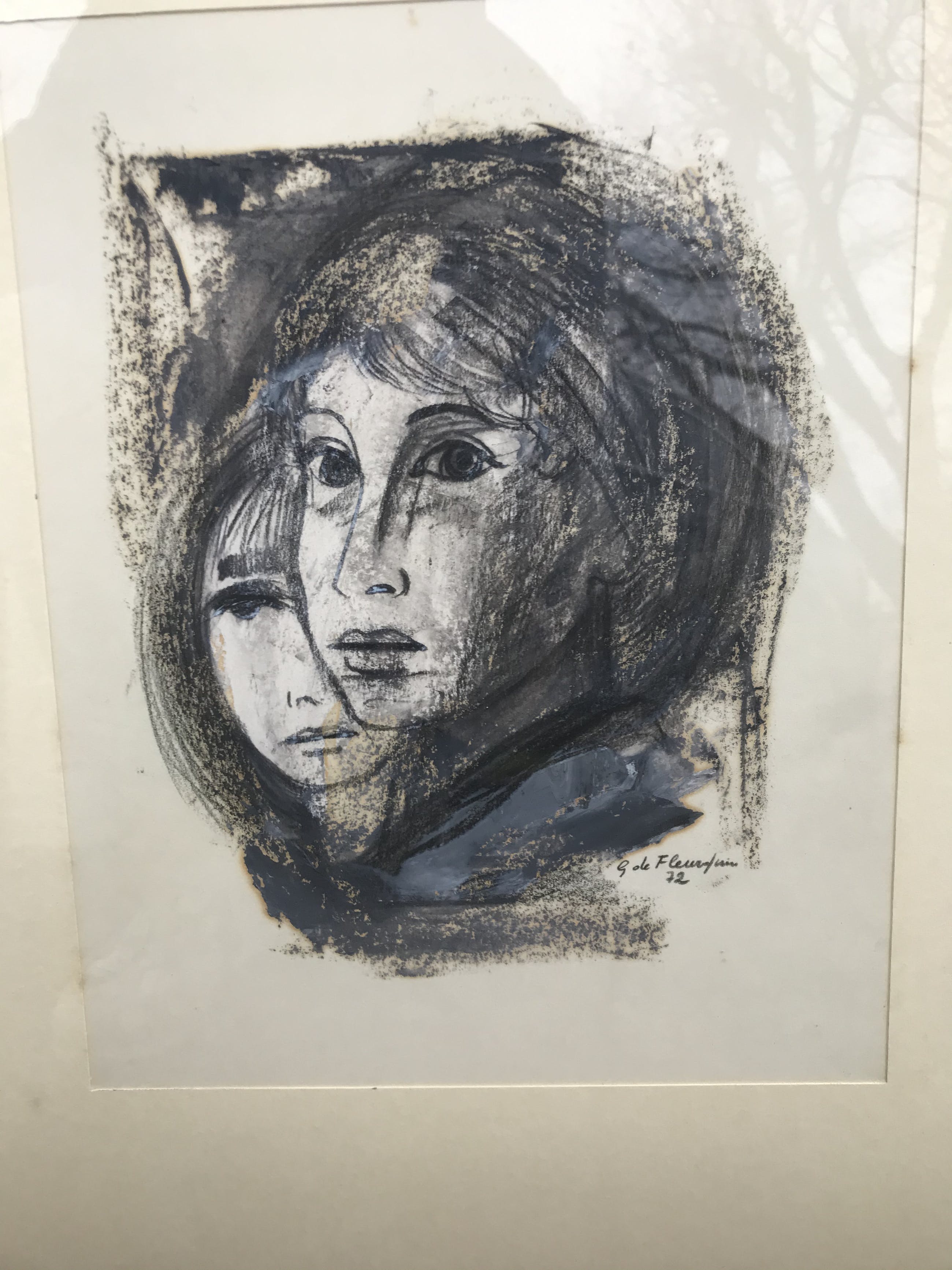 tekening, gesigneerd G. de Fleurquin, gedateerd 1972. Achter glas ingekaderd. Goede staat (paar kleine vlekjes aan de buitenkant). Afmetingen - Total 62 x 52 cm - Afbeelding 27,5 x 21,5 cm (tekening)