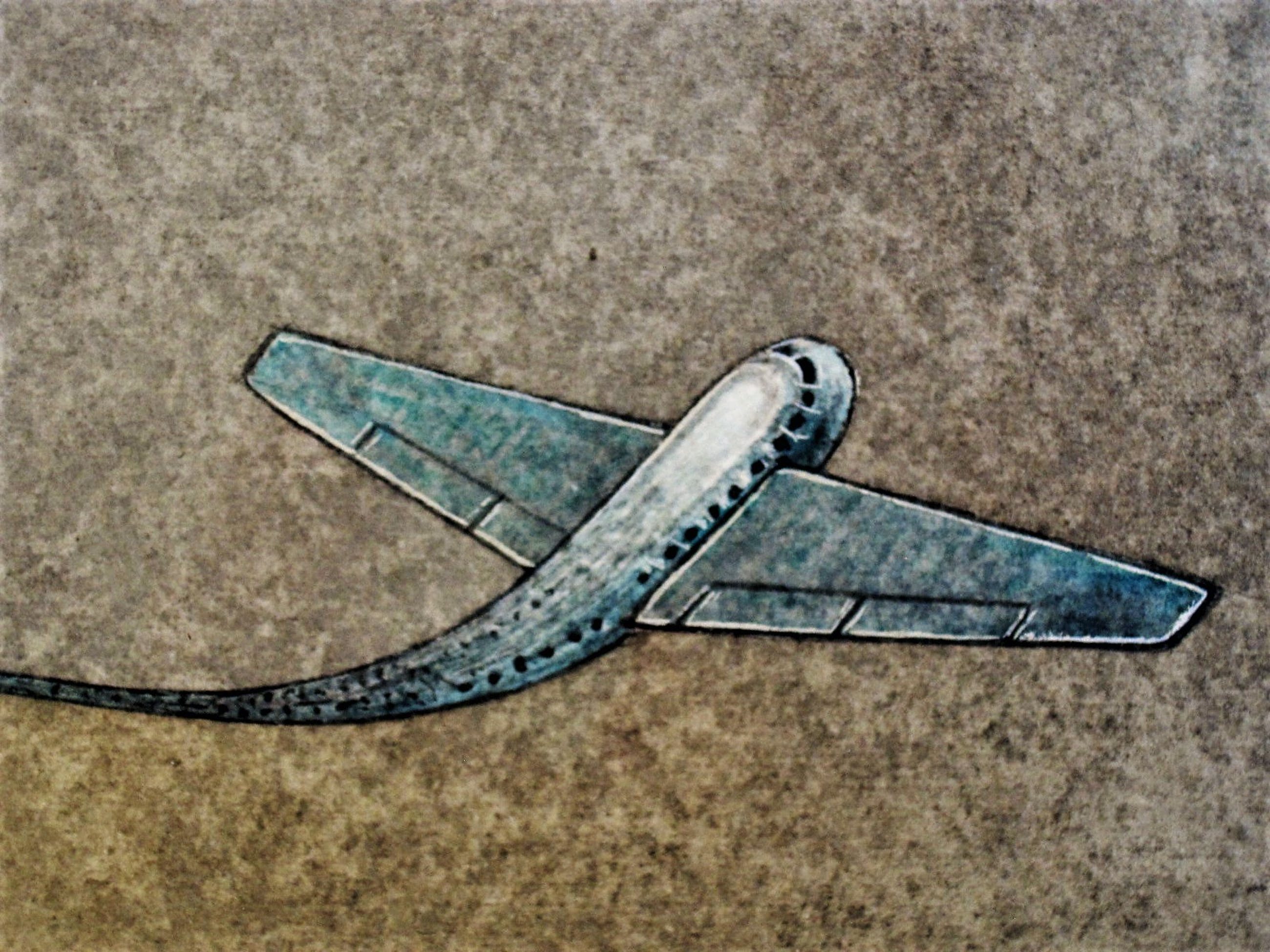 Onbekend - Galerie Hofstee F"furt - handgekleurde Ets - Vis en Vliegtuig - gesigneerd - Verkocht