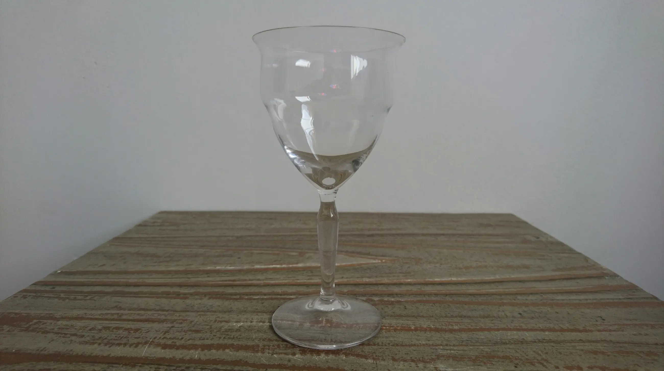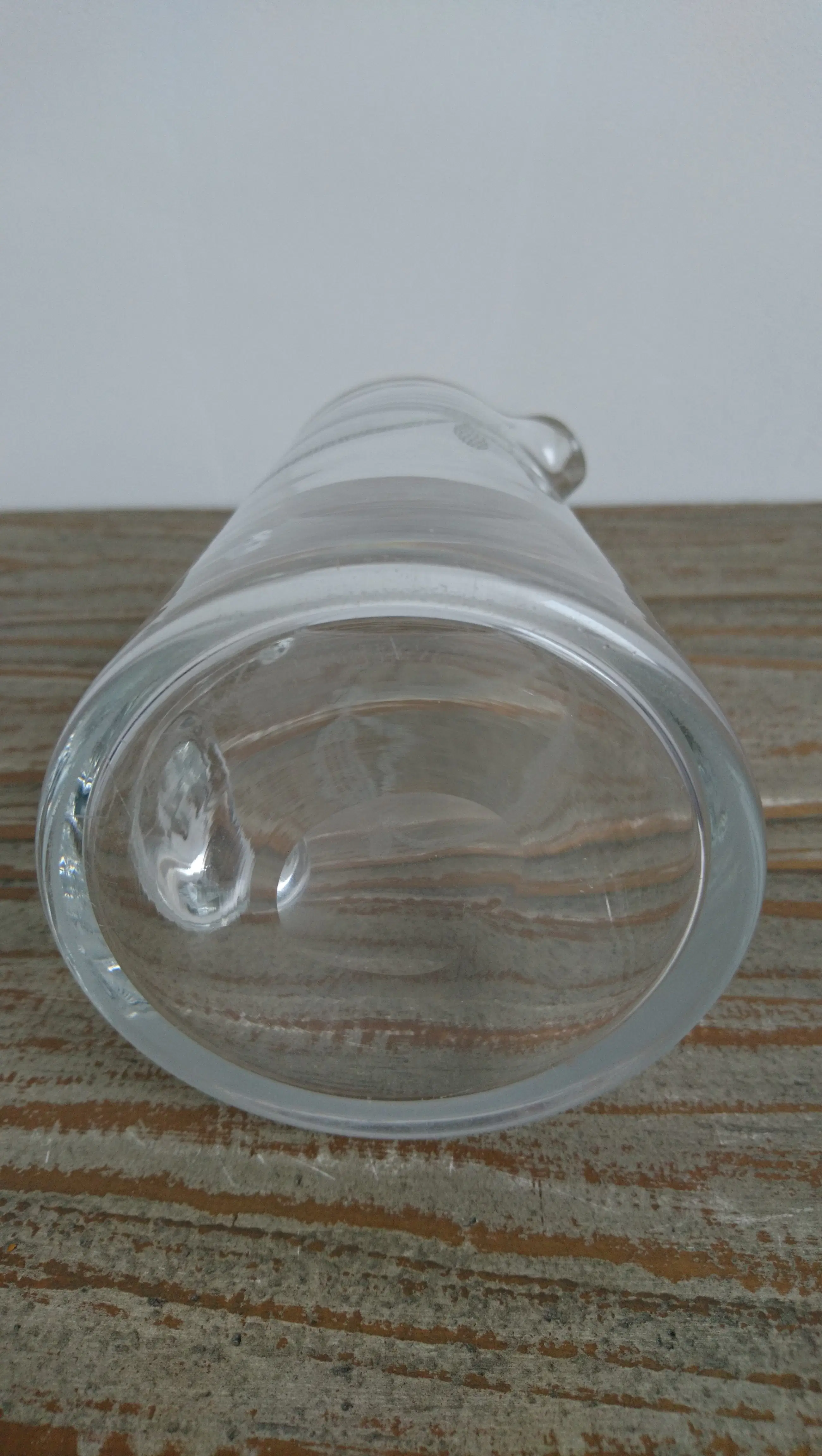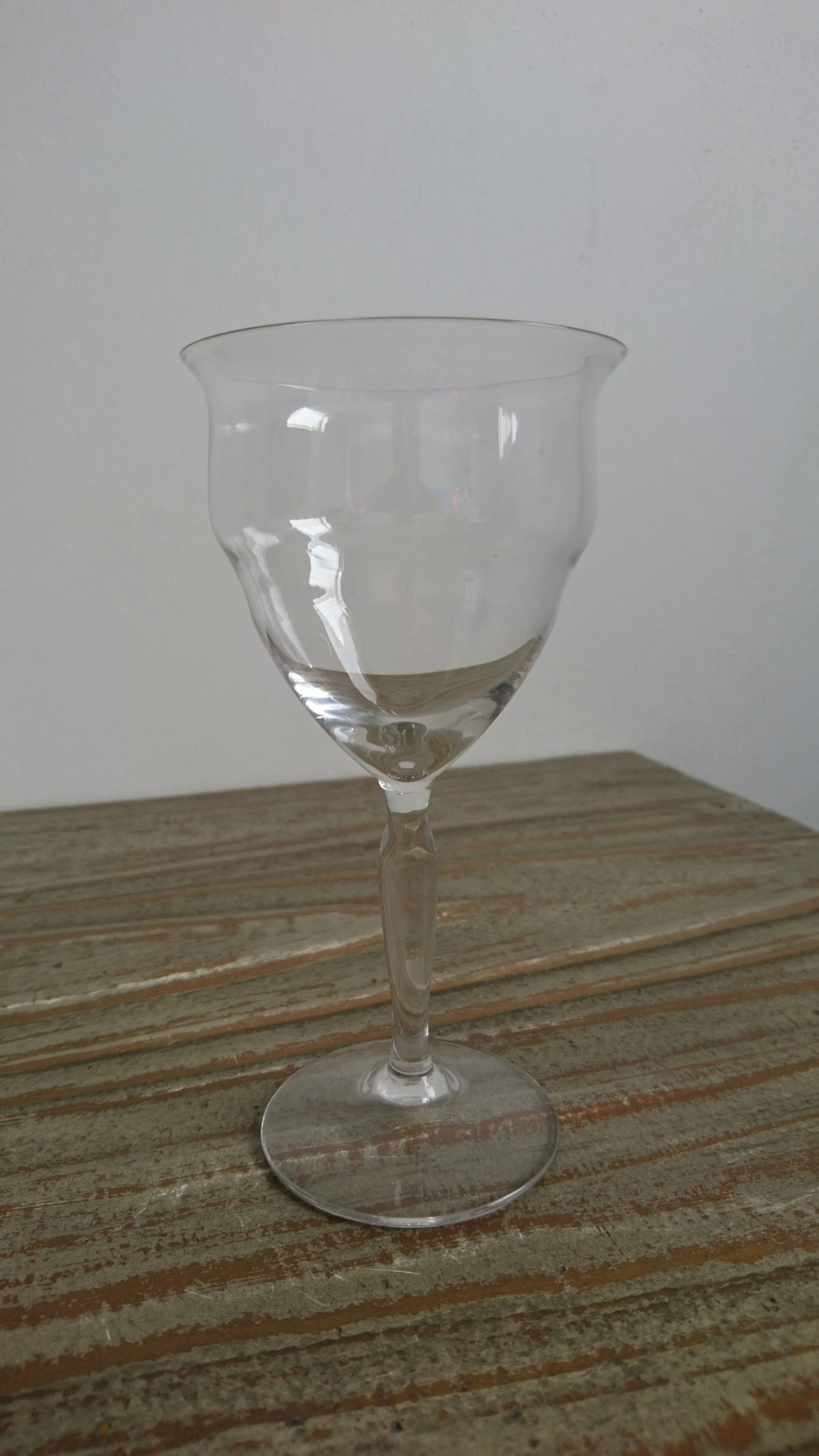 Geguillocheerde waterkan met 6 art-deco portglazen uit de jaren '20/'30 vorige eeuw. Geen breuken of chips. De waterkan is 16 cm hoog, 9,5 cm breed. Met geslepen pontil. De portglaasjes 14cm hoog en 7 cm breed.