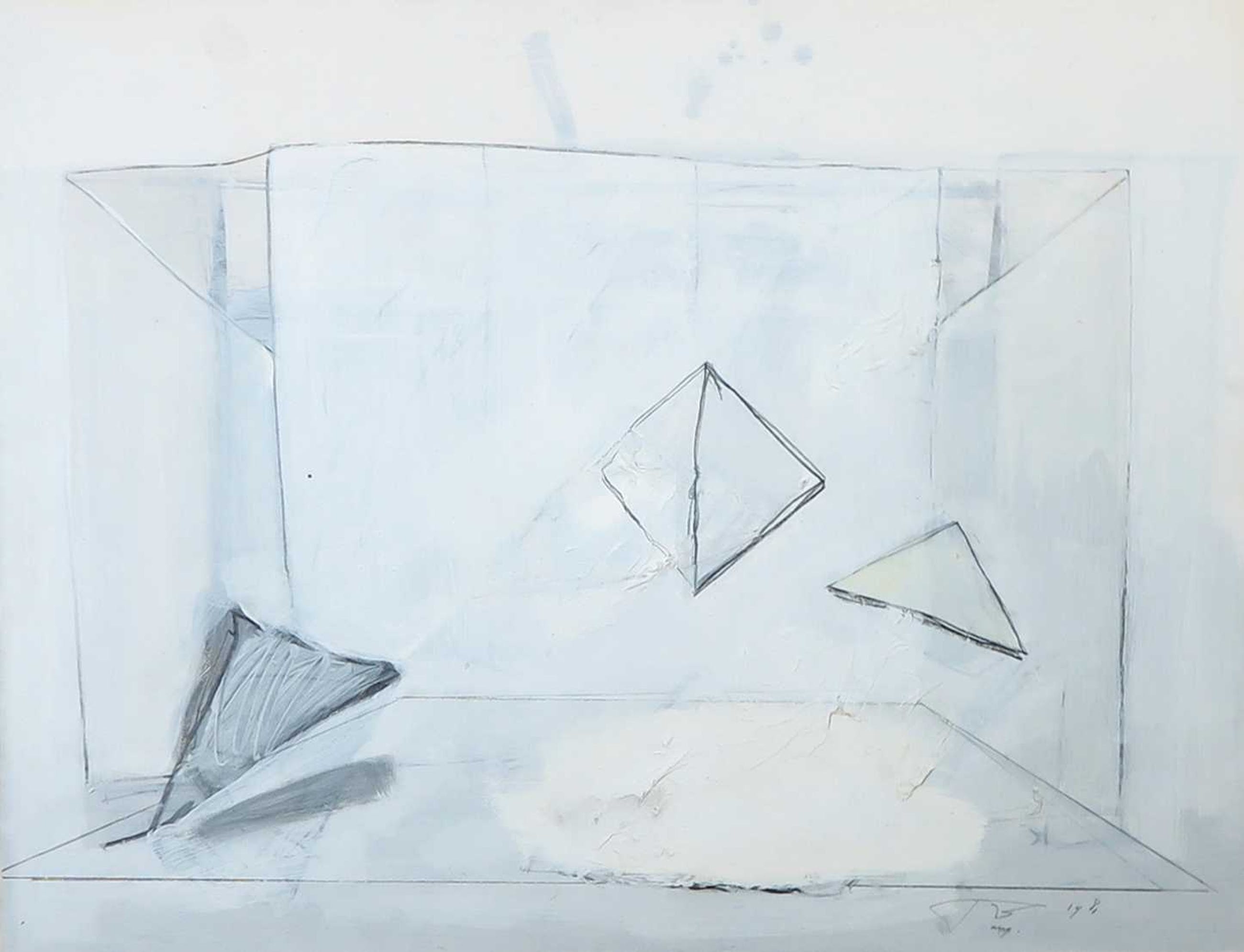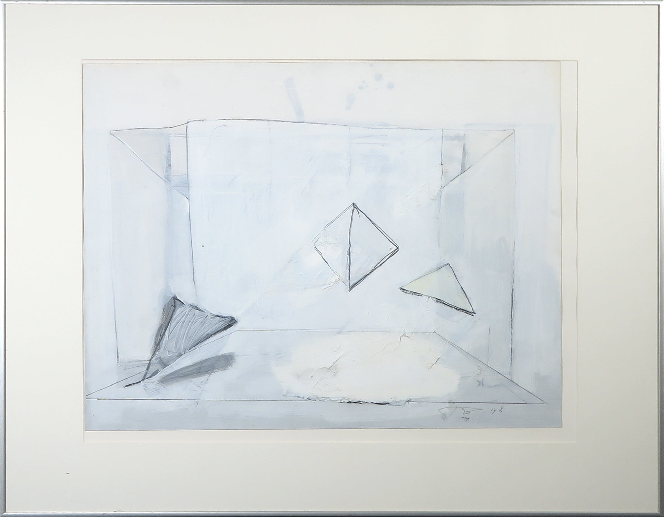 Onbekend - Gemengde techniek op karton, Geometrische vormen in ruimte - Ingelijst - Verkocht