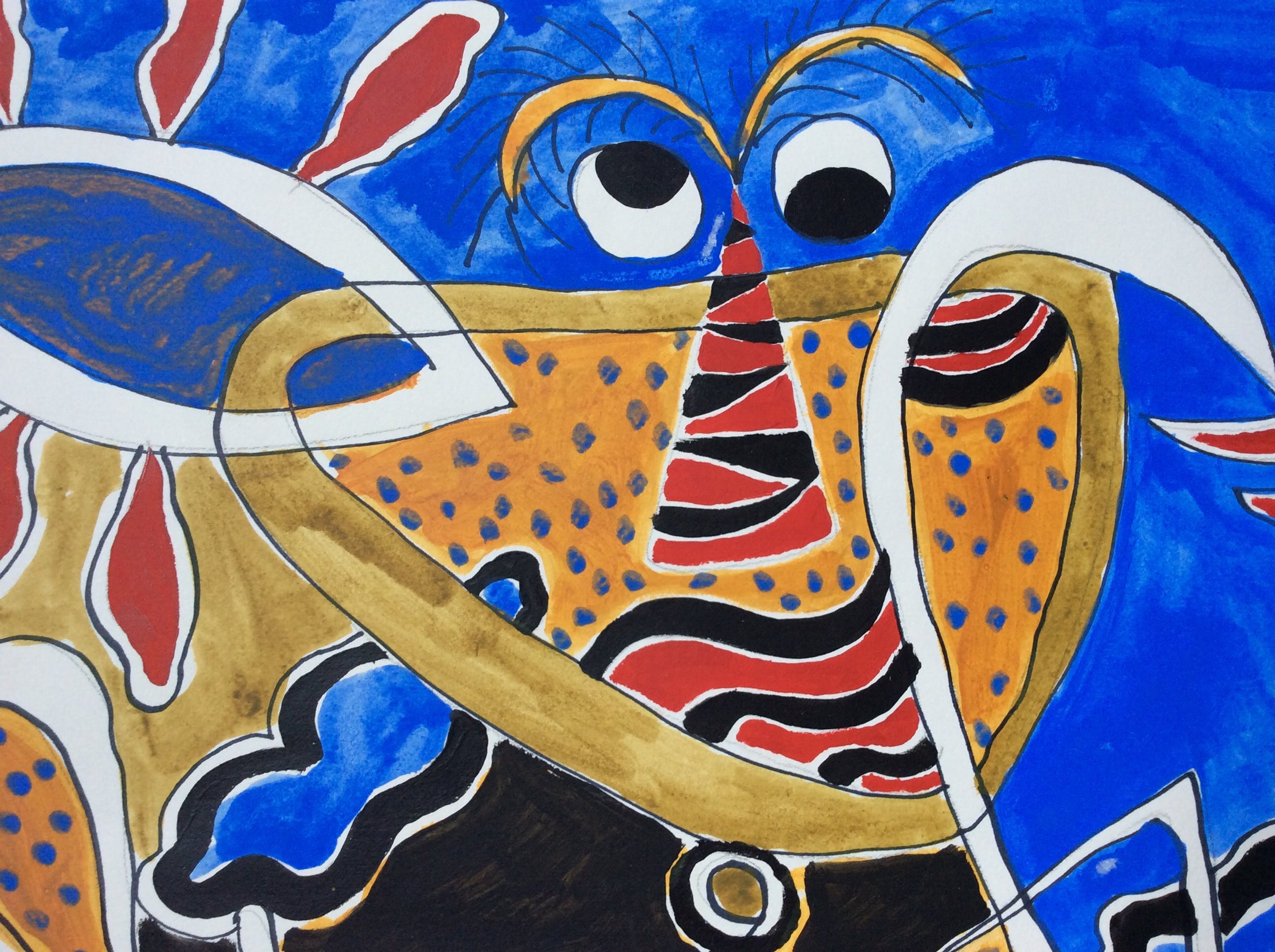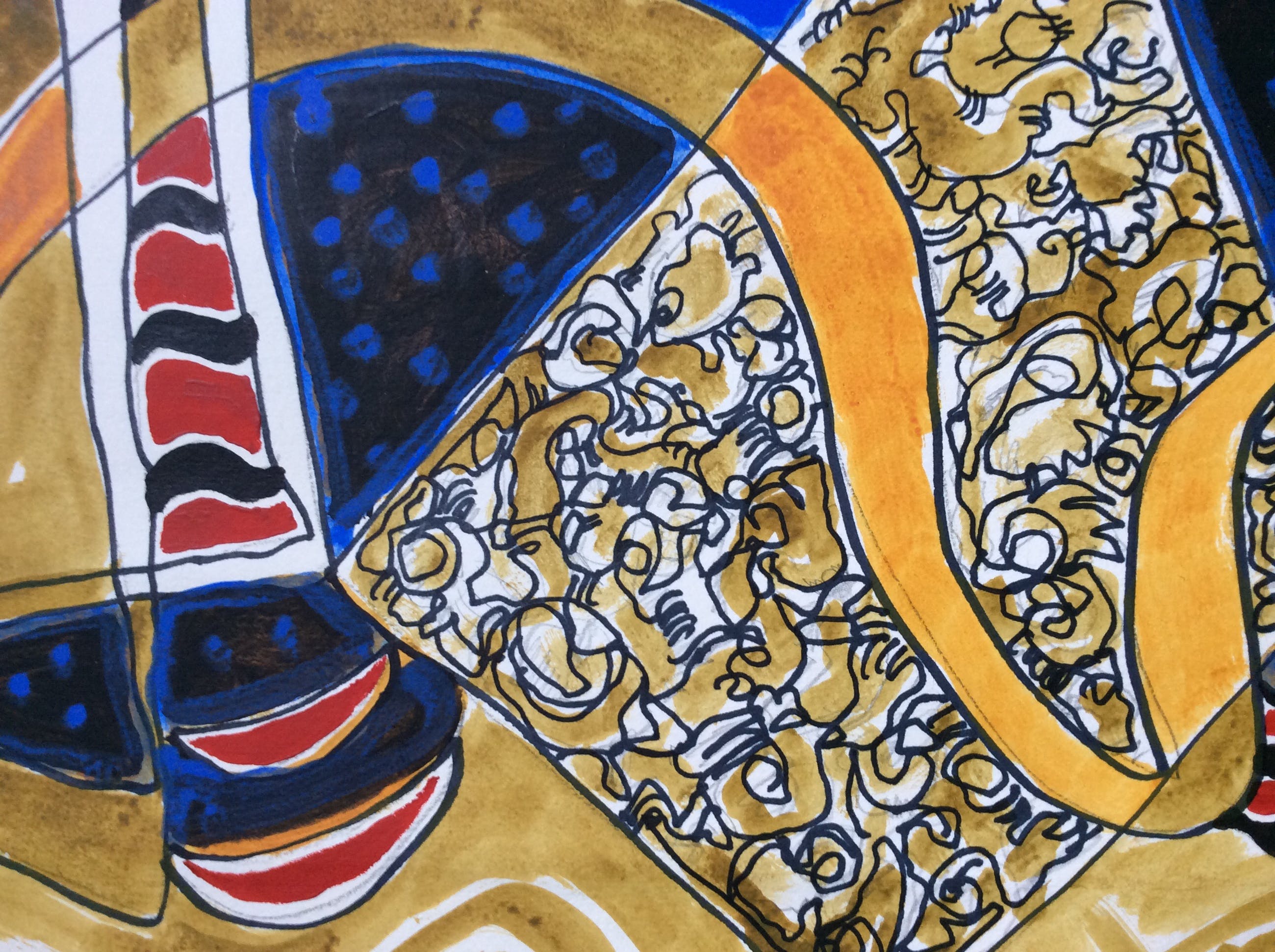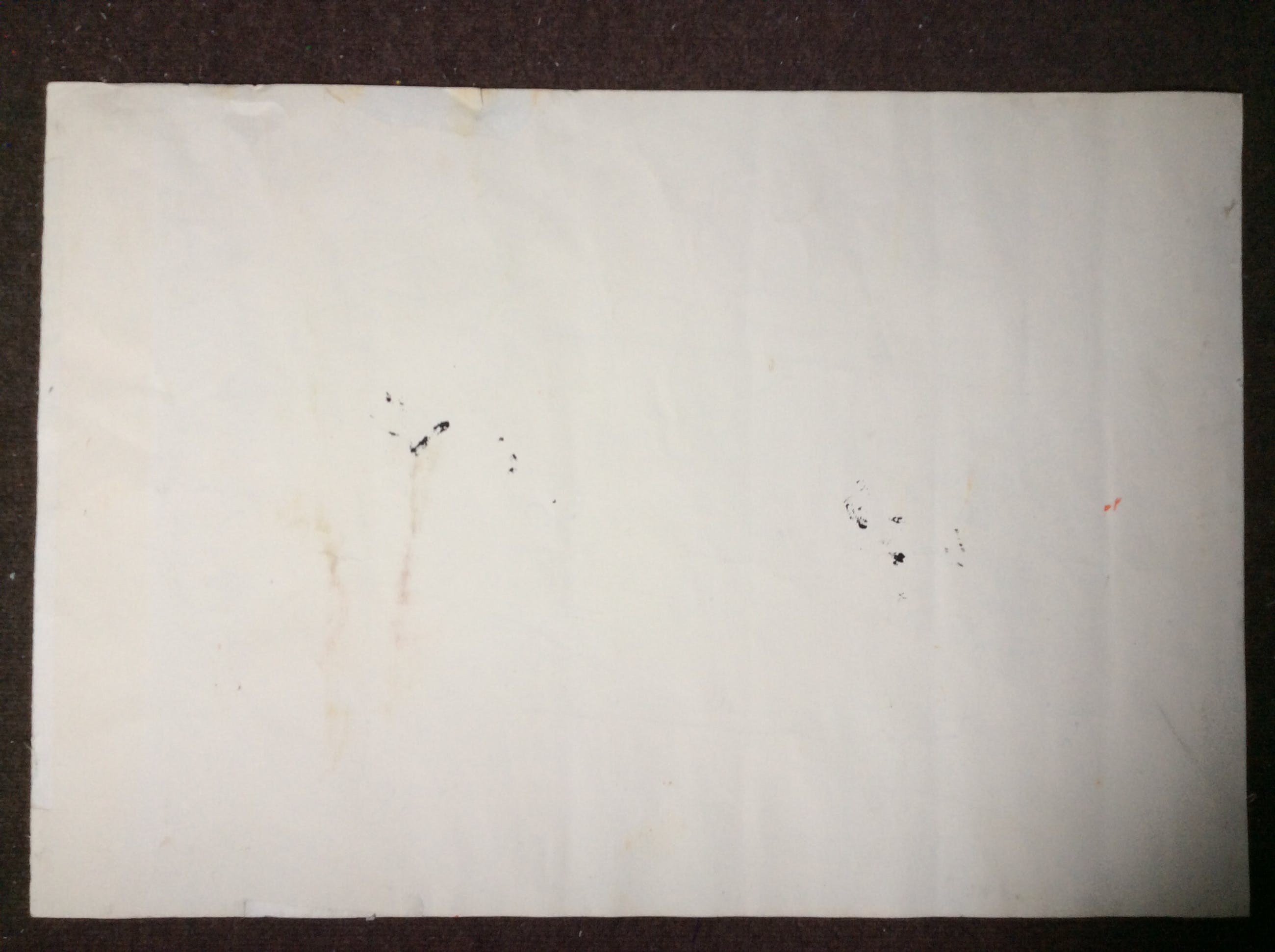 Boeiende voorstelling van onbekende kunstenaar. Rechtsonder potlood gesigneerd, 1996. Formaat incl 85 x 59 cm.