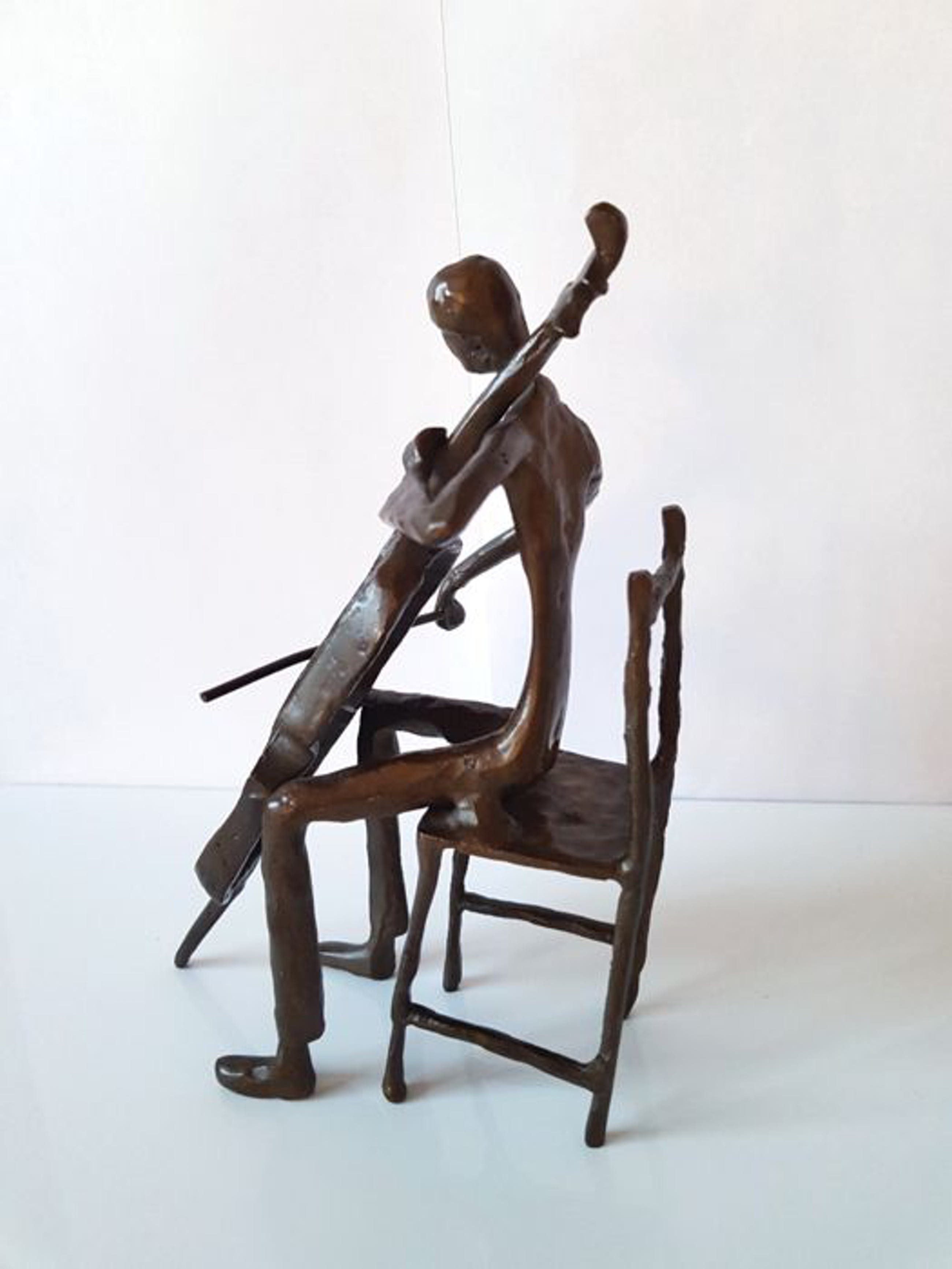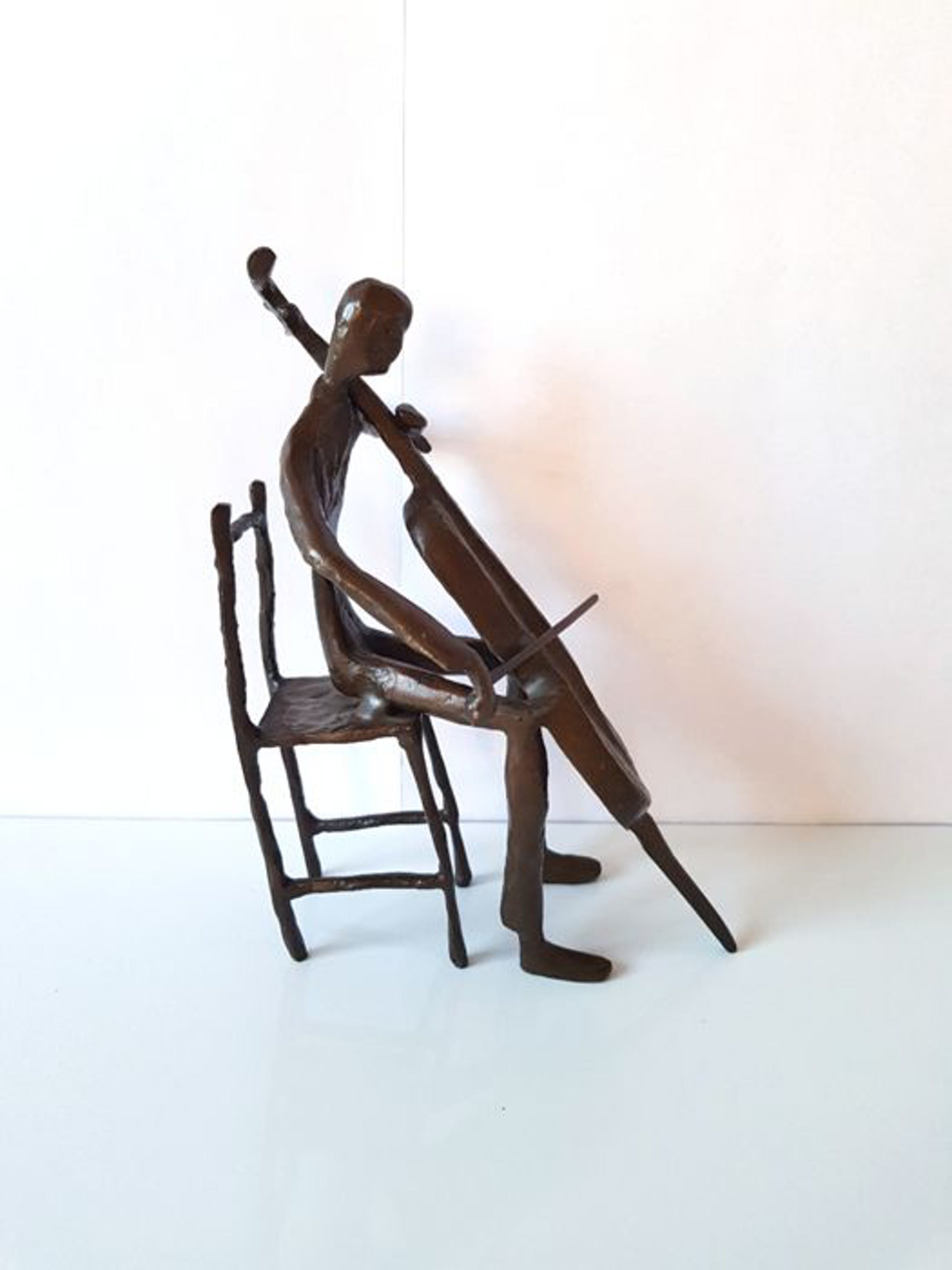 Gepatineerd bronzen beeld van een zittende cellist in impressionistische stijl. De afmetingen zijn 19 x 12 x 13 cmGewicht ongeveer. 650 gram. Het beeld heeft een prachtige bruine patina en verkeert in een zeer goede staat.
