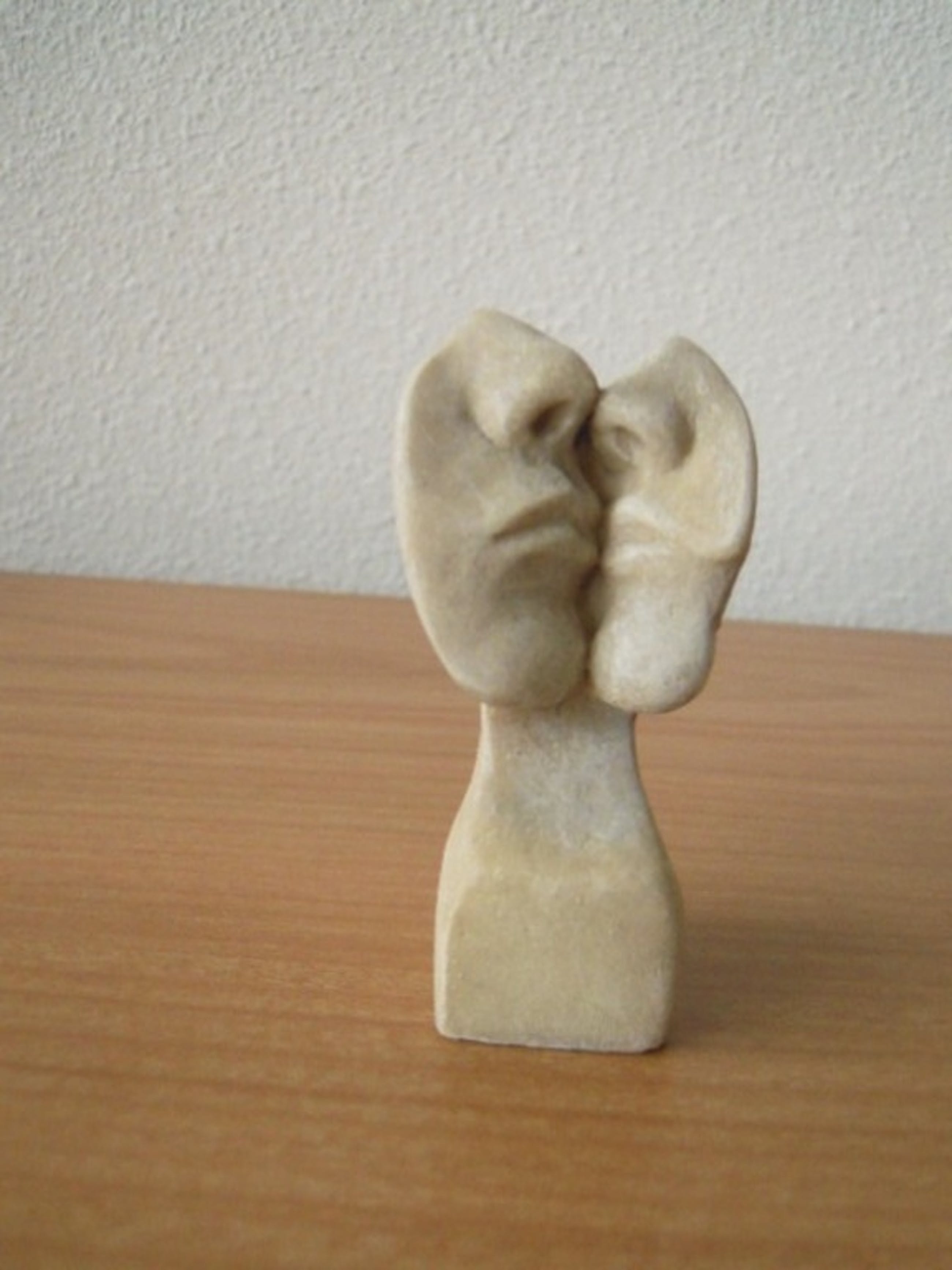 Gesigneerd beeldje - HK - " de twee gezichten " - 8 cm hoog