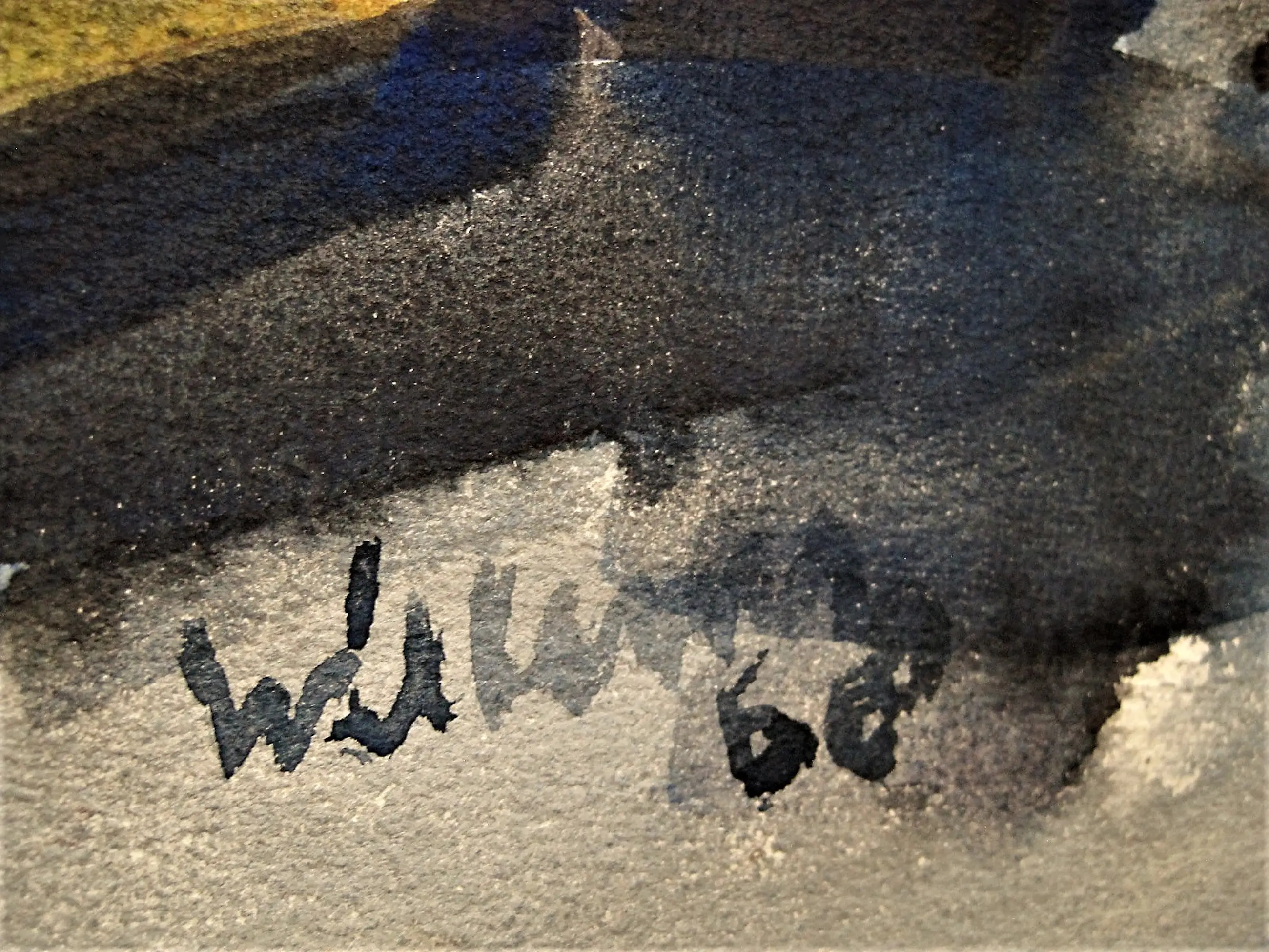• Mooi expressionistisch geschilderd Aquarel op papier met signatuur en datering. Niet ingelijst maar aleen in passe partout geplaatst. Verkeert in goede conditie.