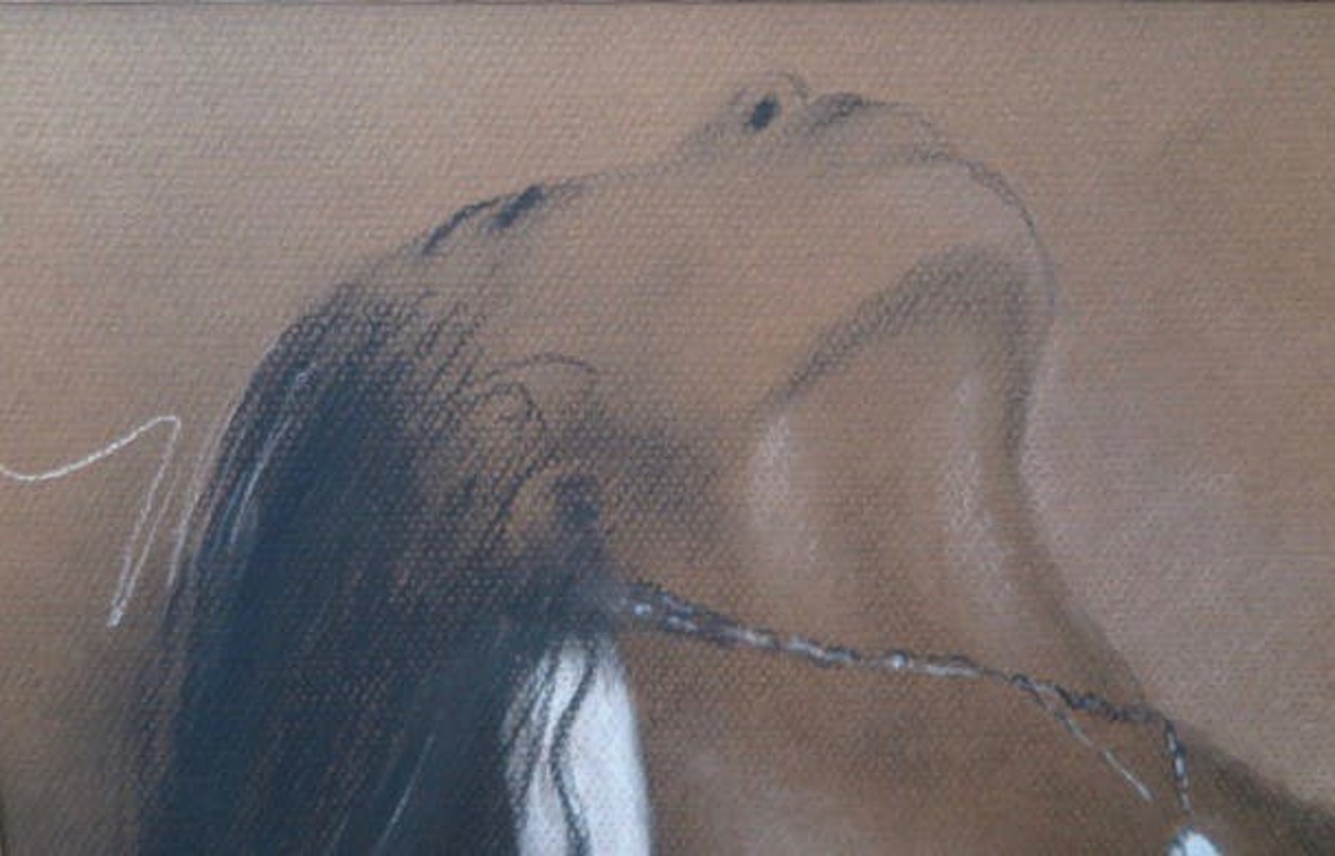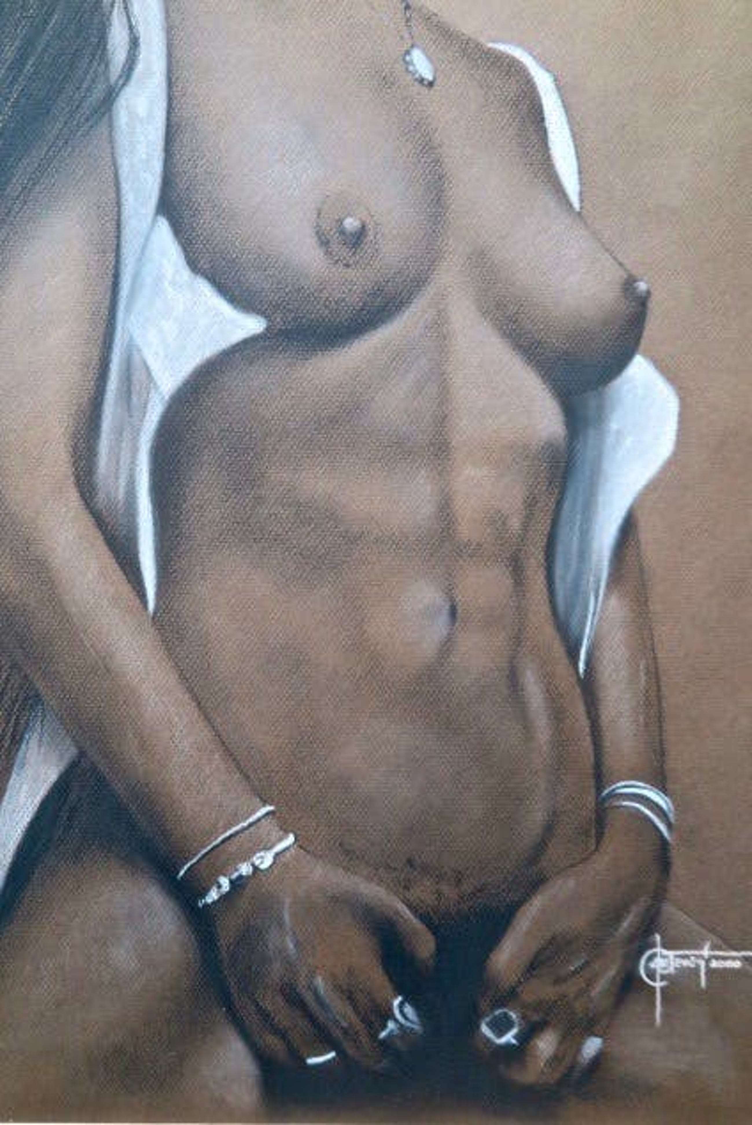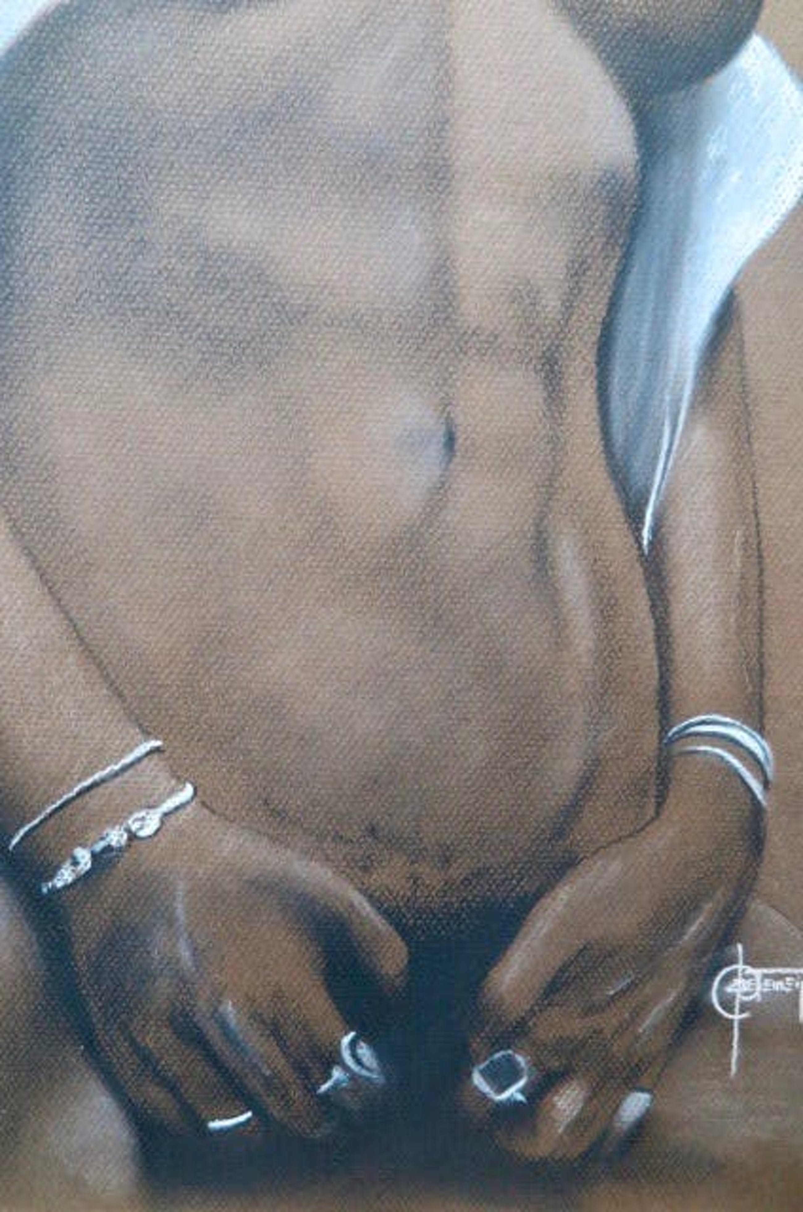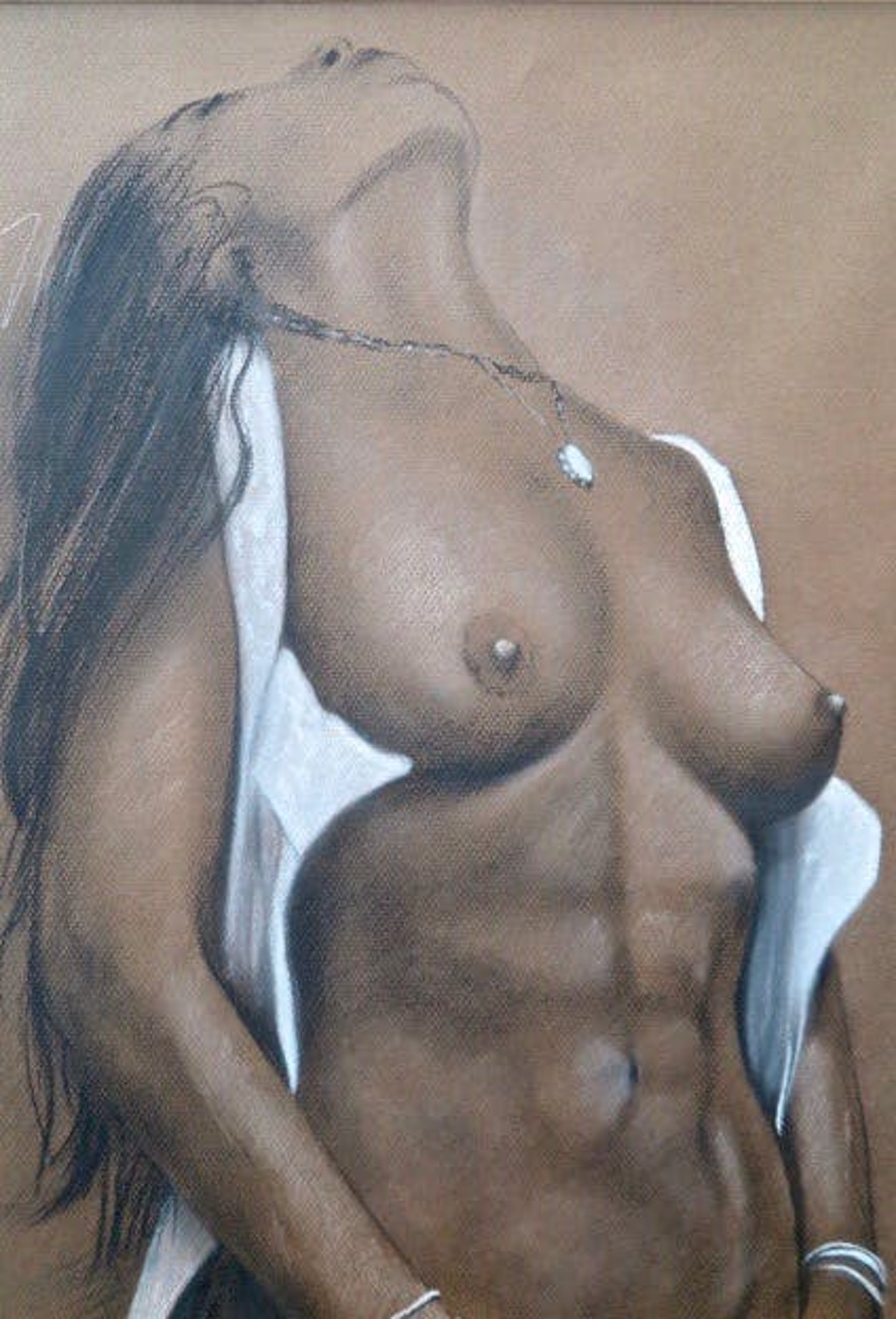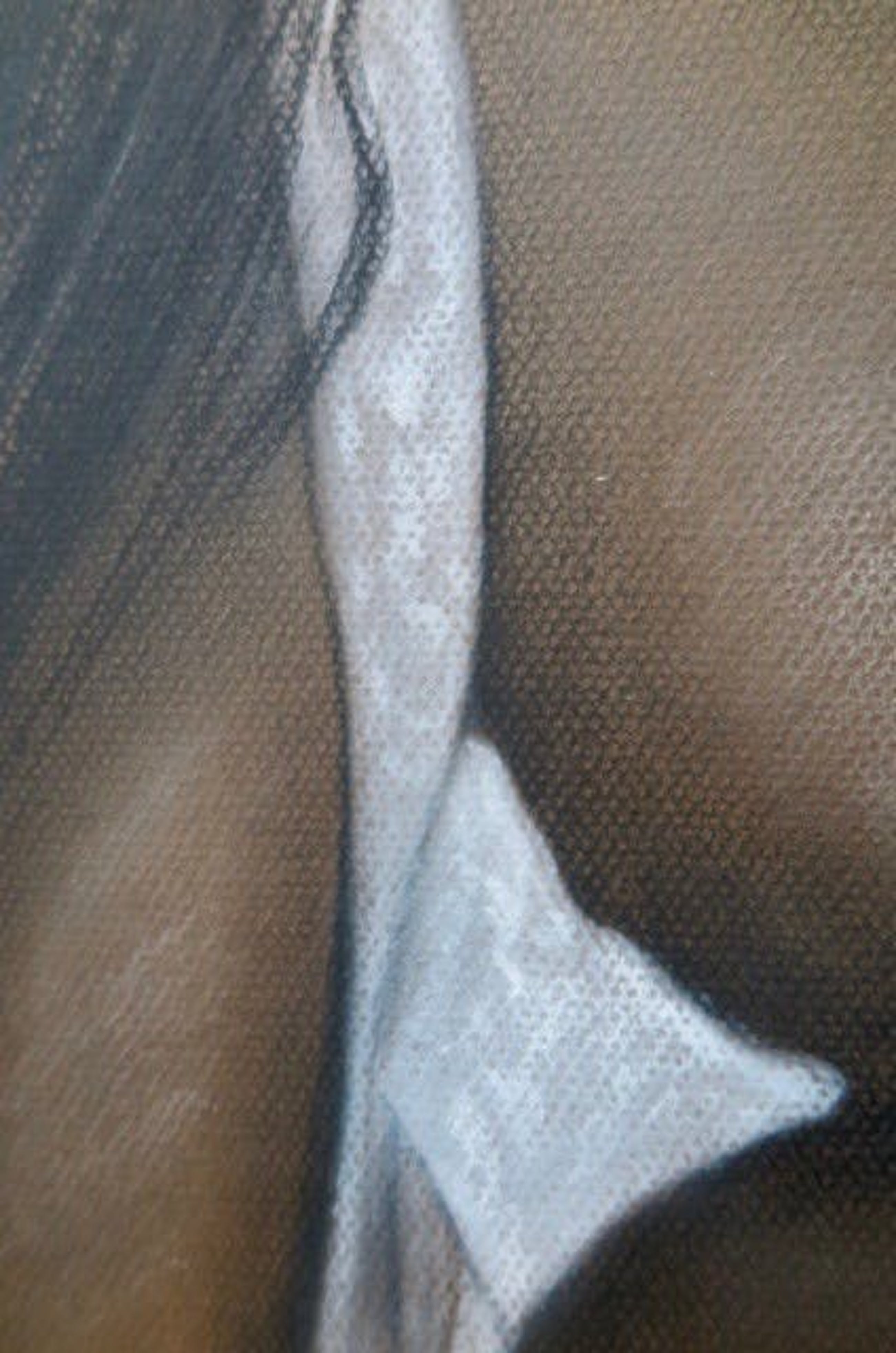 Fraai ingelijst in dik passe-partout zodat het werk vrij ligt. Achter glas in handgemaakte houten lijst, zo goed als nieuw.