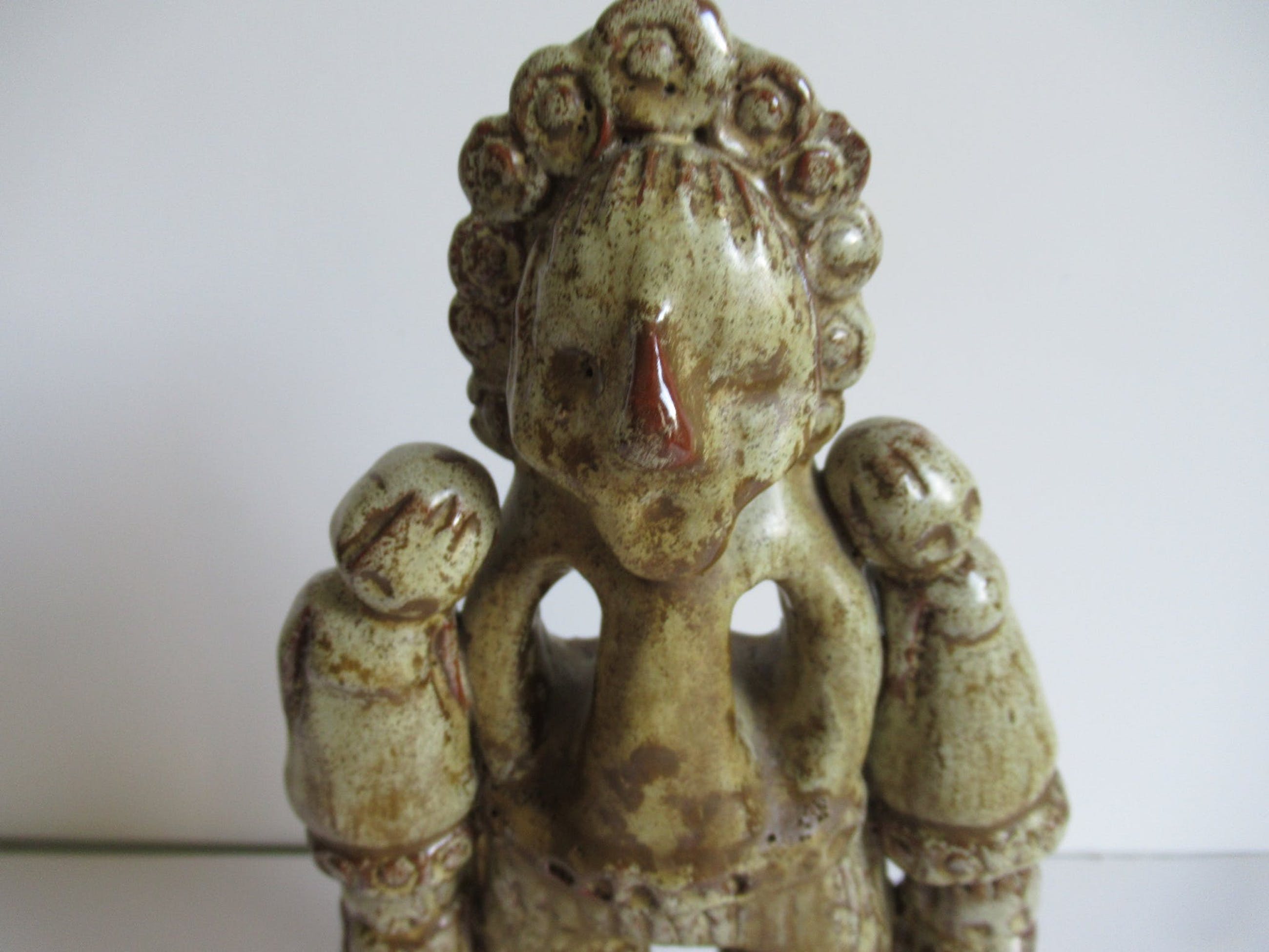 Het werk is in een mooie staat, tijdens het bakken zijn er kleine scheurtjes in het keramiek laag gekomen.